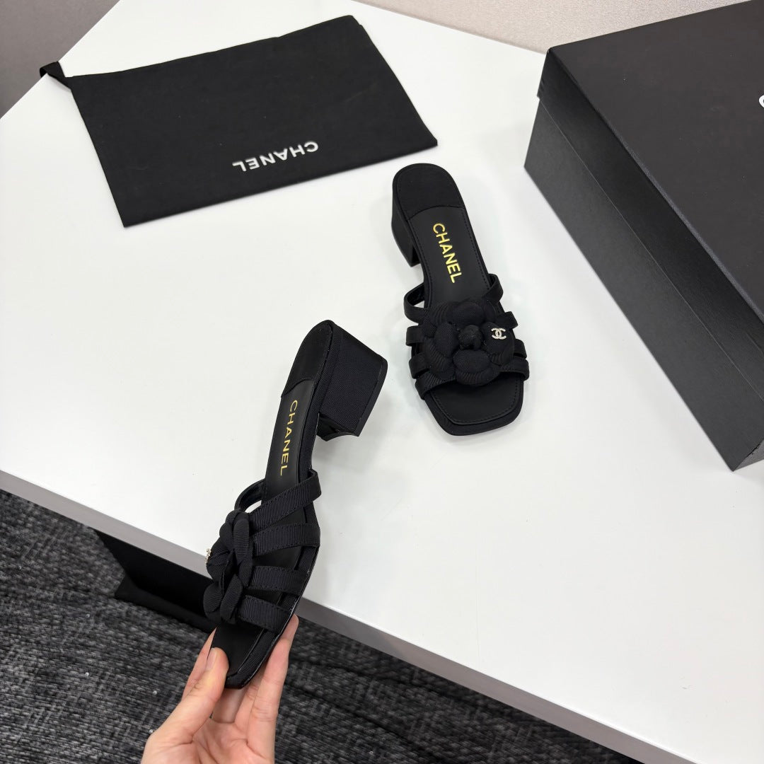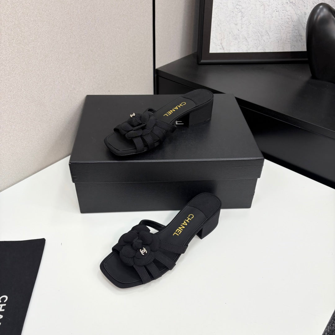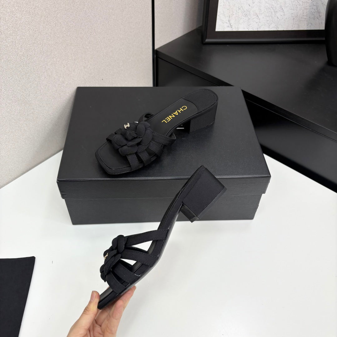CC 25 Camellia Open Heel Mule Sandals 50mm Black Sheepskin And Fabric 368858