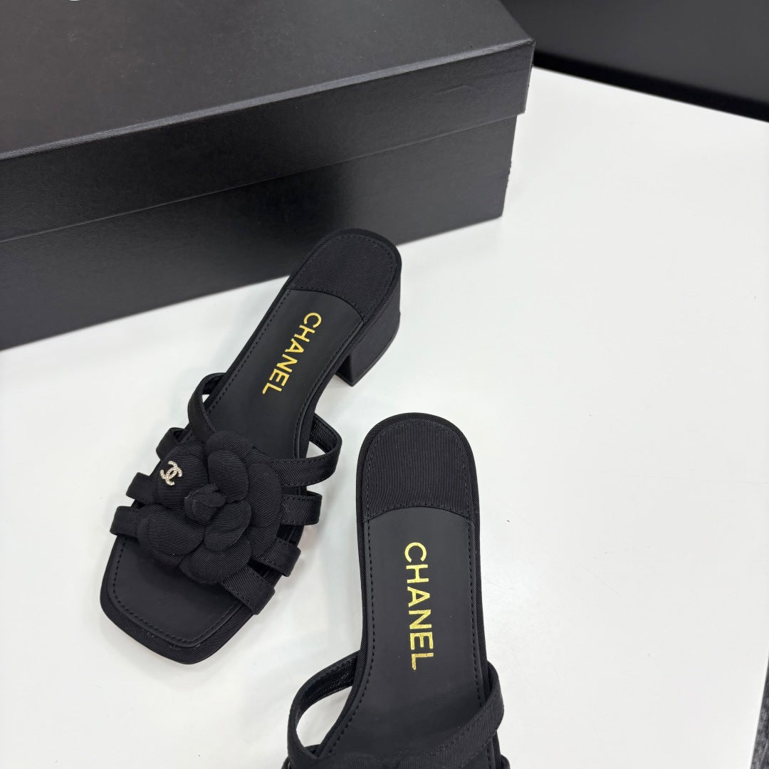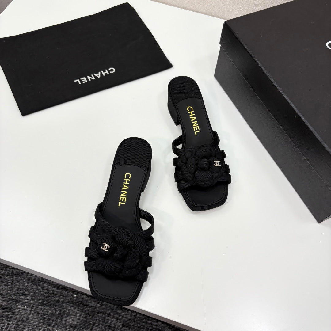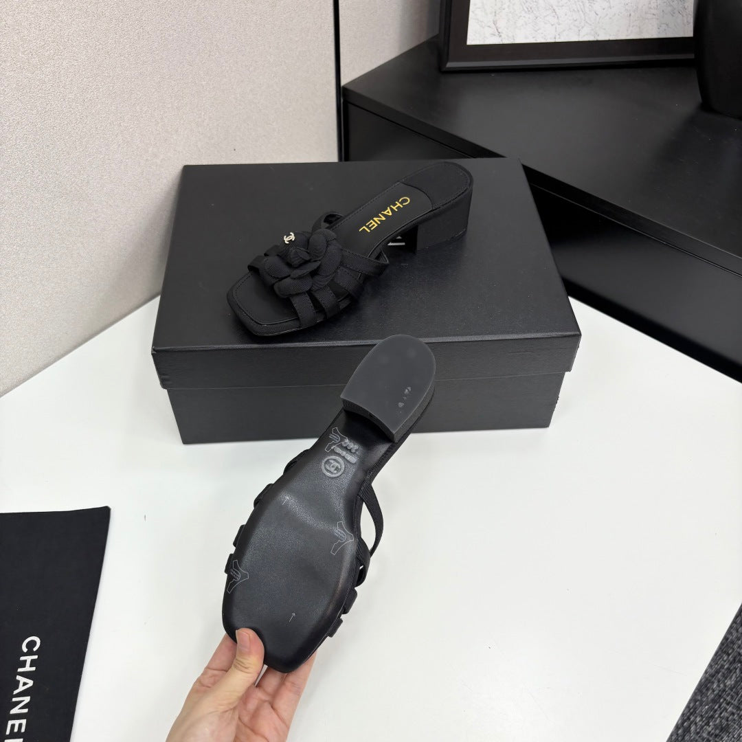CC 25 Camellia Open Heel Mule Sandals 50mm Black Sheepskin And Fabric 368858