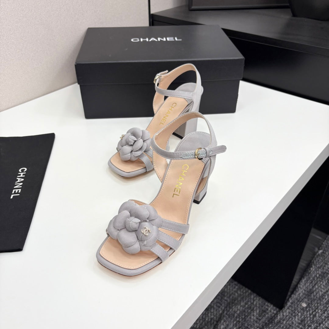 CC 25 Camellia Open Heel Sandals 90mm Grey Beige Sheepskin And Fabric 368817