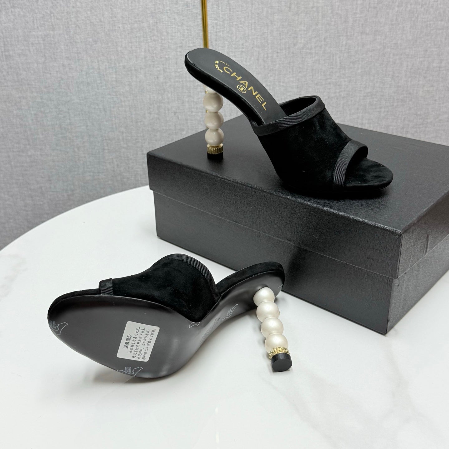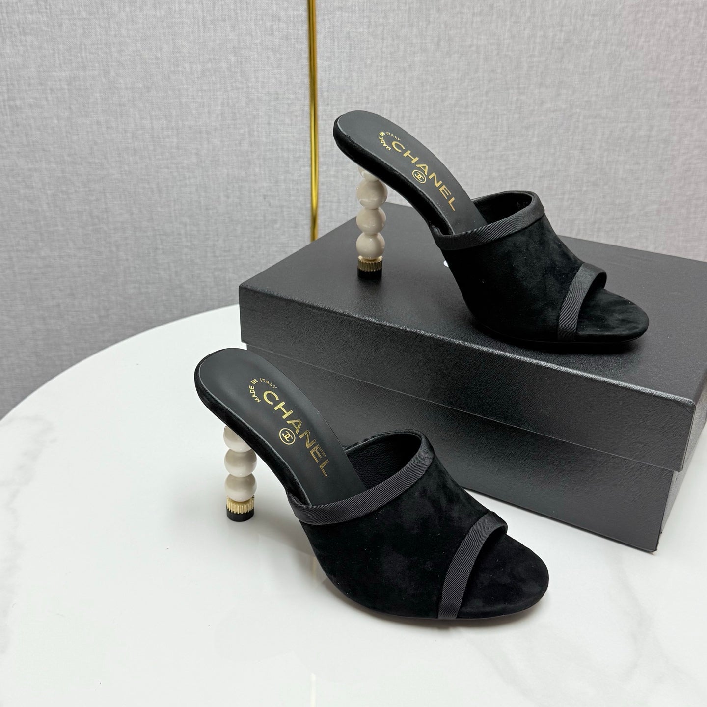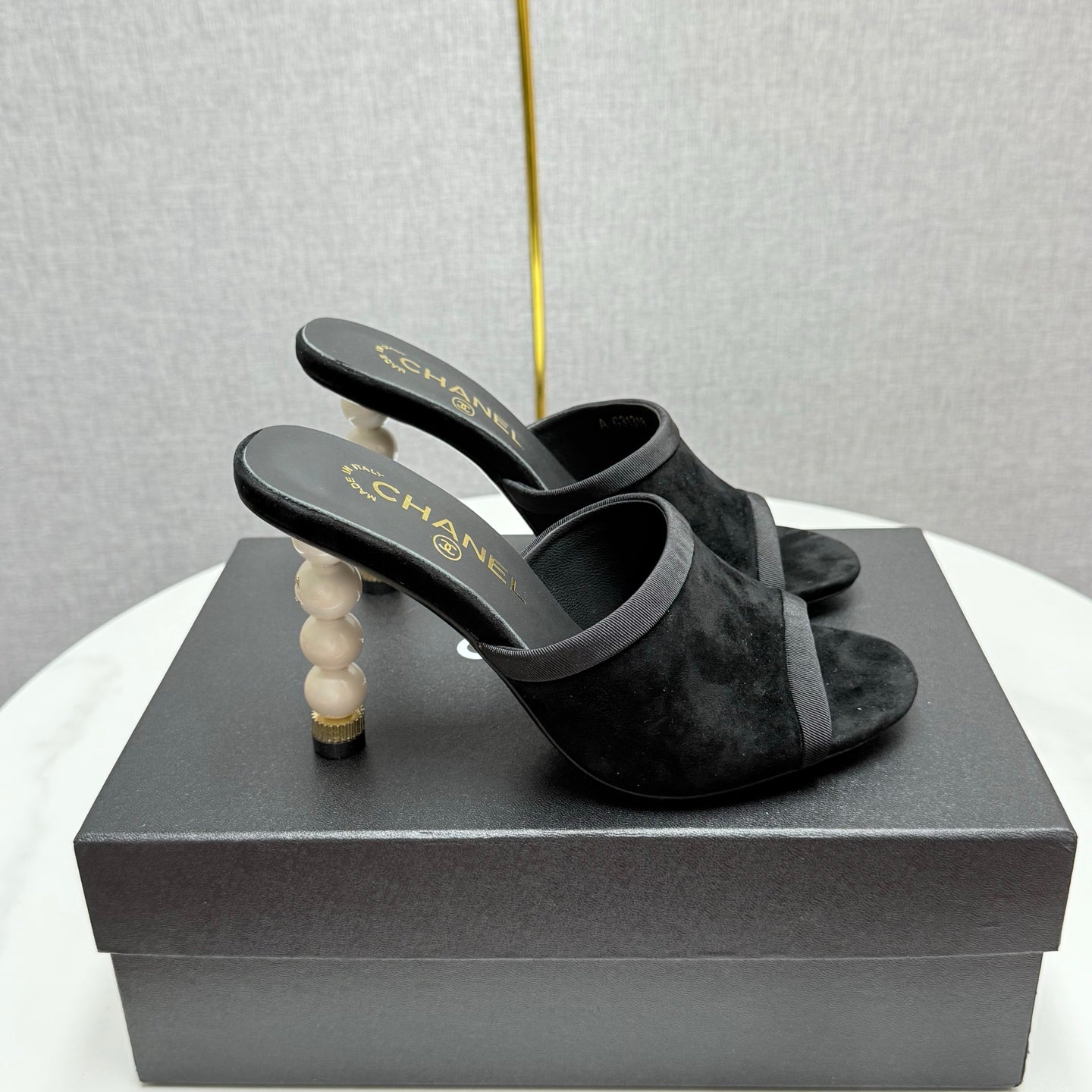 CC 25 High Heel Slippers 85mn Black Suede 368790