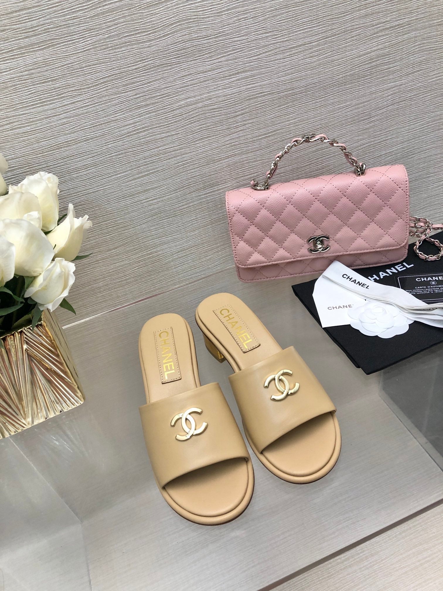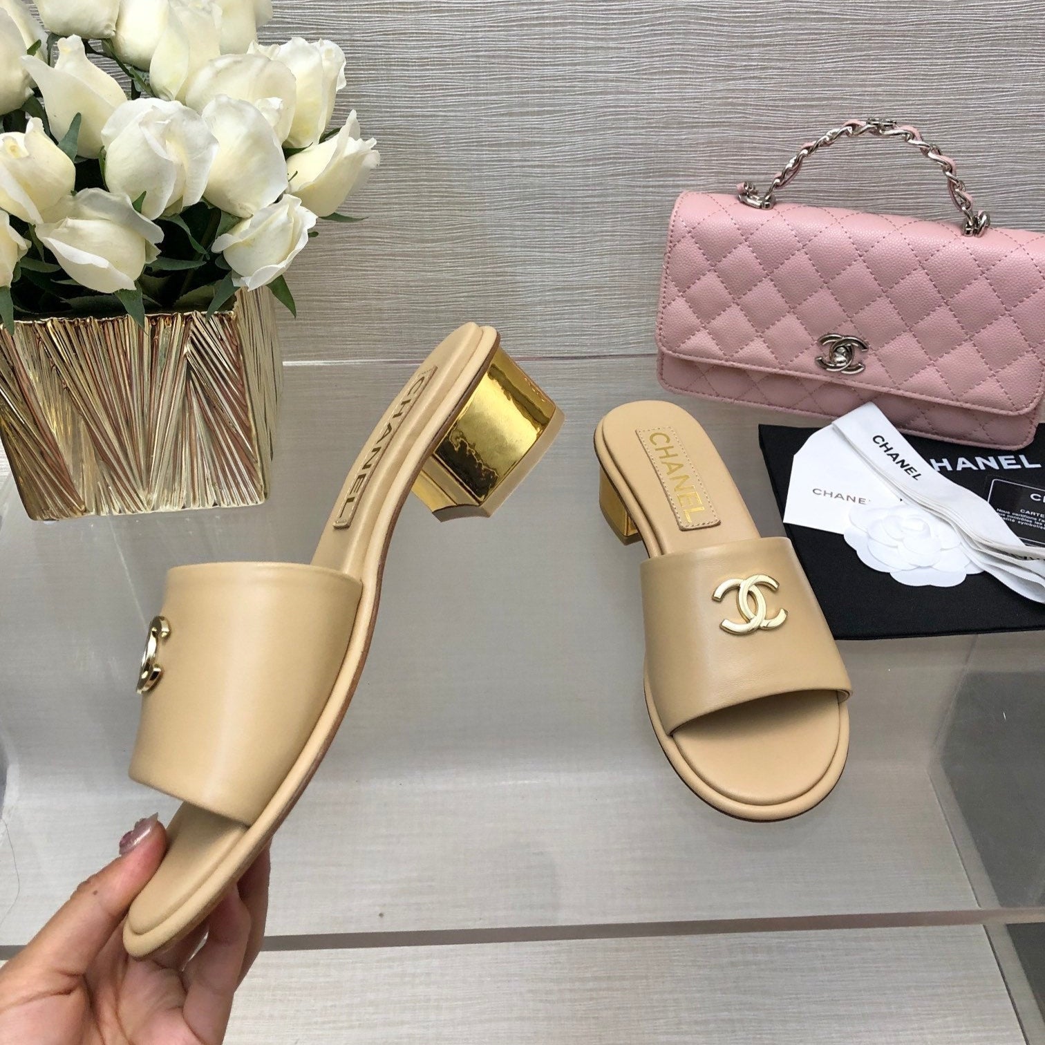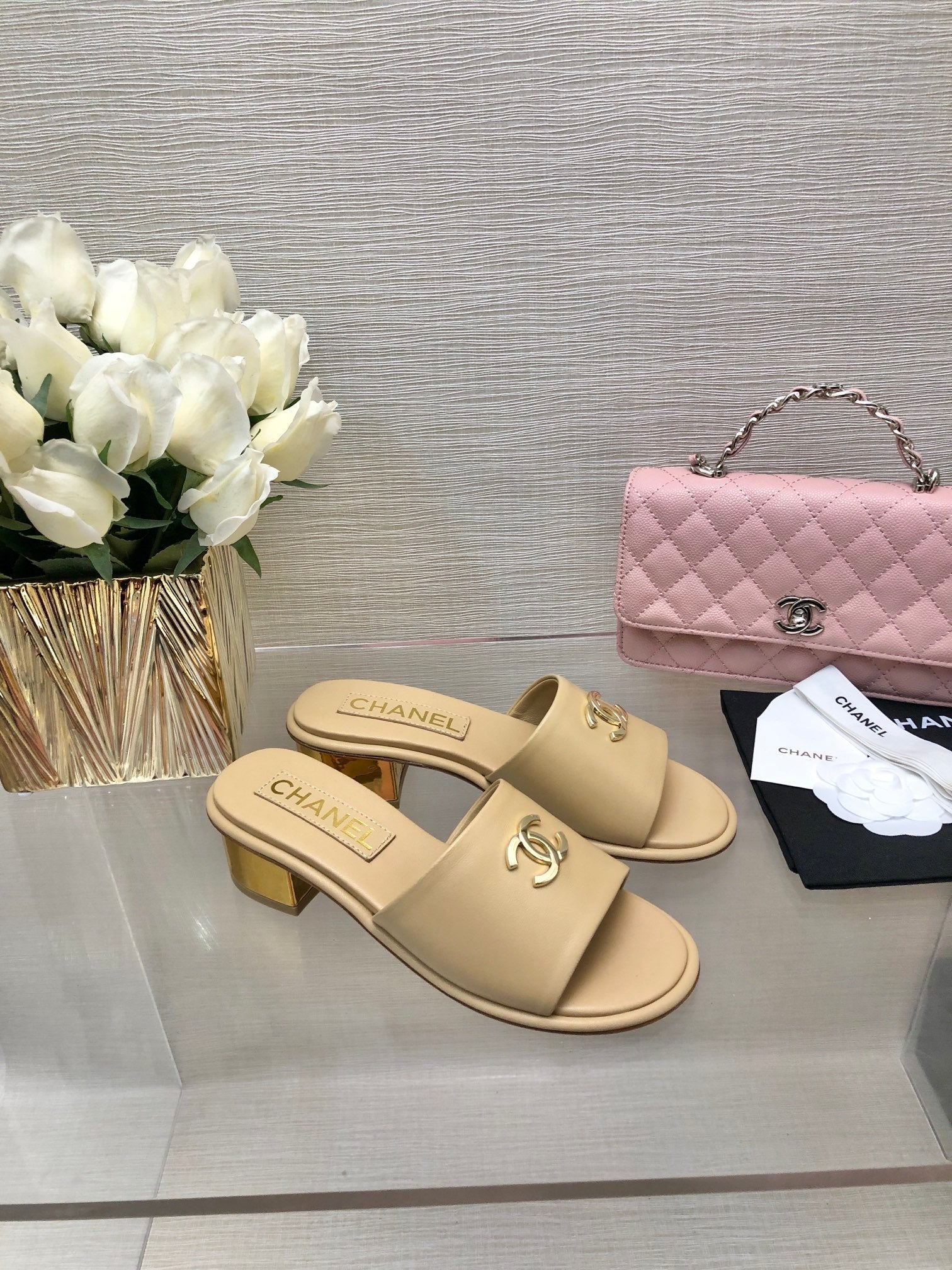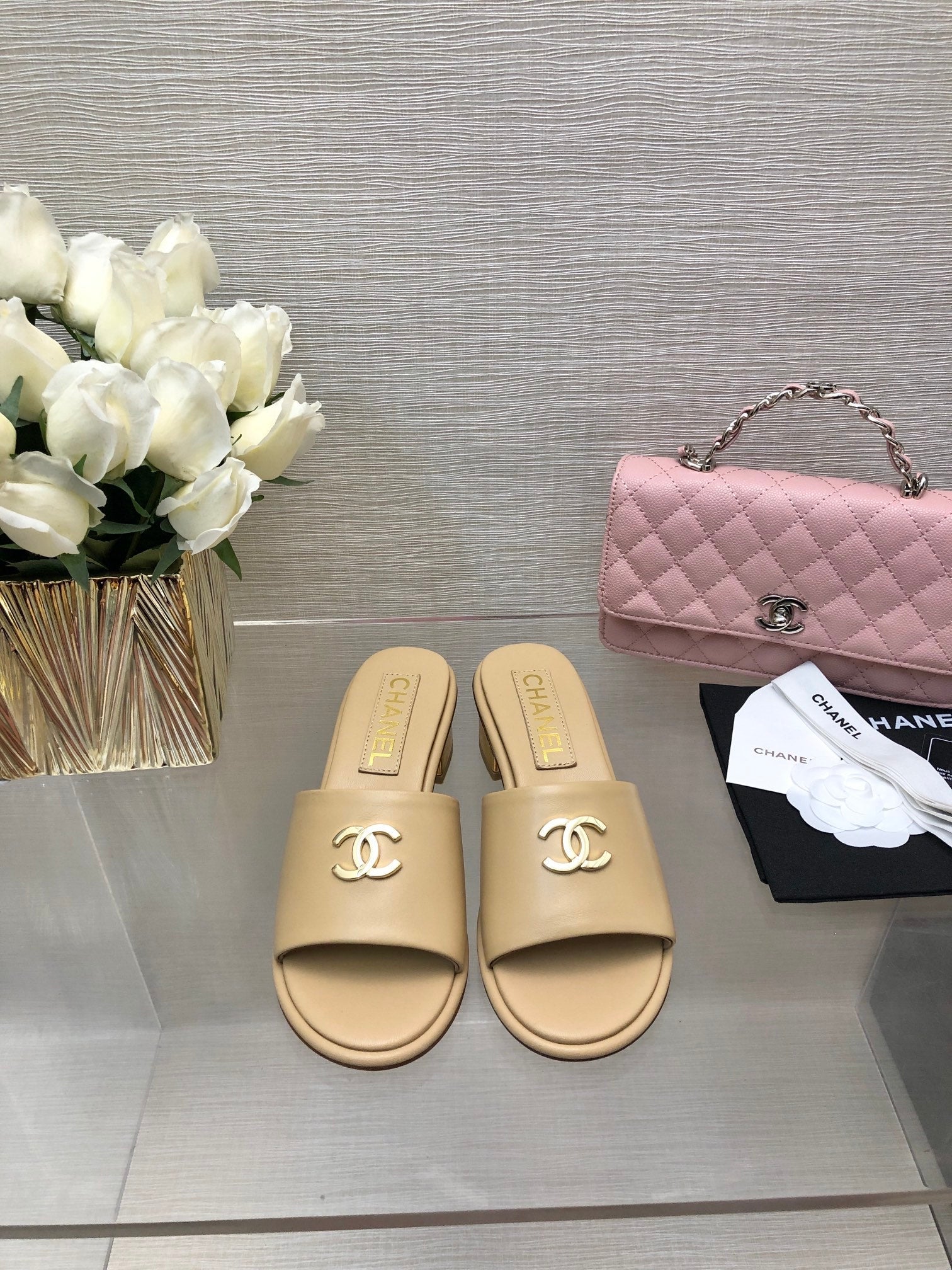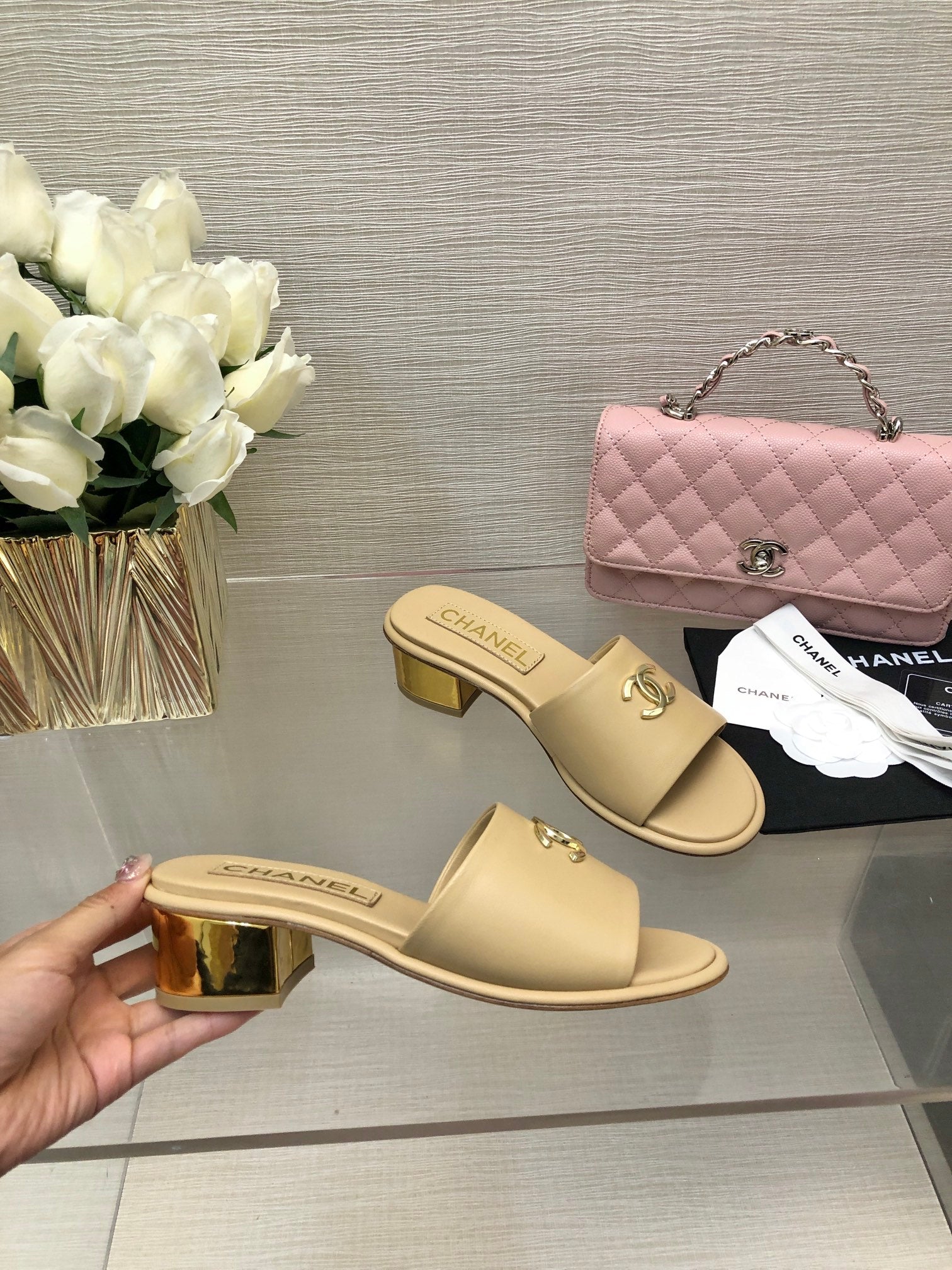 CC 25C Mid Heel Mule Cream Genuine Calfskin 212955