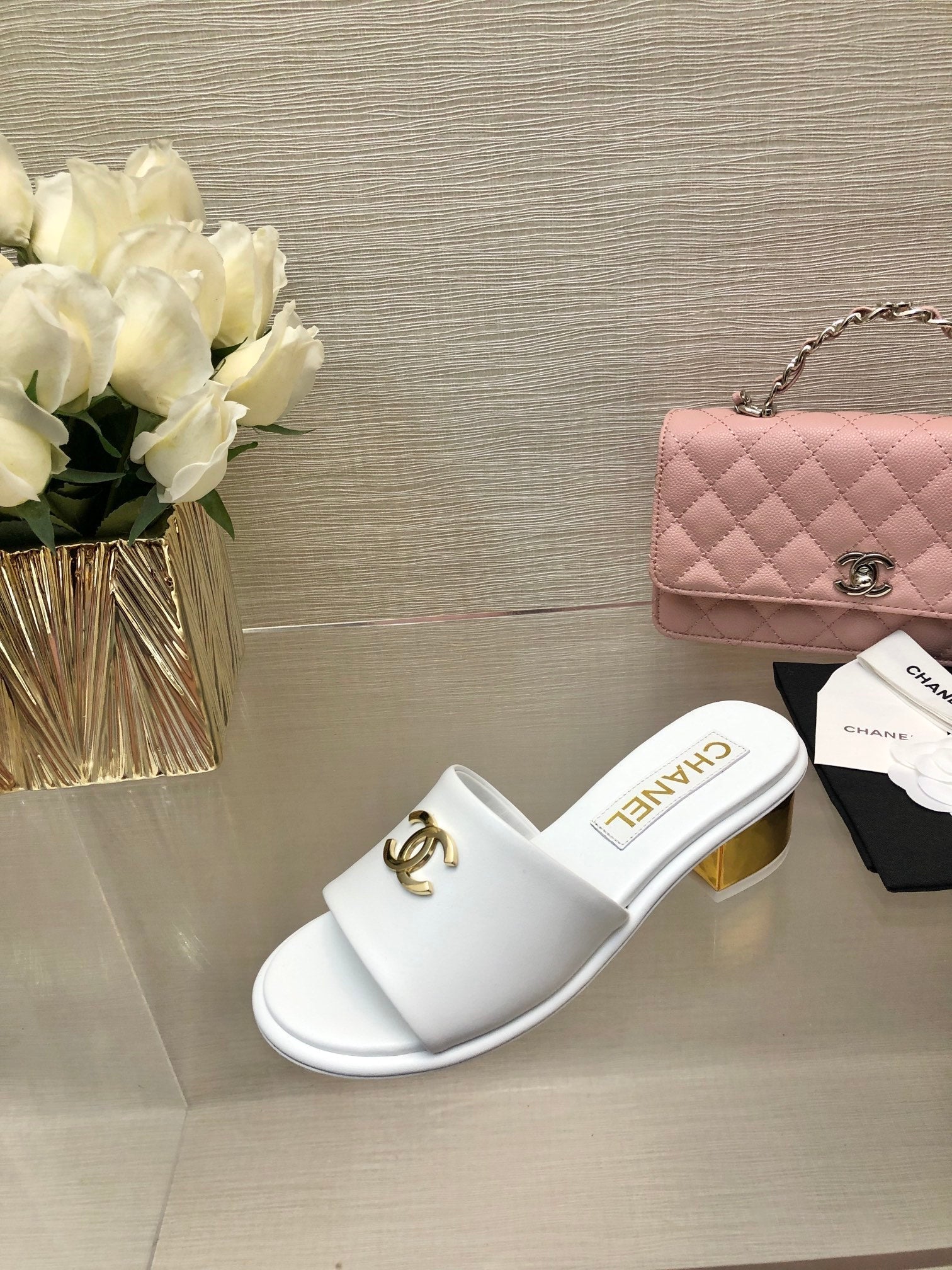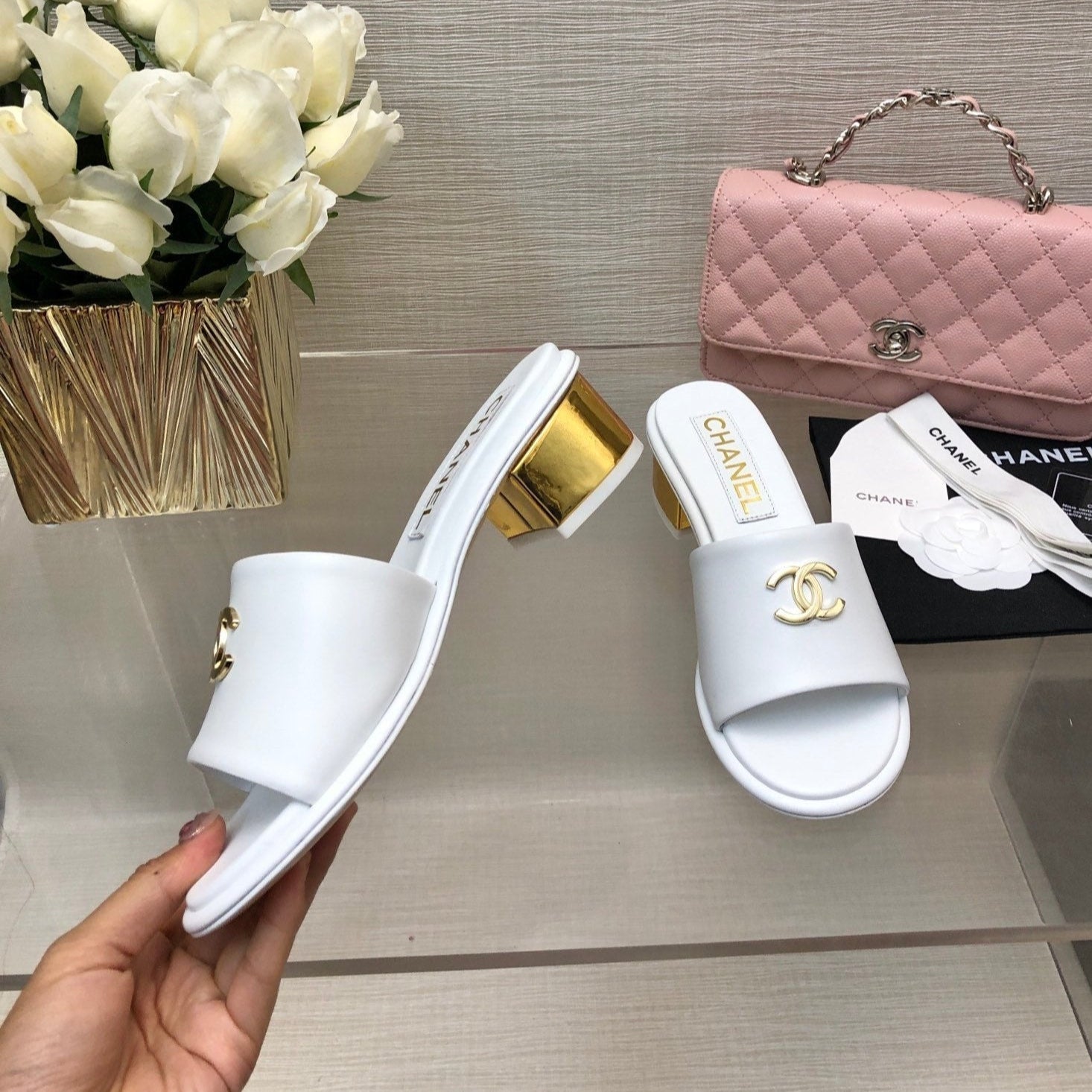 CC 25C Mid Heel Mule White Genuine Calfskin 212954