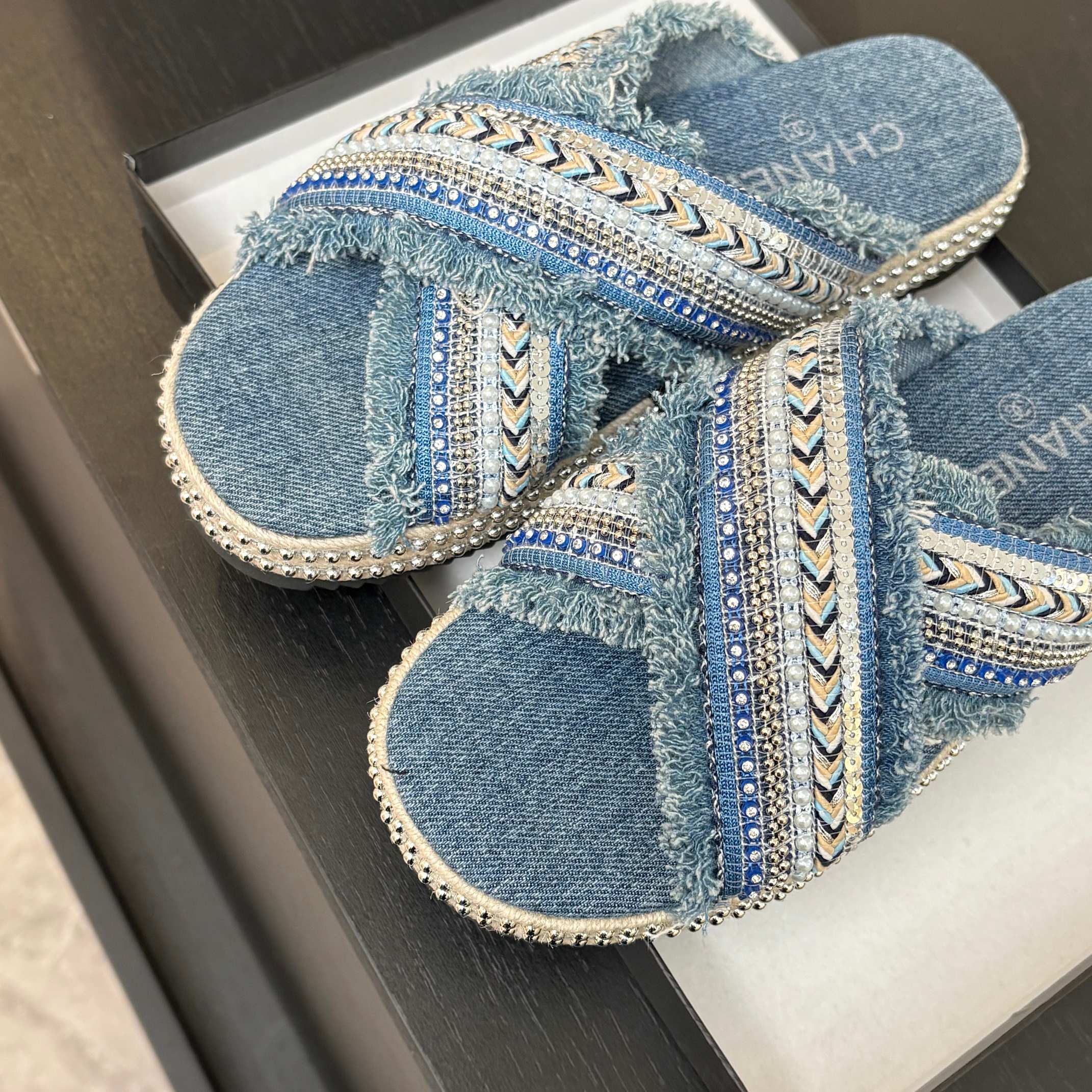 CC 25C Thick-Soled Slipper In Black Denim Steel Blue Fabric 213232