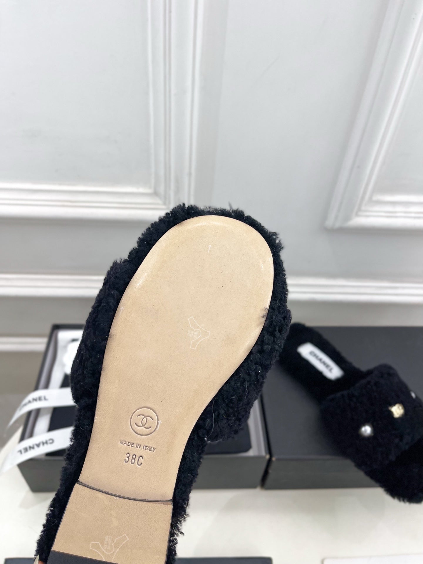 CC 25K Double C Pearl Fur Slippers Black Shearing 587000