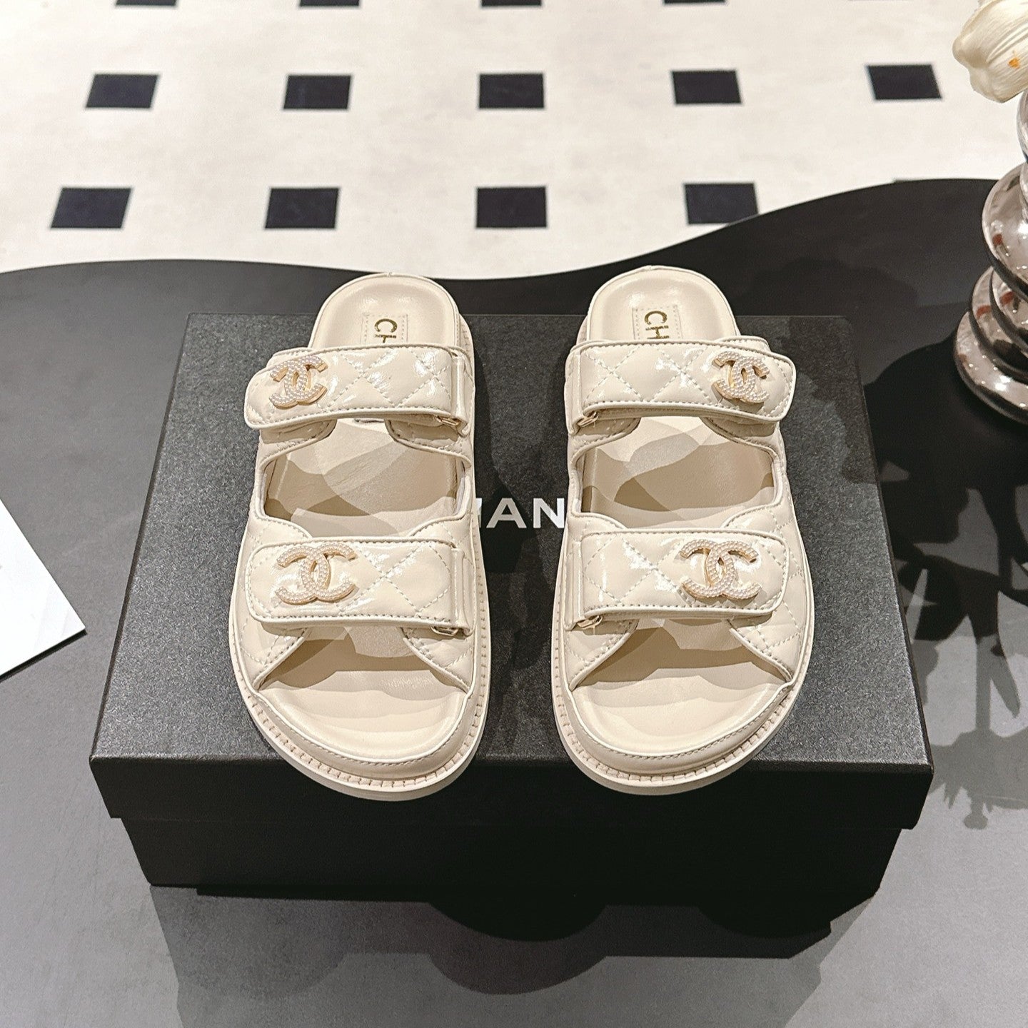 cc 25p logo with pearl mule sandal cream leather 237577