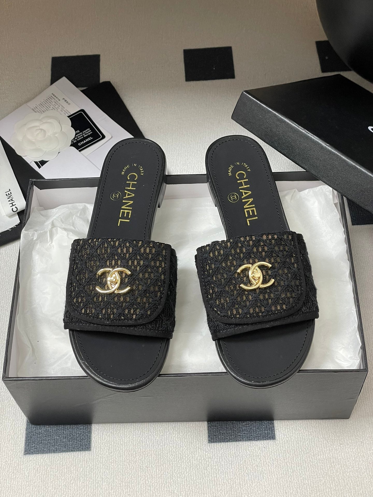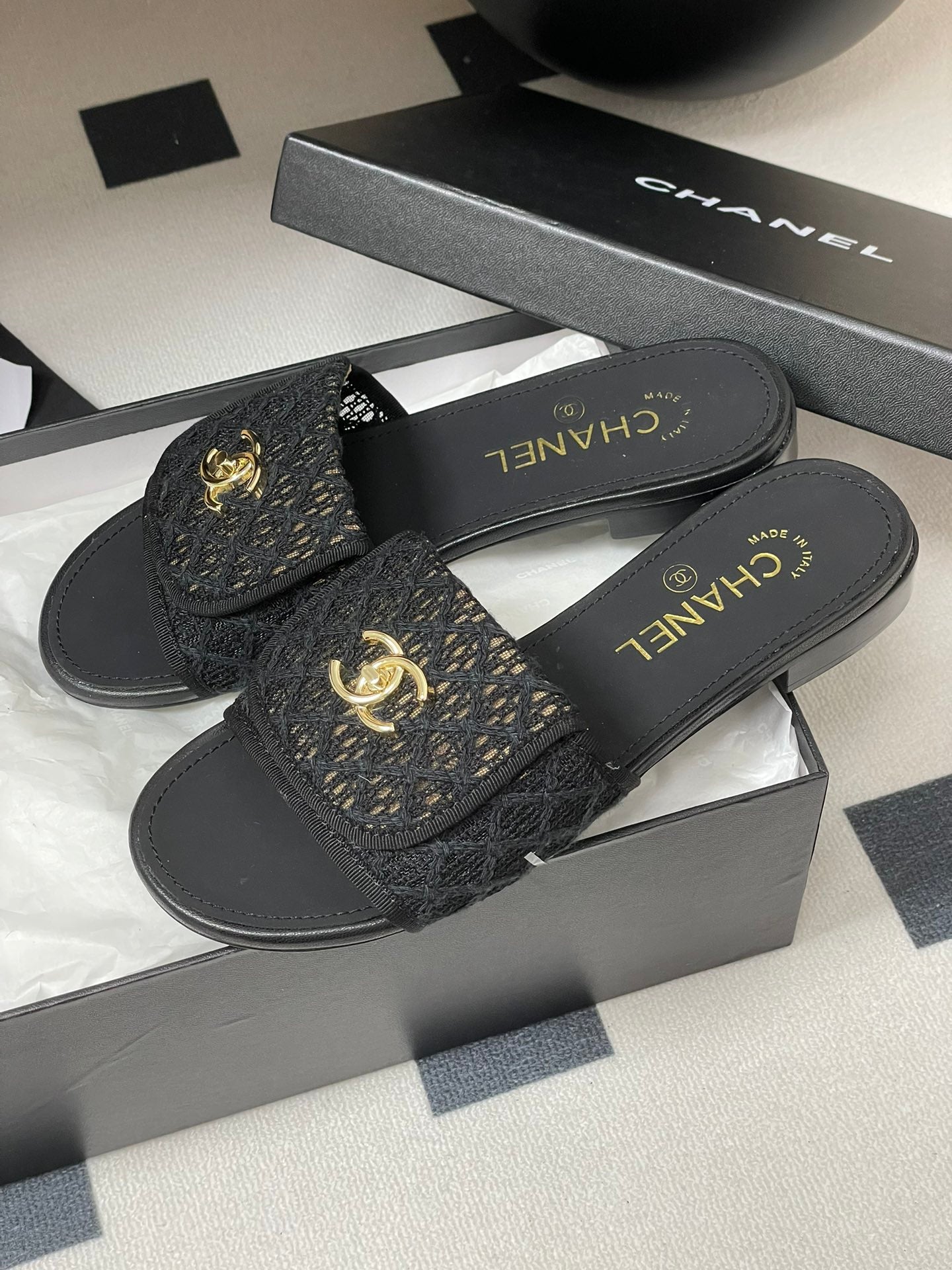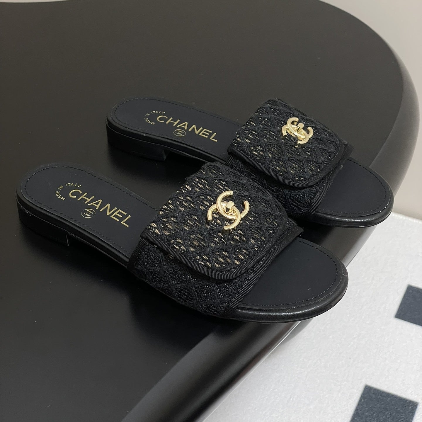 CC 25S Buckle Bag Mule Black Lace Fabric and Sheepskin 247589