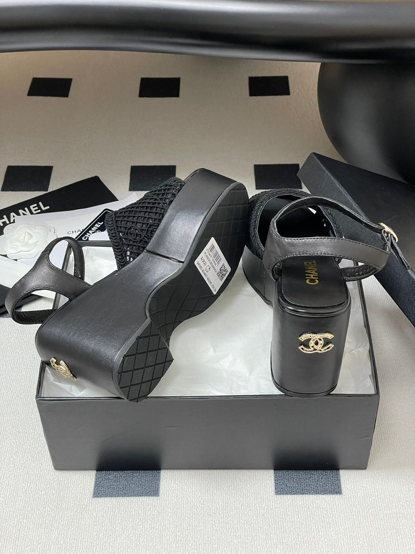 CC 25S Small Wedge Thick-Soled Sandal 10cm Black Woven 247606
