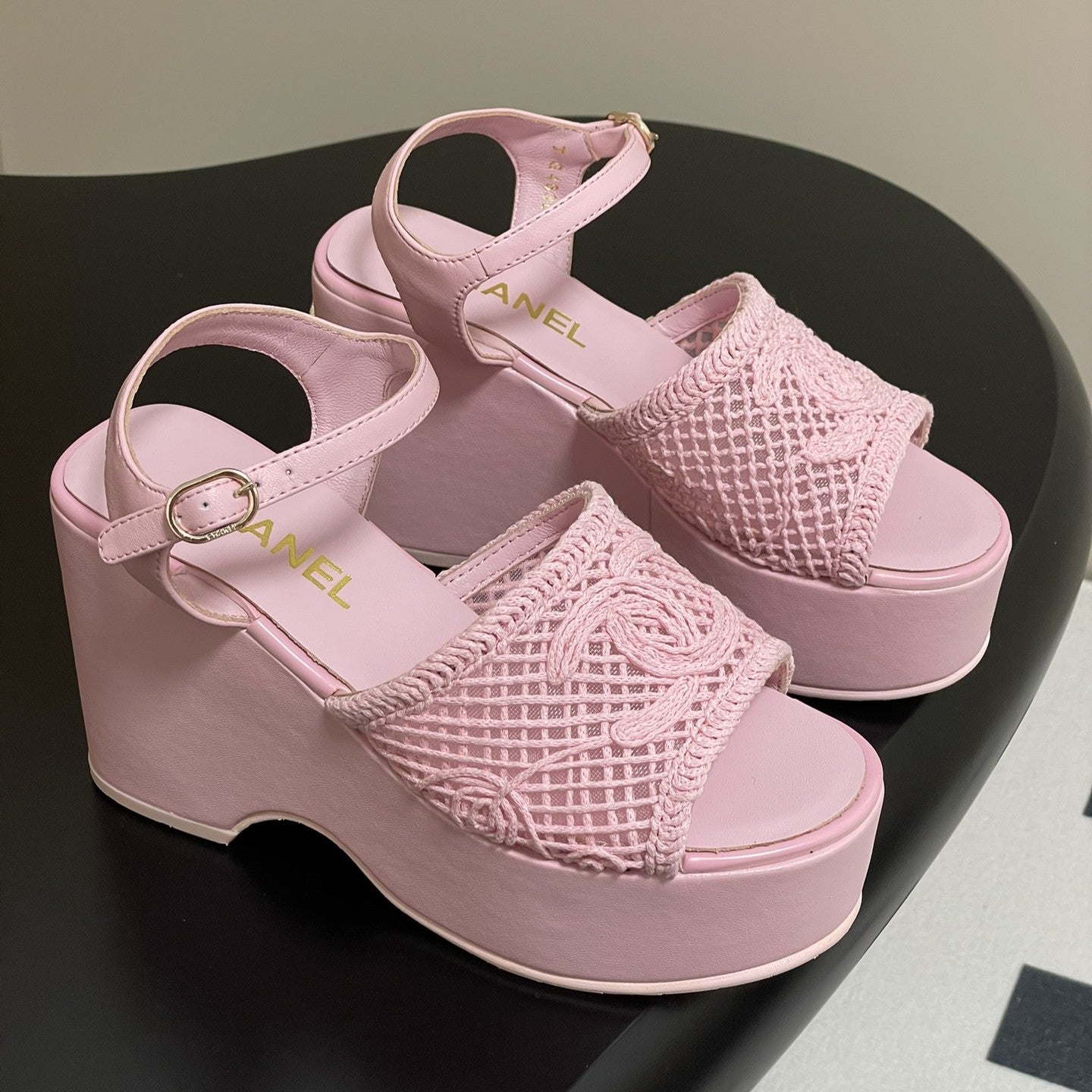 CC 25S Small Wedge Thick-Soled Sandal 10cm Pink Woven 247604