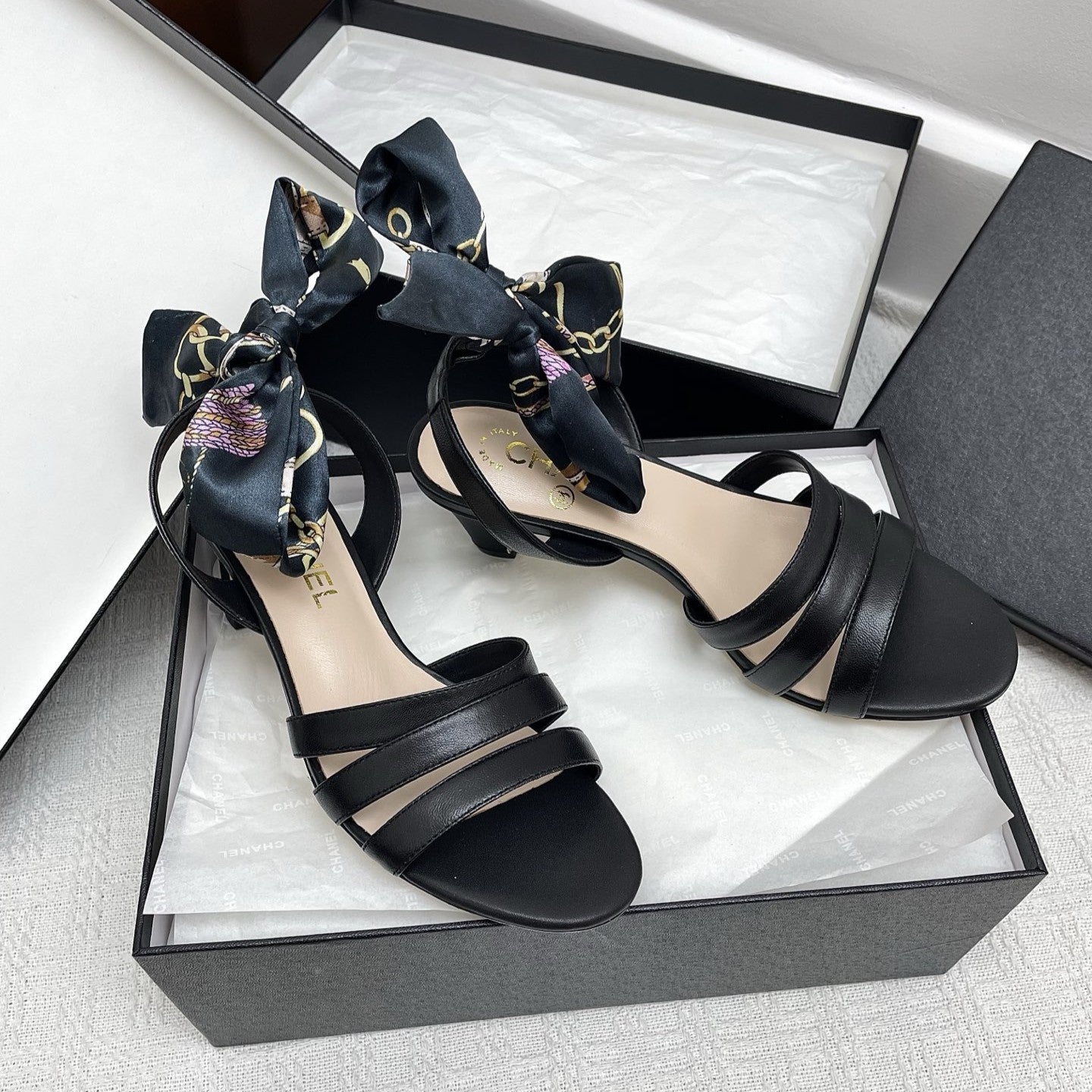 CC 25SS Sandals 5cm Three Straps Black Calfskin 338327