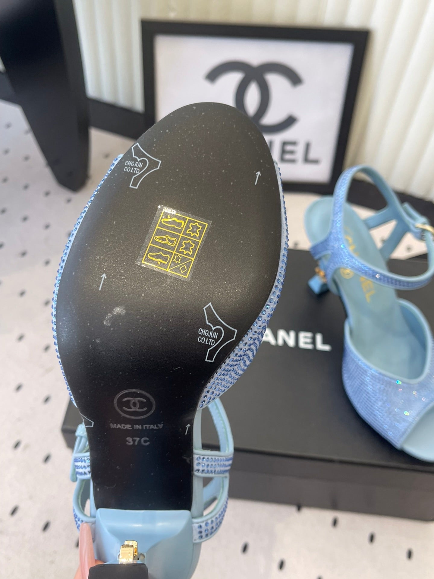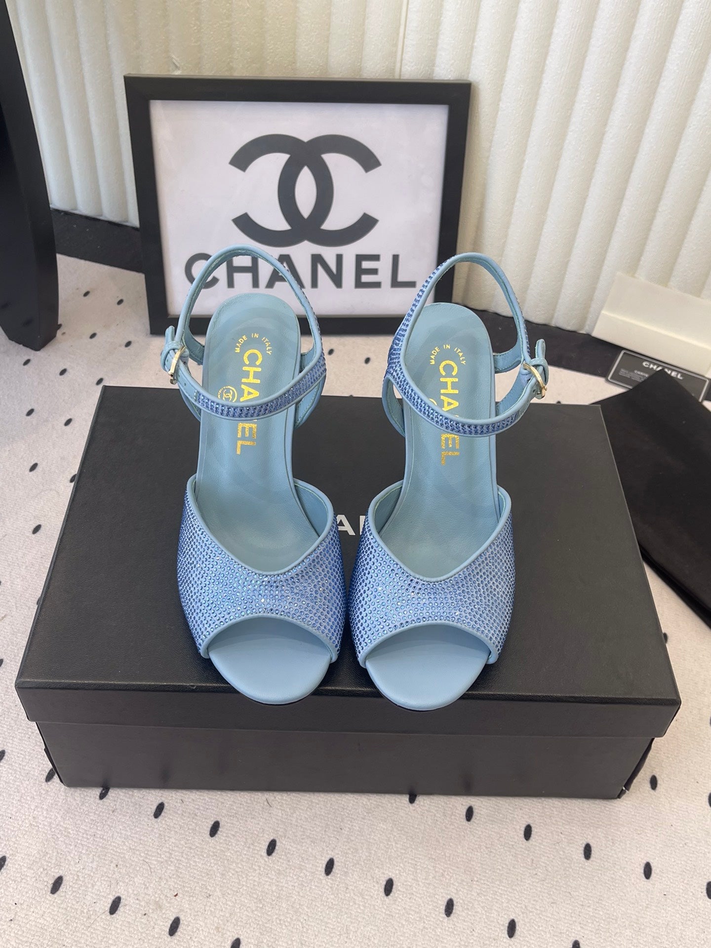 CC 26 Rhinestone Sandal 75mm Blue Lambskin 611732