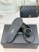 CC 26C Early Spring Camellia Slide Black Calfskin & Patent Leather