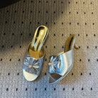 CC 26s High-Heeled Slides 60 Metallic Sliver Cowhide 627183