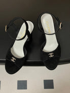 CC 26SS Platform Sandals 120mm Black Double C Sheepskin Suede 632574