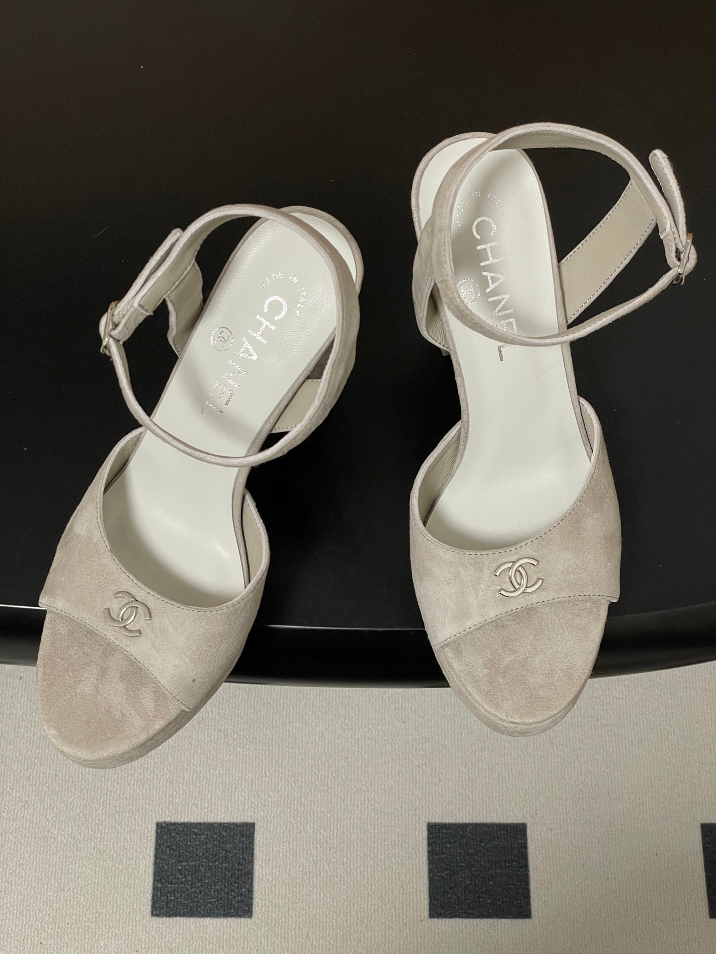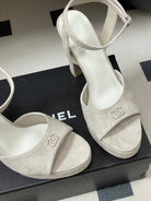 CC 26SS Platform Sandals 120mm Light Gray Double C Sheepskin Suede 632573