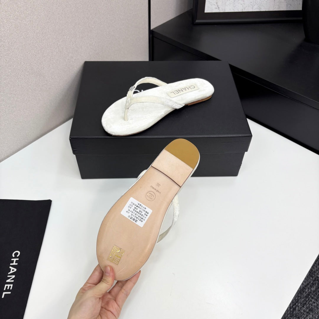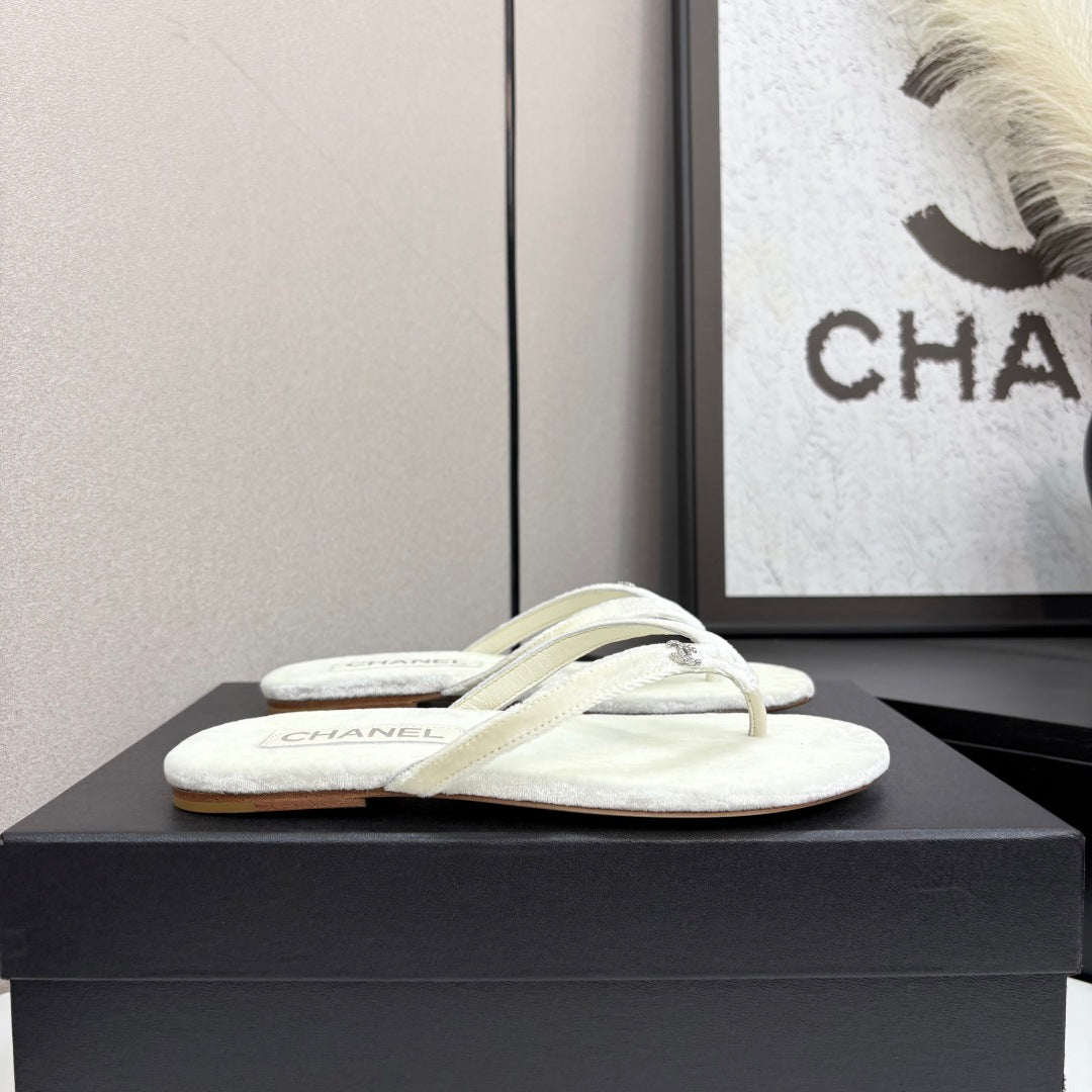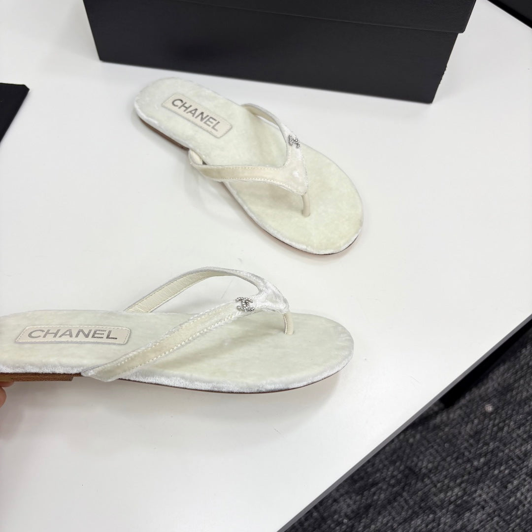 CC Crystal Logo Thong Sandal White Velvet 352477