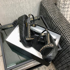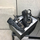 CC Platform Sandals Quilted Chain Black Lambskin 602503