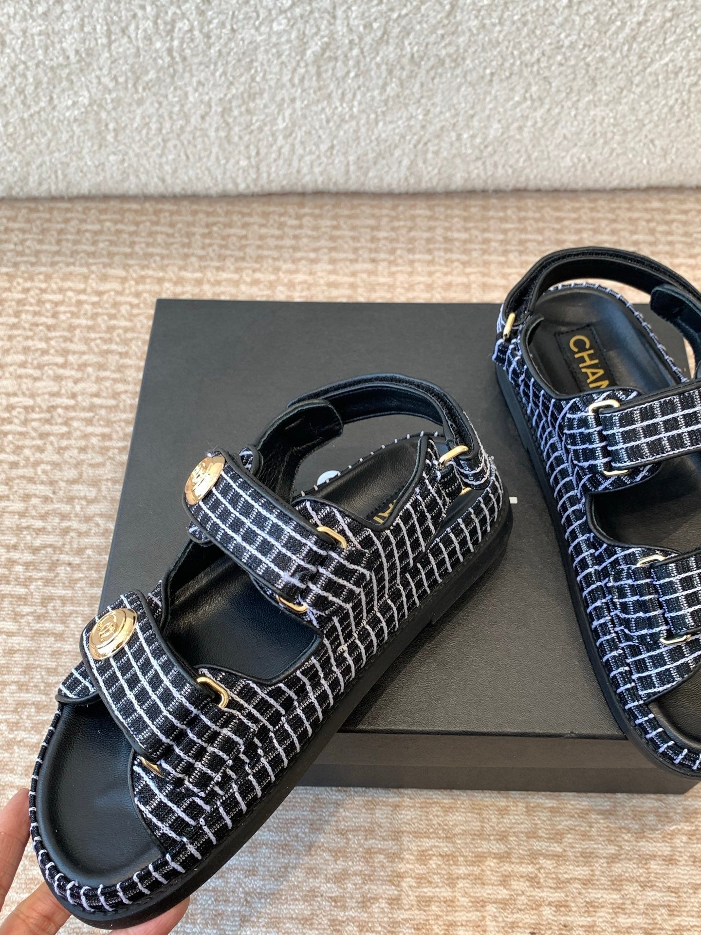DAD SANDAL IN BLACK MIX WHITE DENIM FABRIC