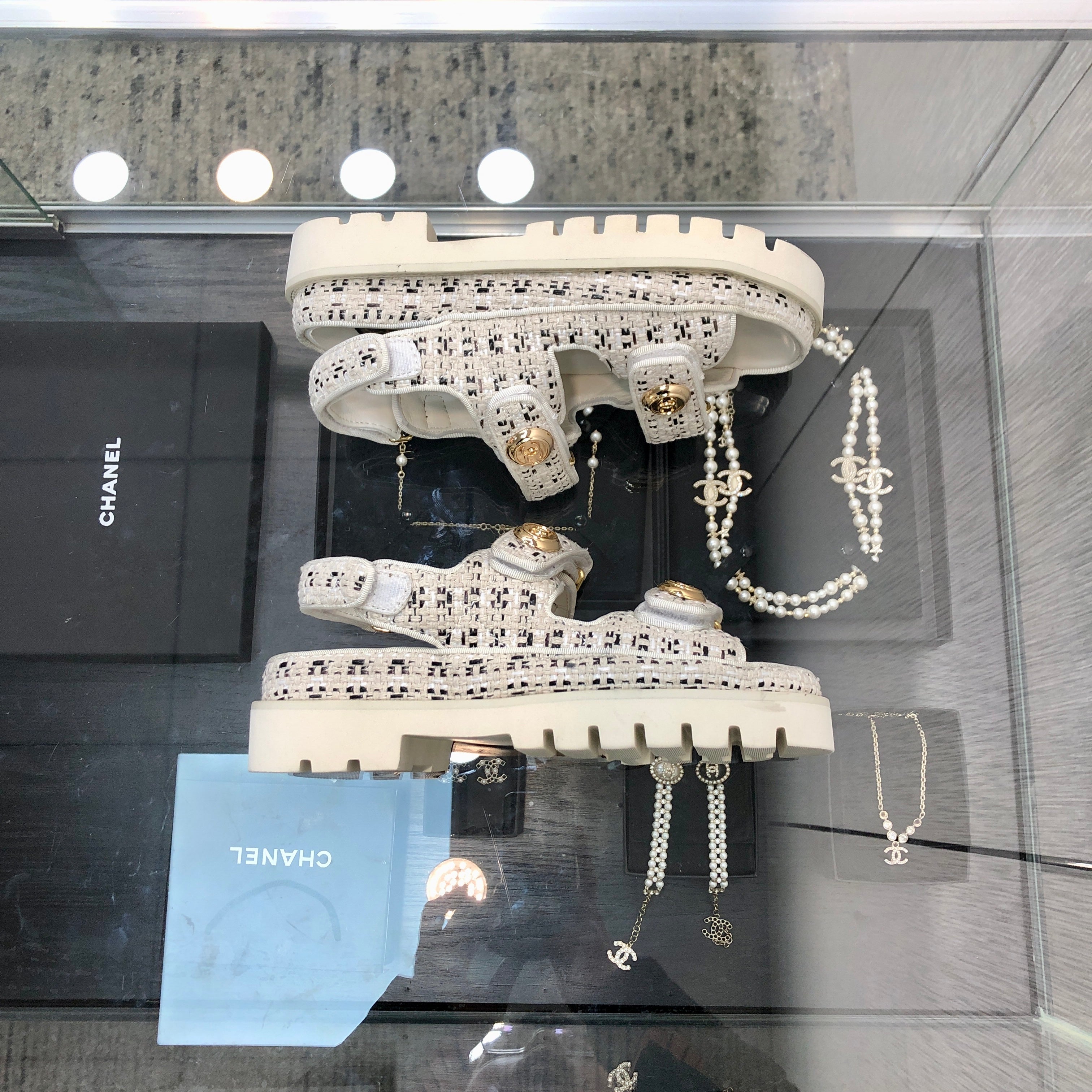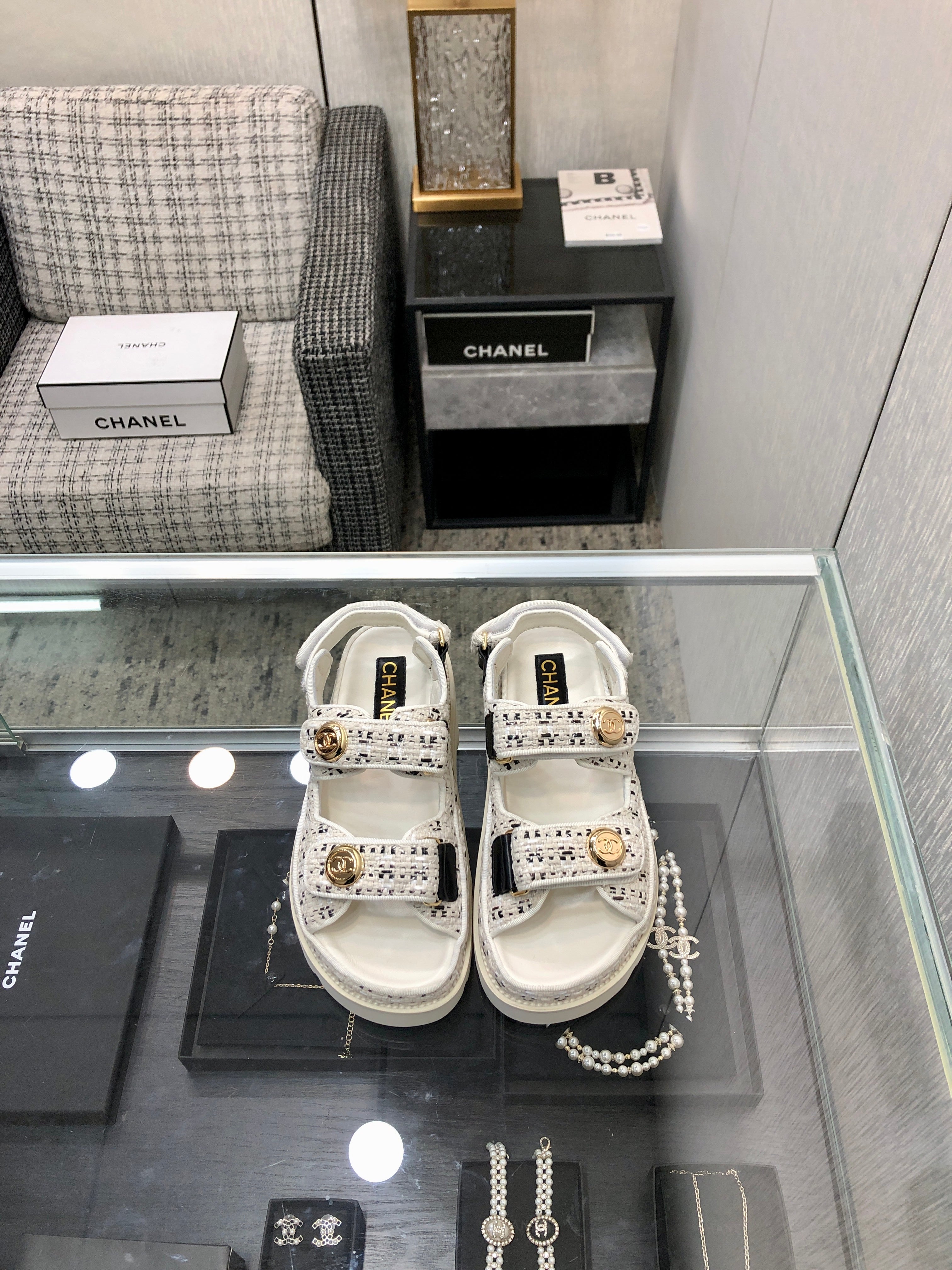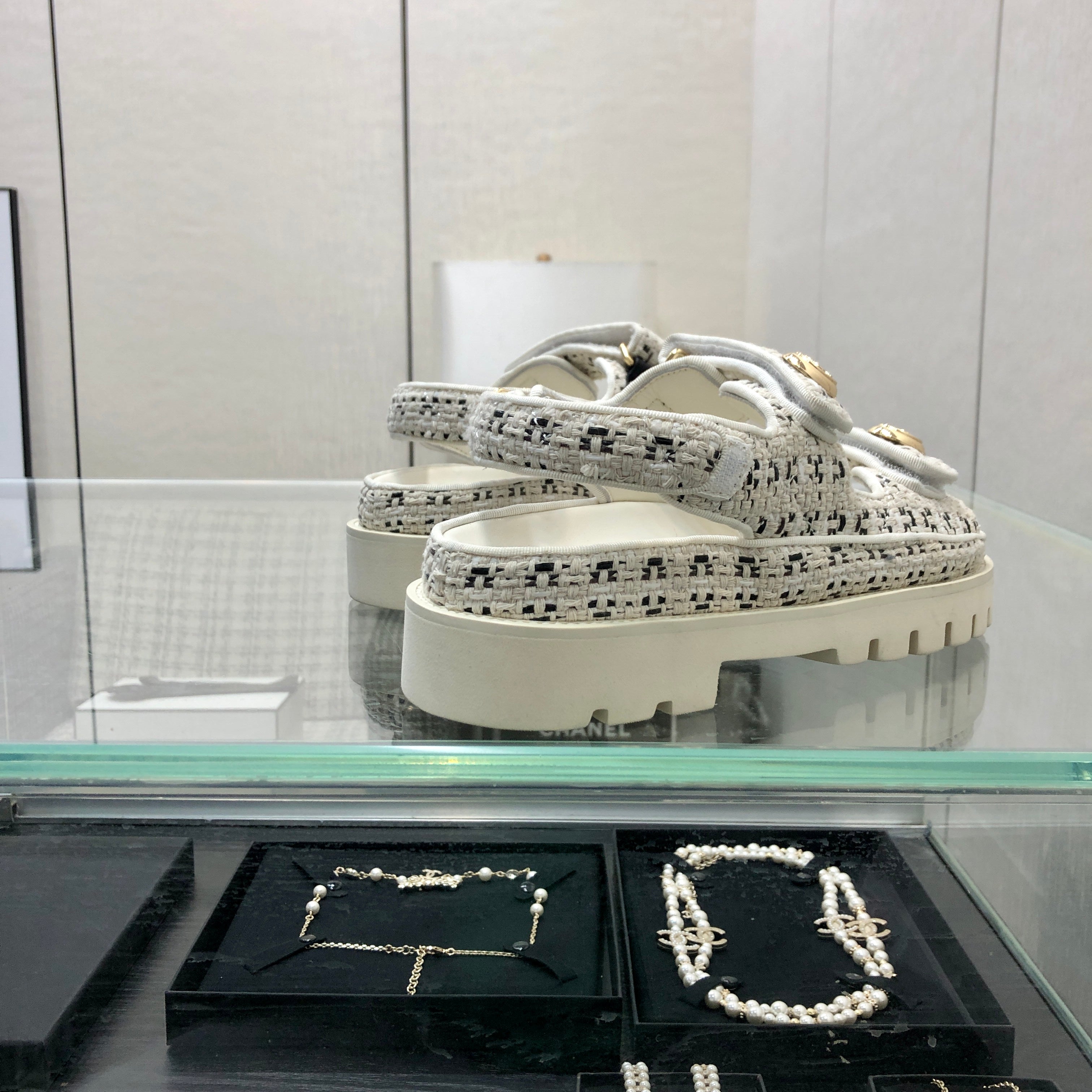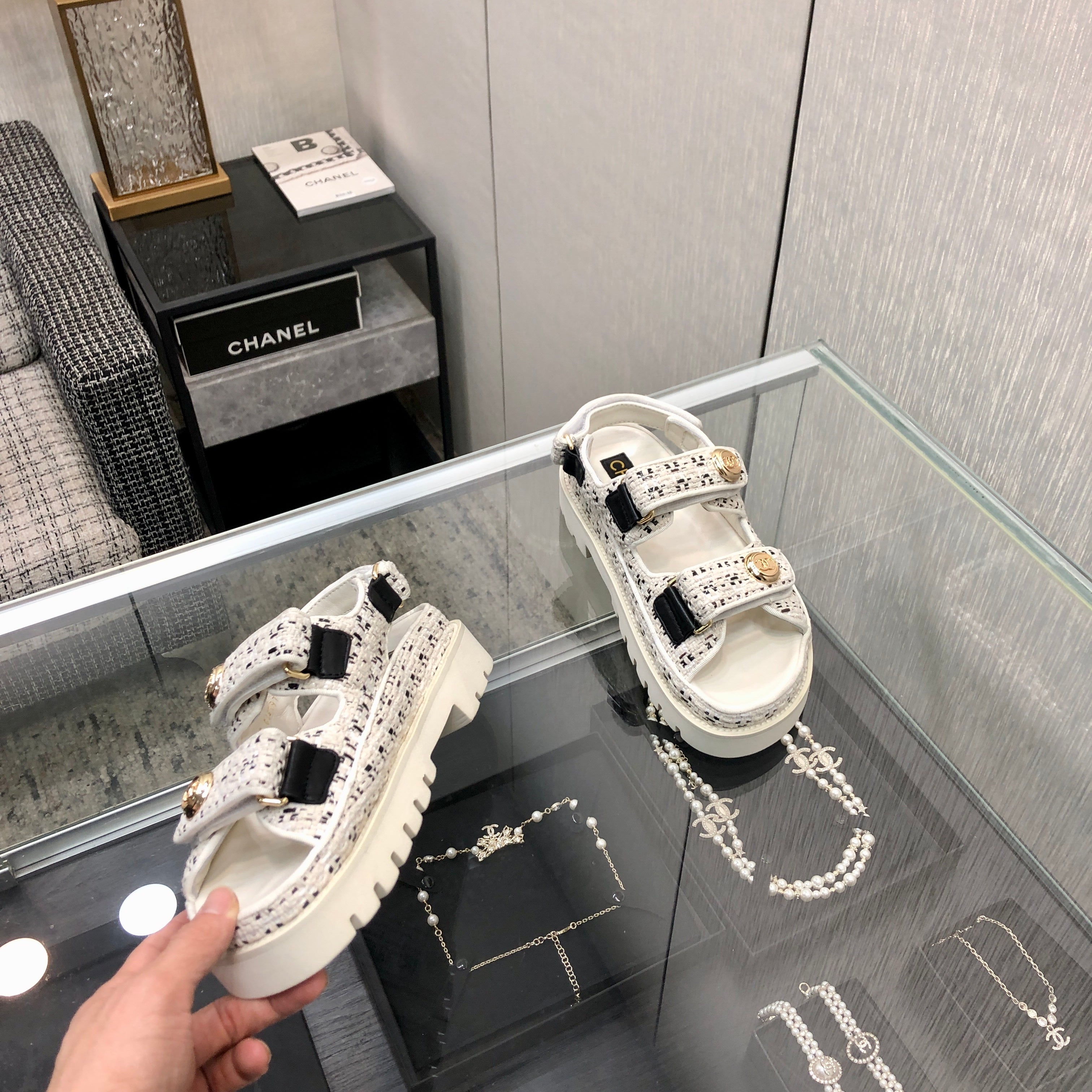 DAD SANDAL IN WHITE MIX BLACK TWEED FABRIC