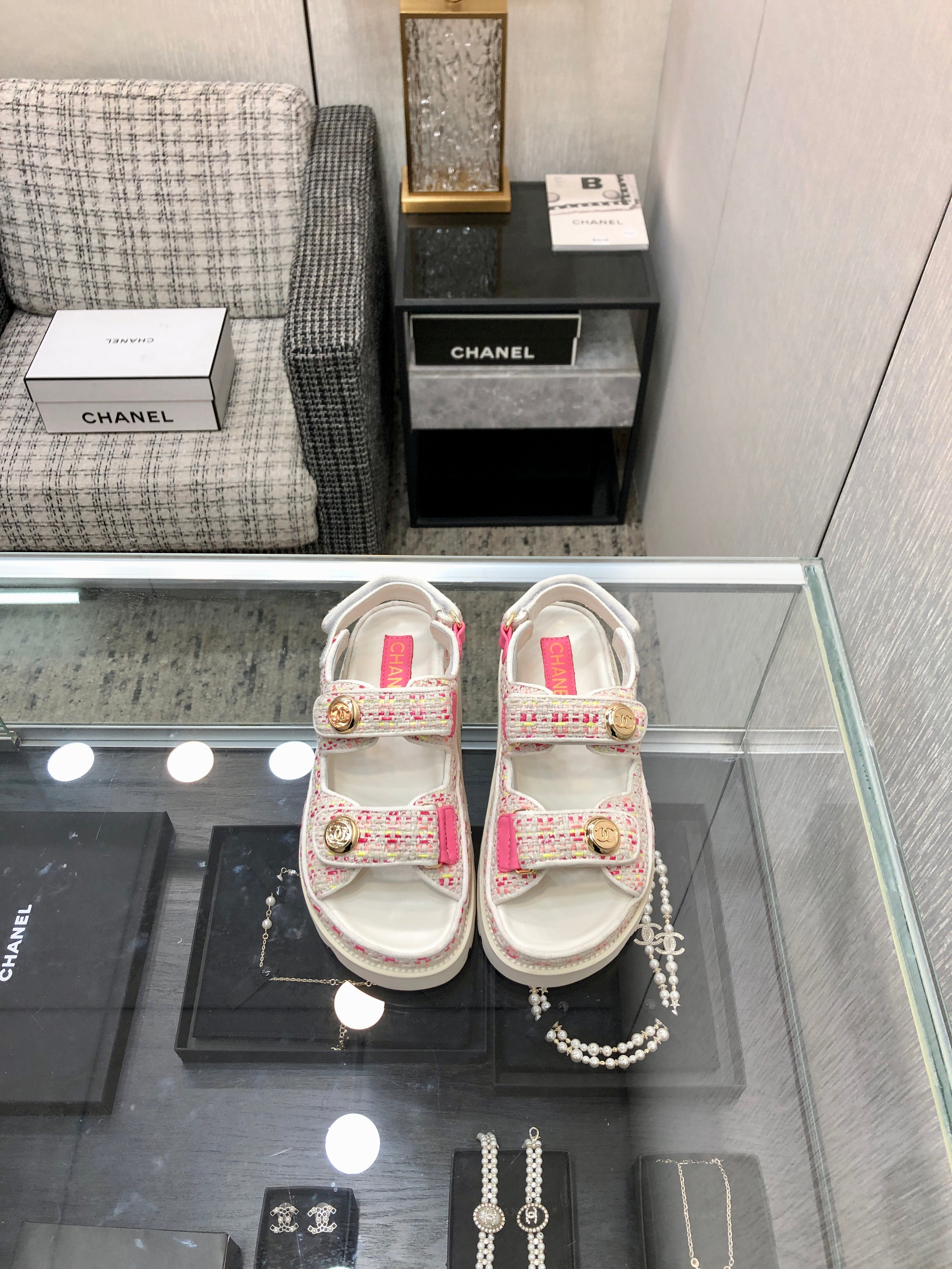 DAD SANDAL IN WHITE MIX BRIGHT PINK TWEED FABRIC