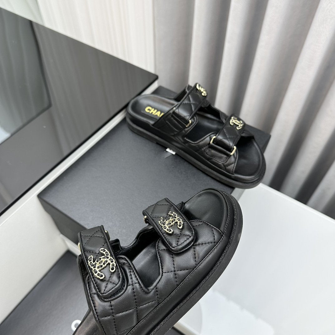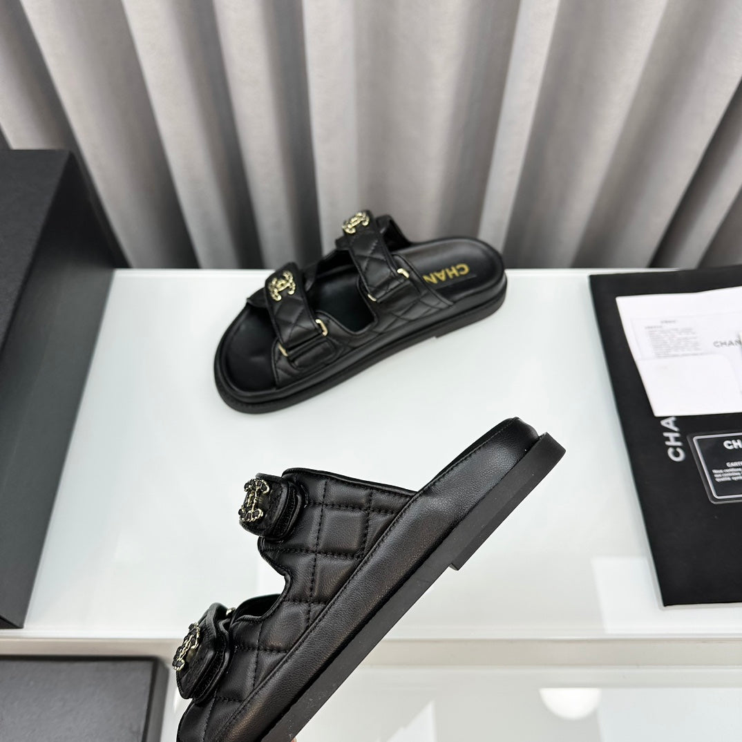 dad sandals black lambskin mules