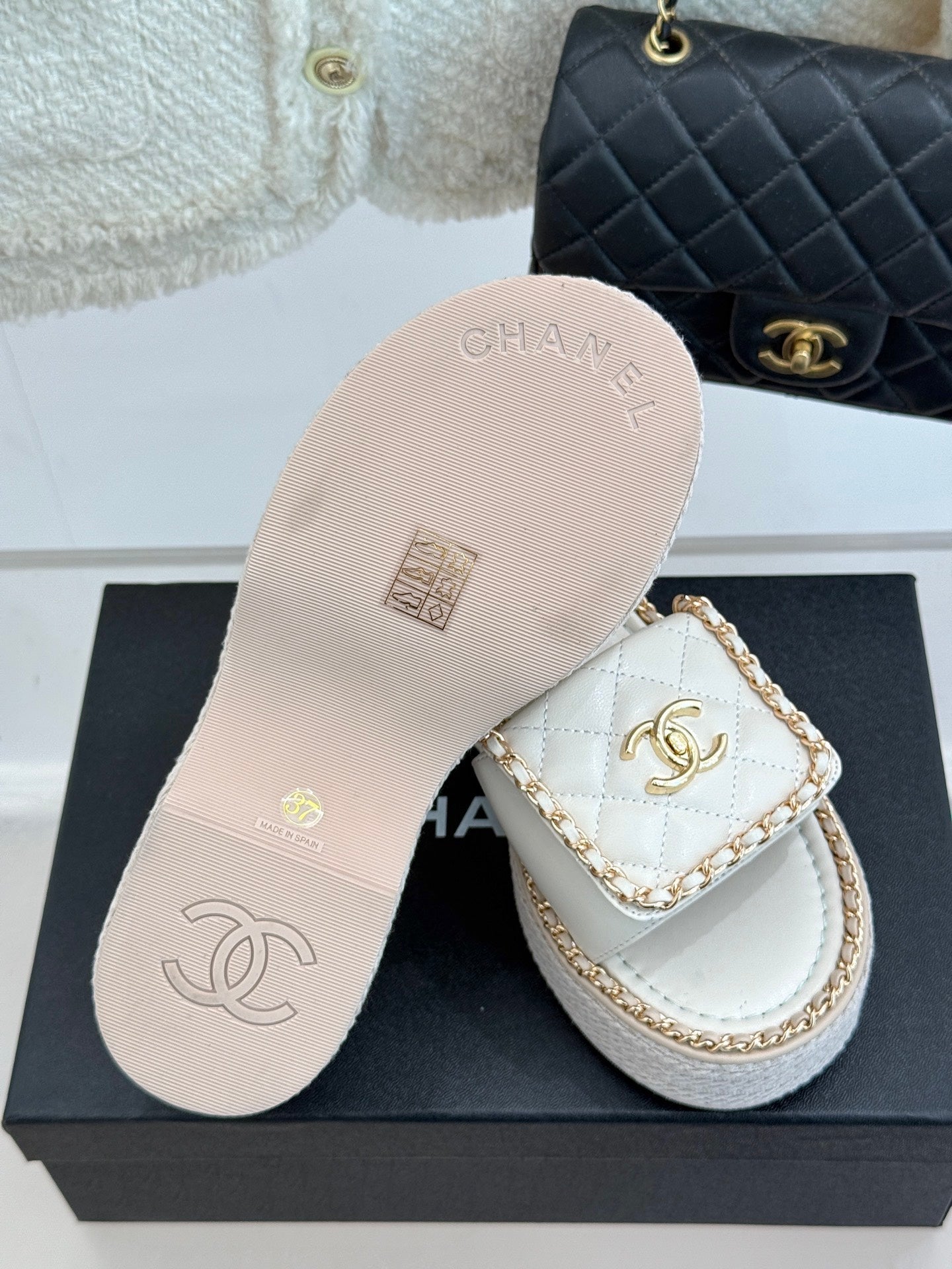 THICK-SOLED CHAIN HEART SLIPPER IN WHITE LAMBSKIN