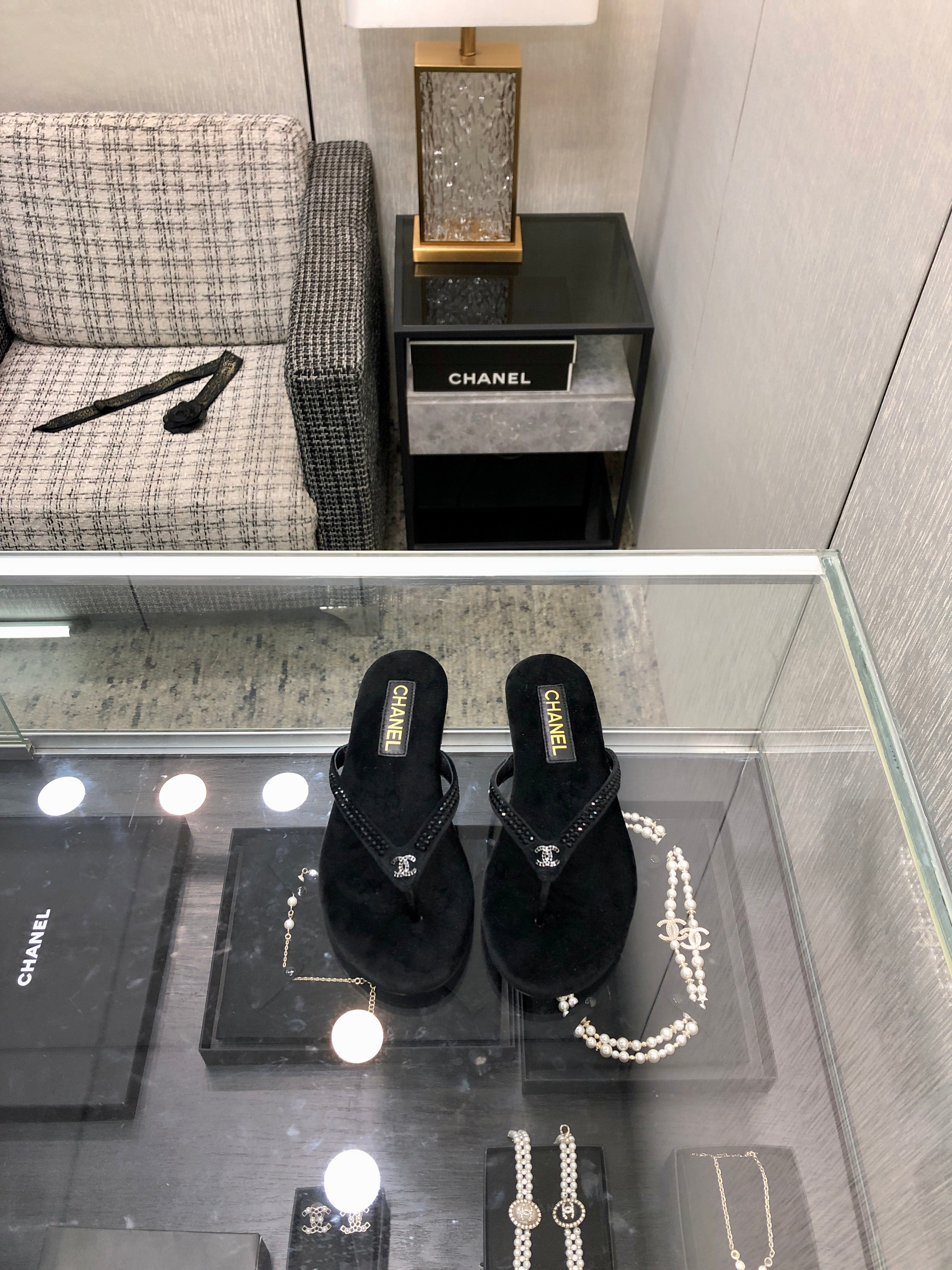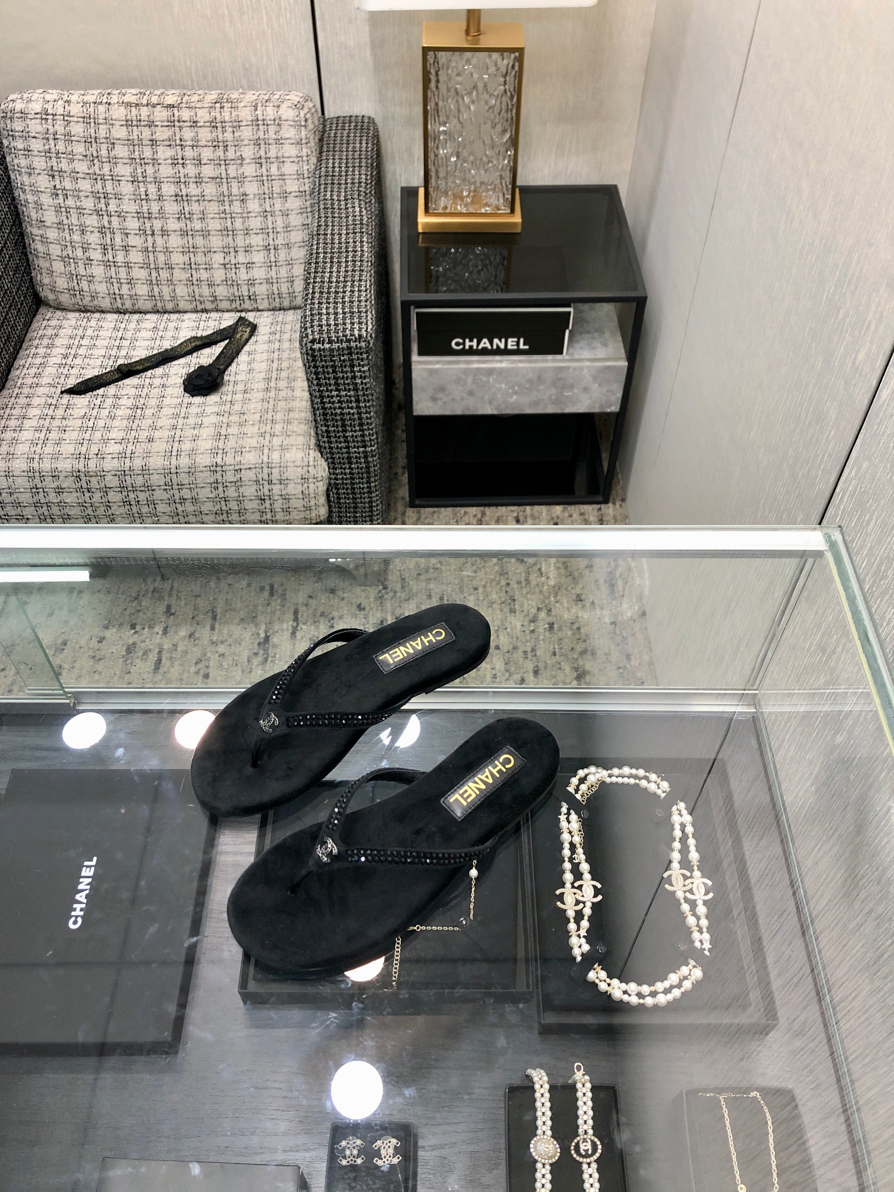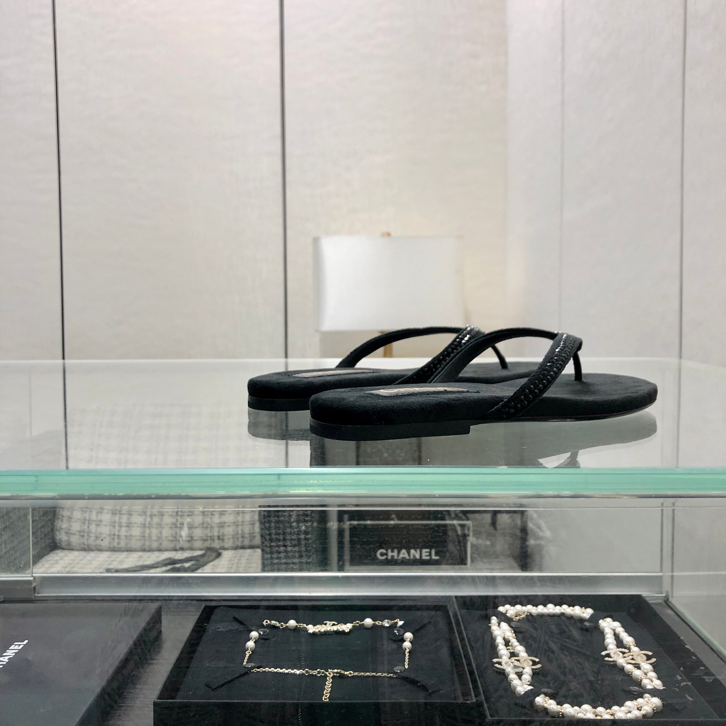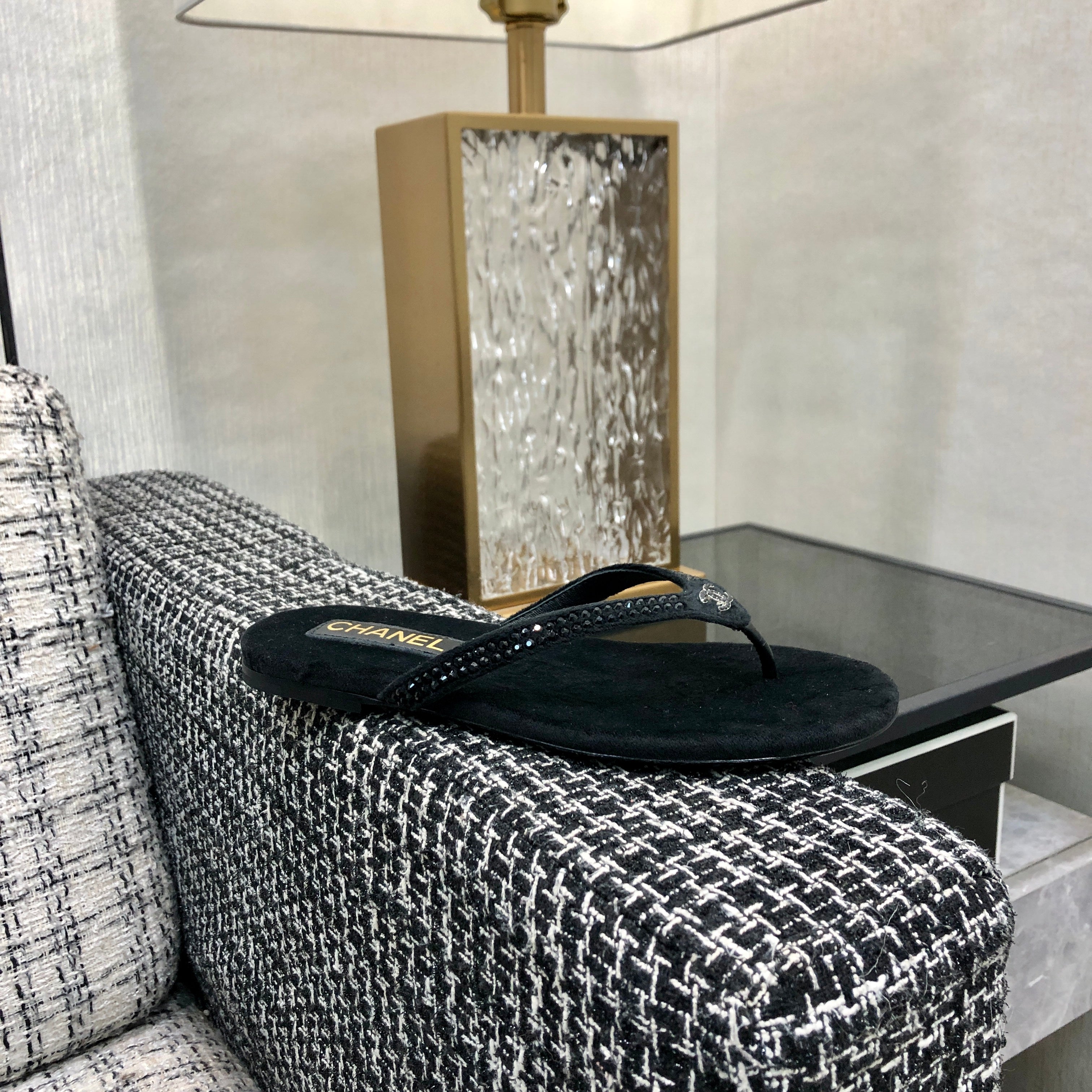 THONG SLIDE IN BLACK SUEDE WITH CRYSTALS