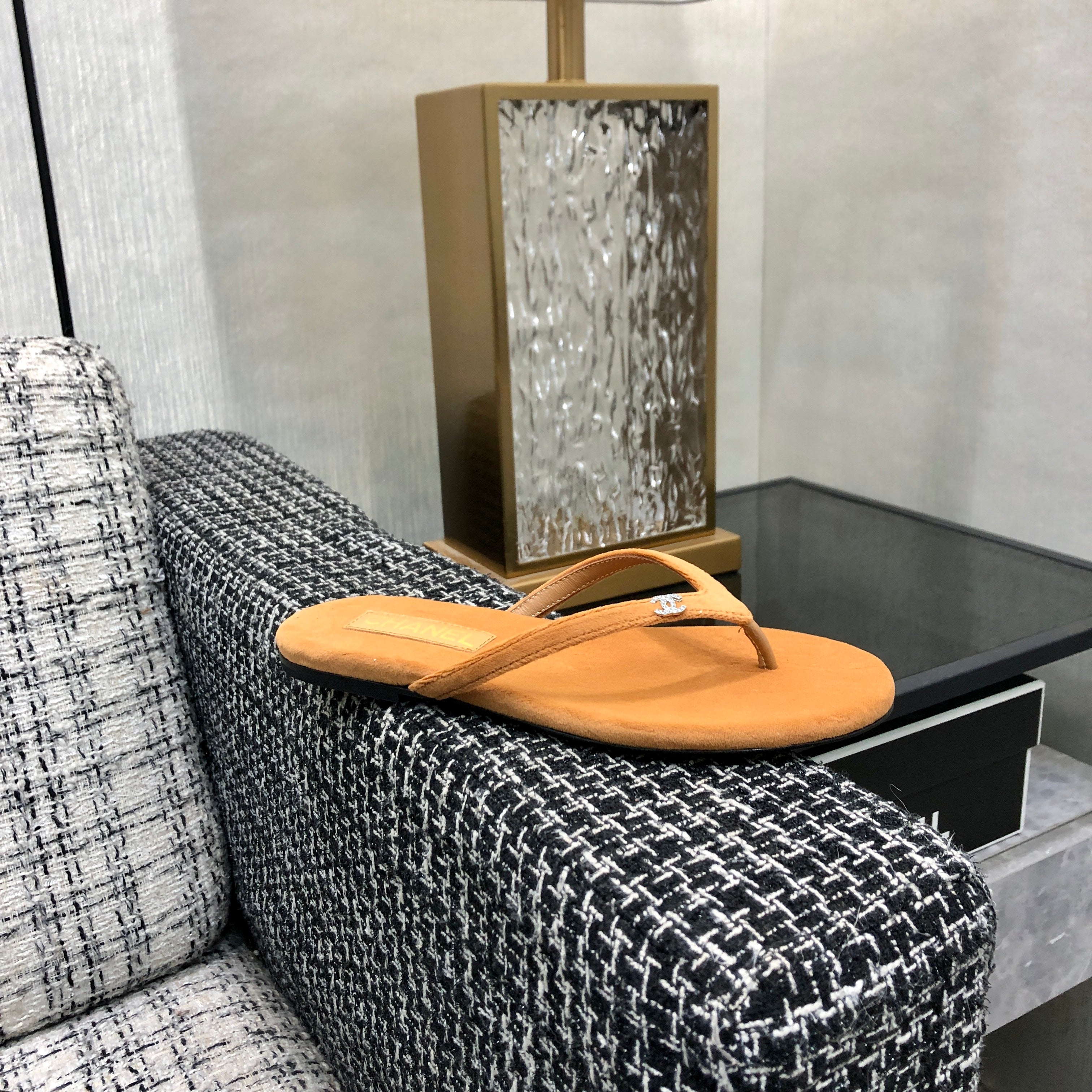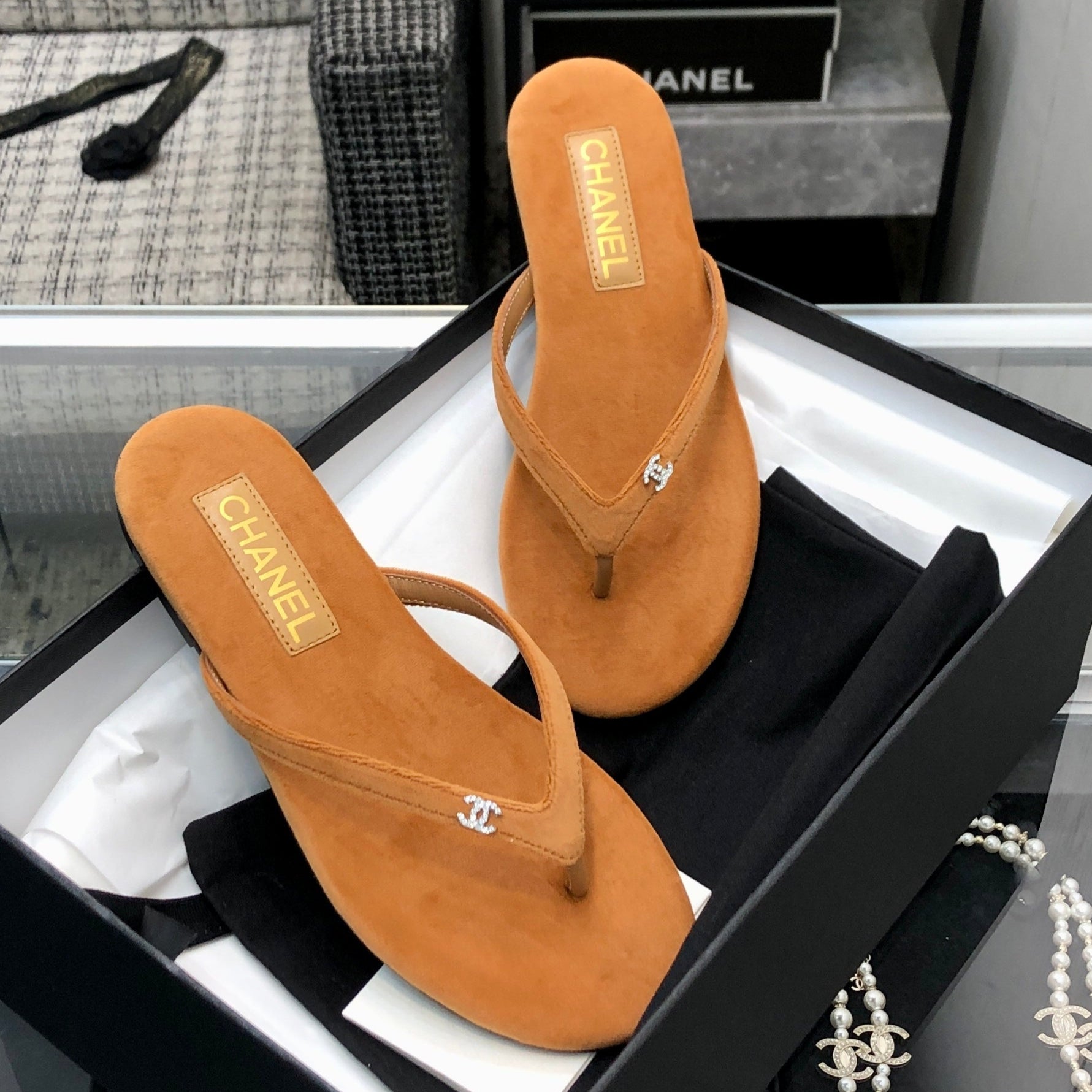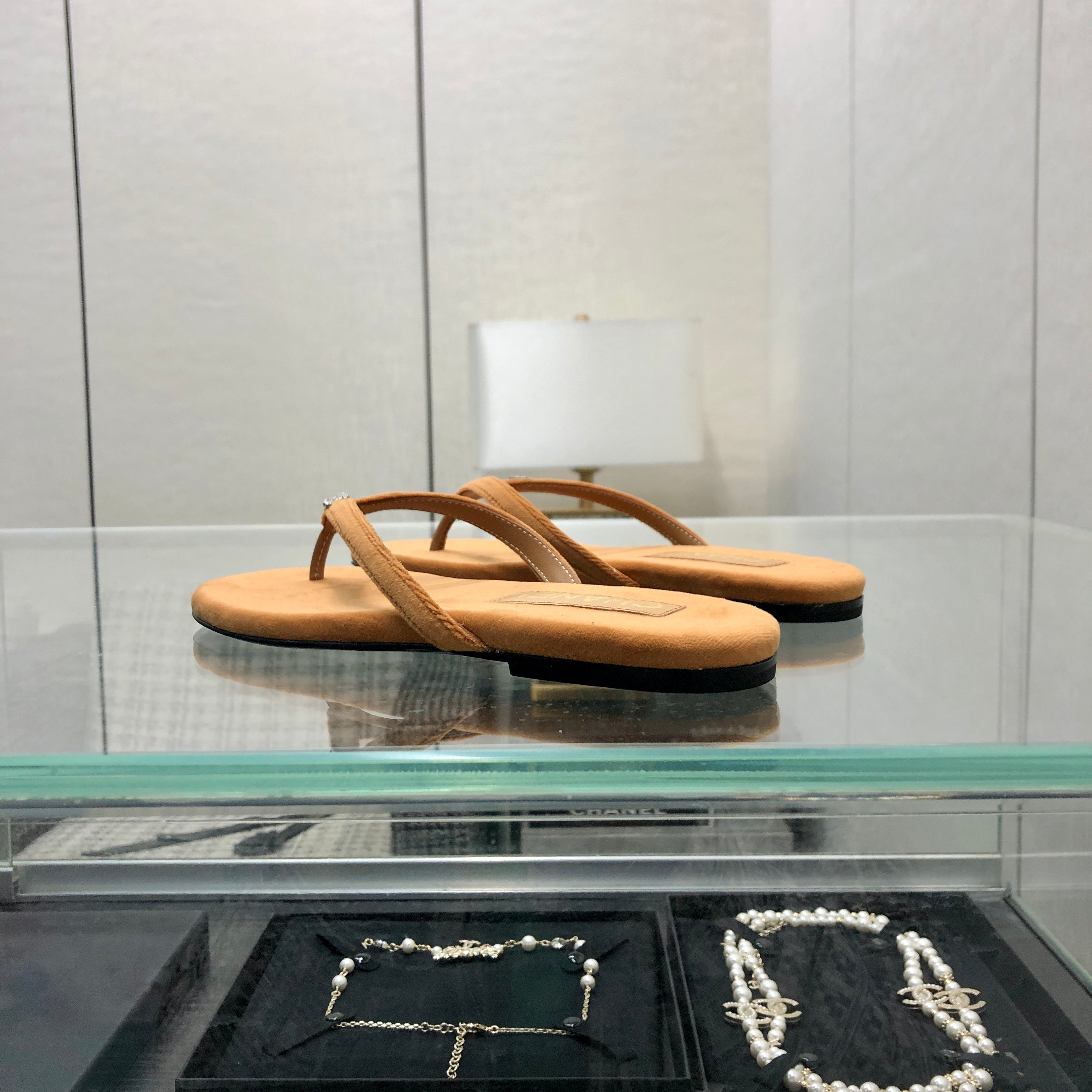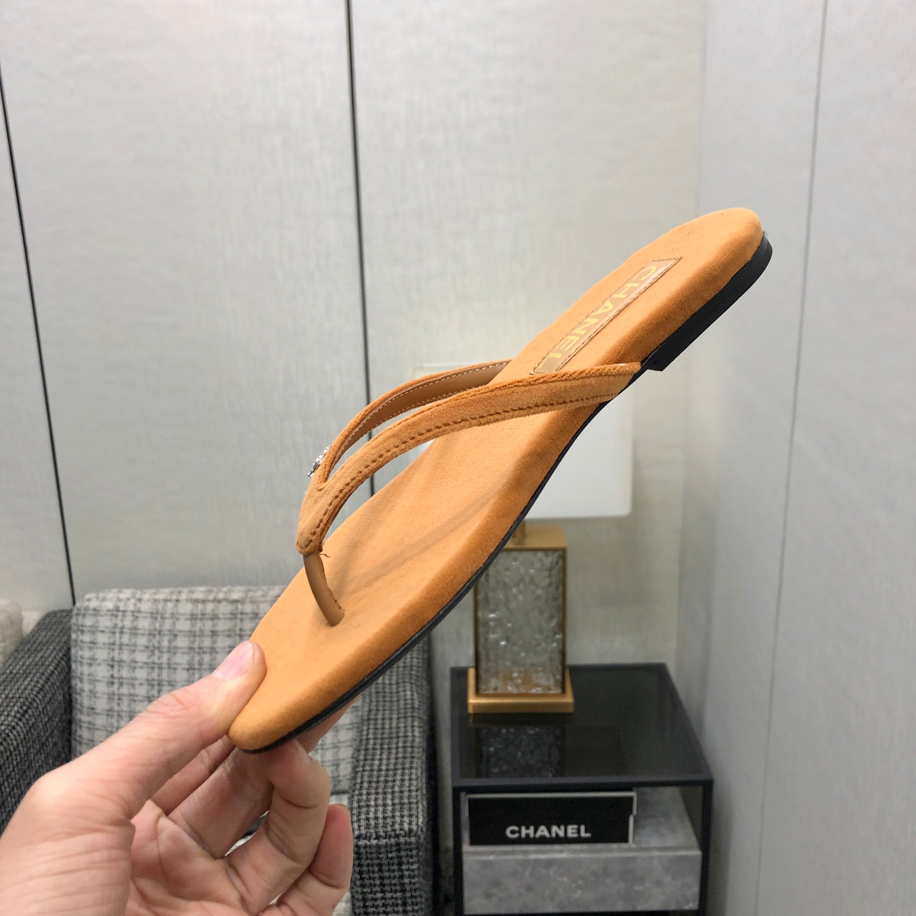 THONG SLIDE IN BRONZE BROWN SUEDE
