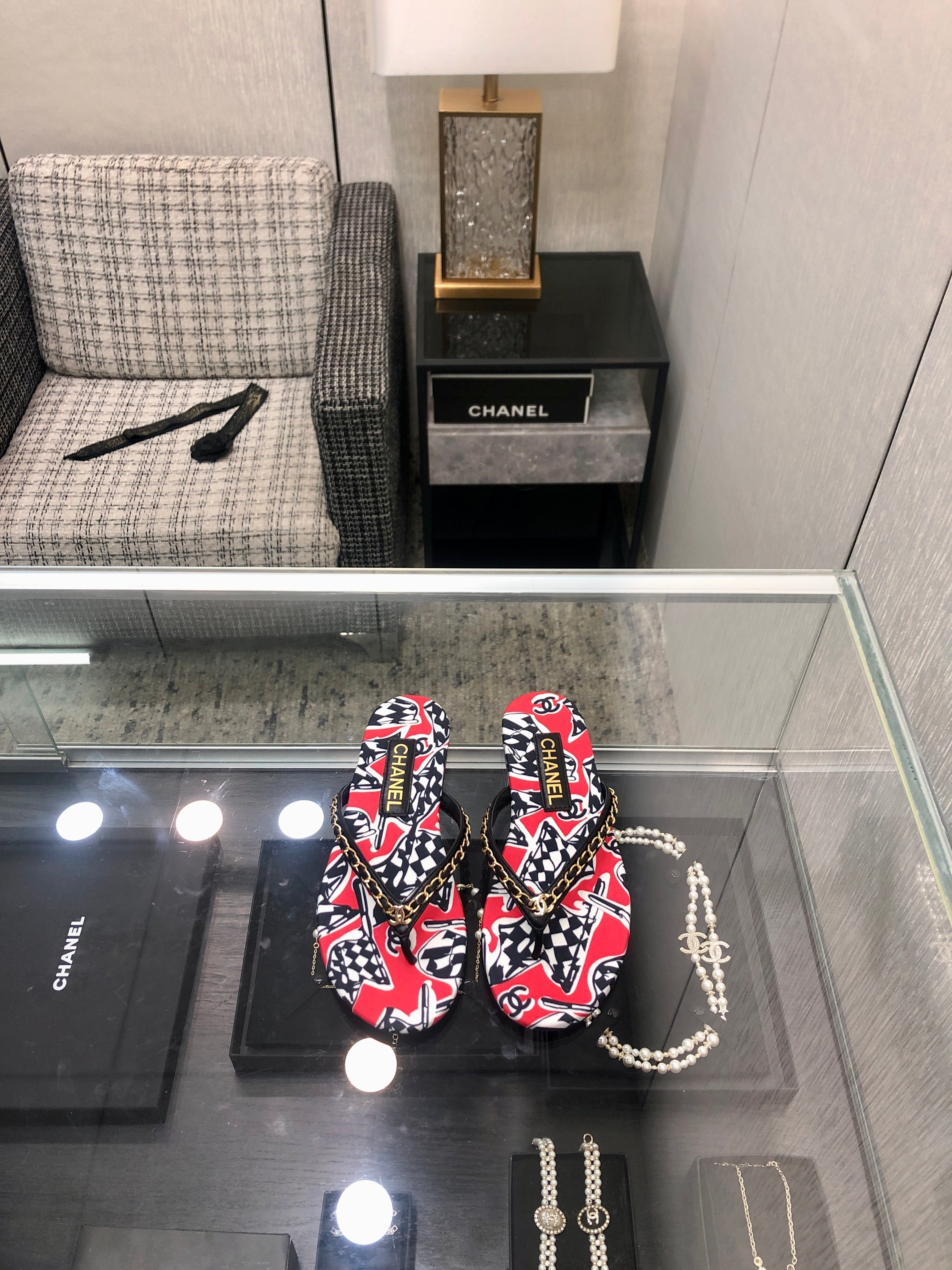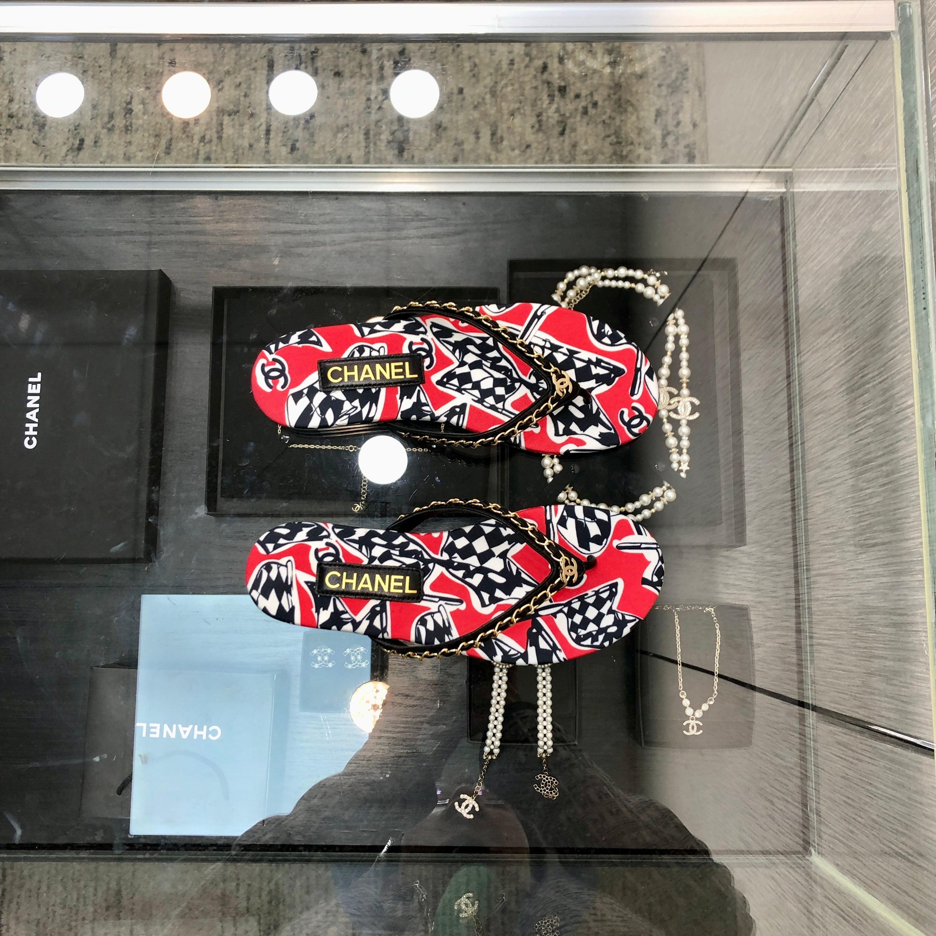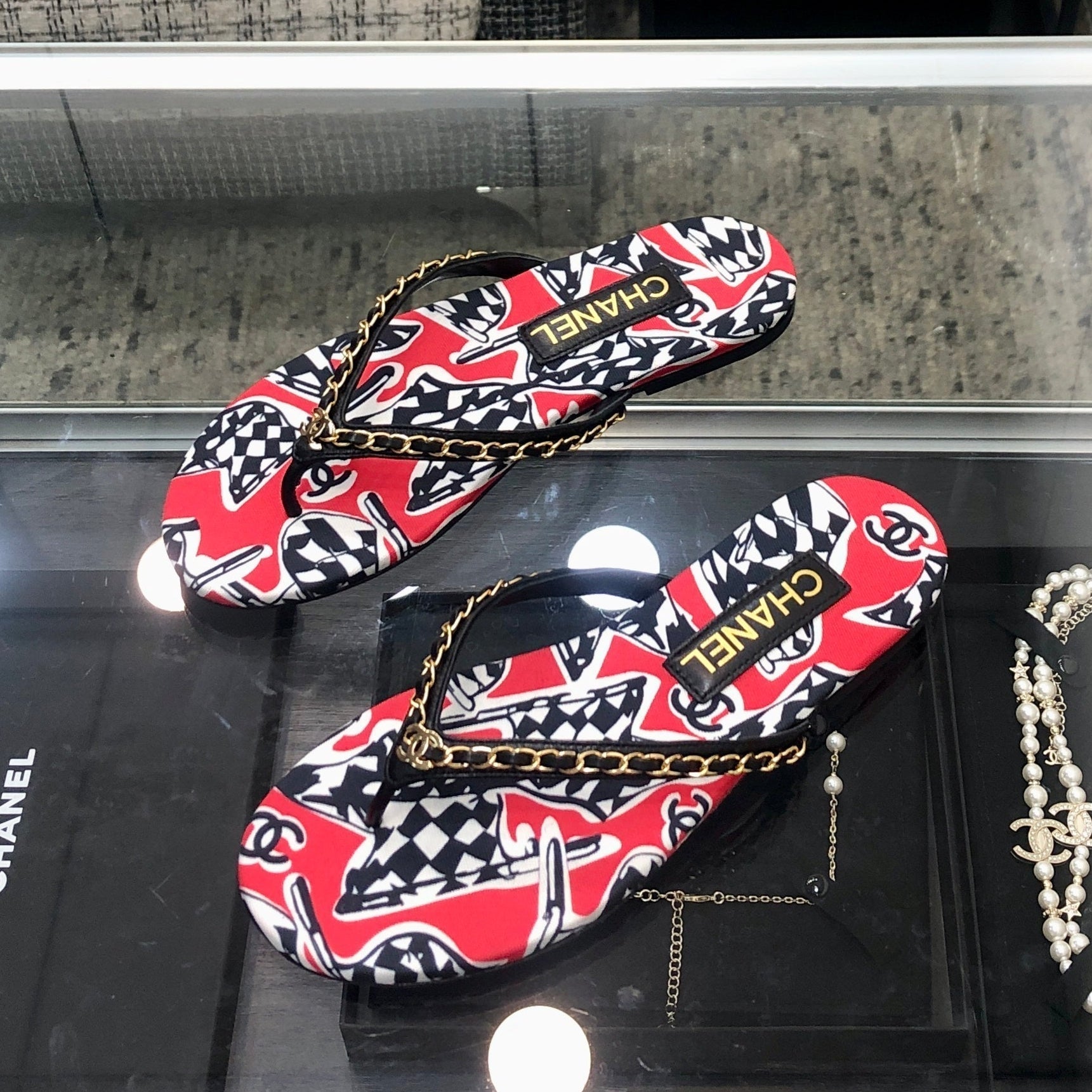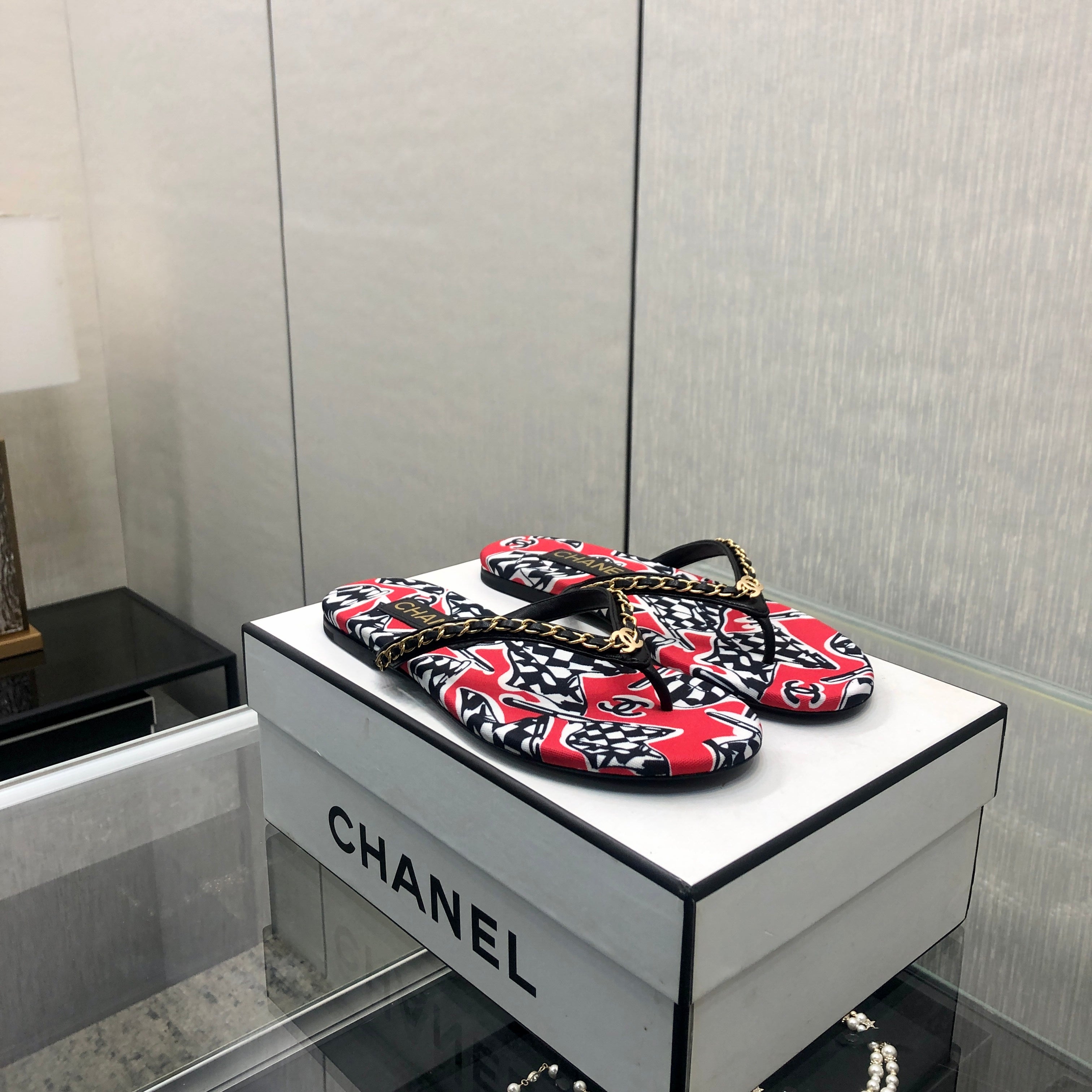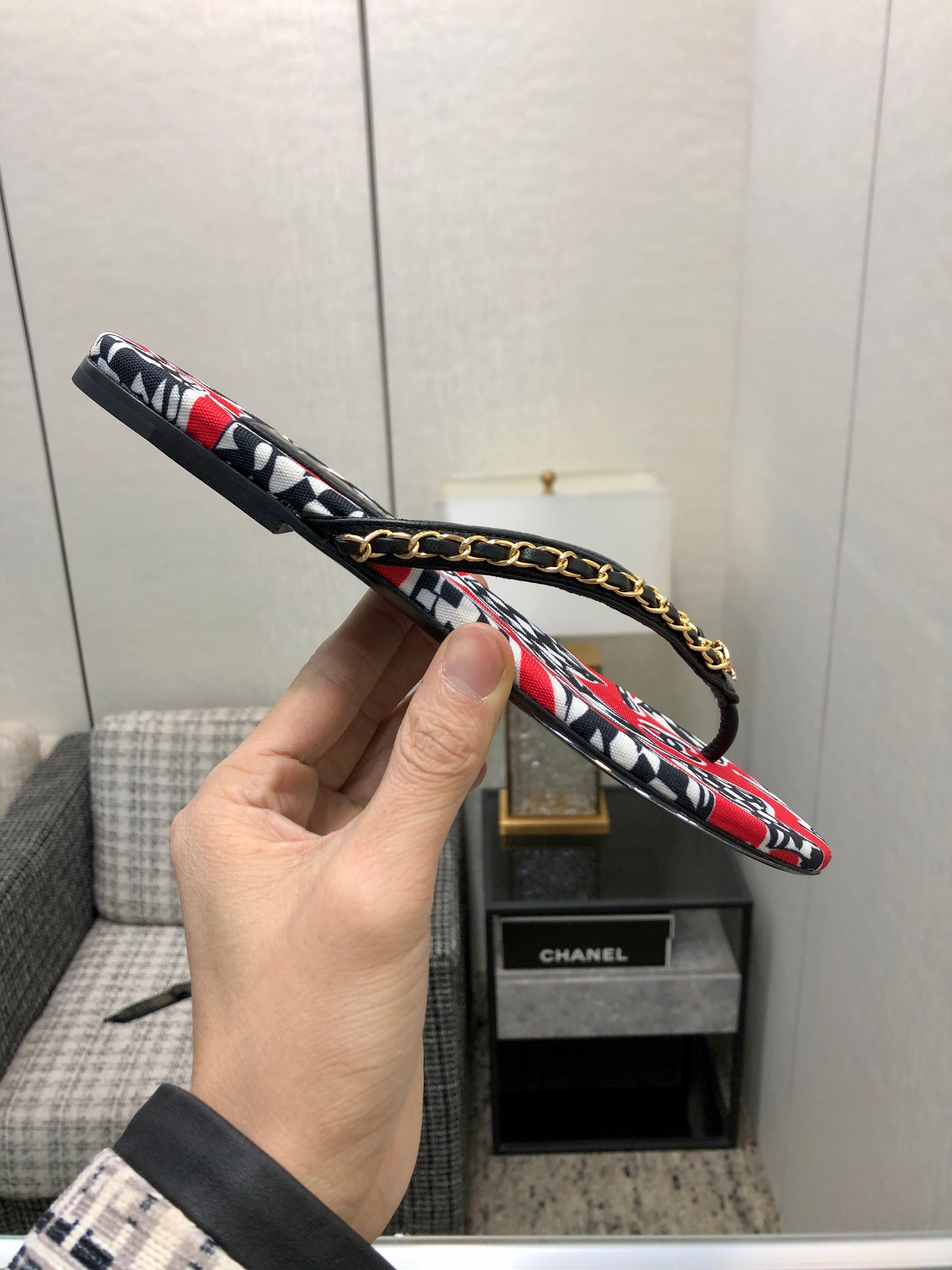 THONG SLIDE IN CHERRY RED MIX COLORFUL FLORAL FABRIC