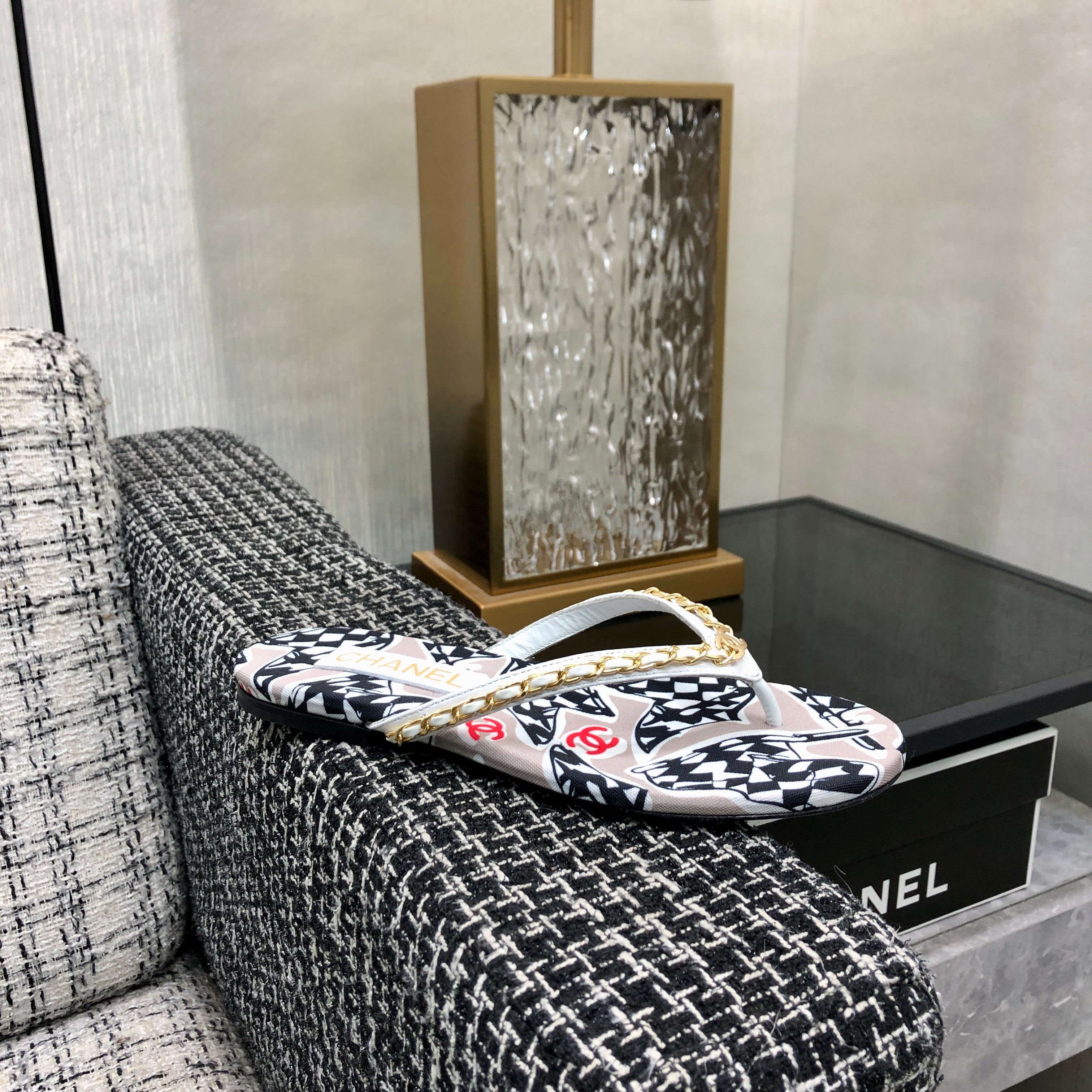 THONG SLIDE IN COLORFUL FLORAL FABRIC