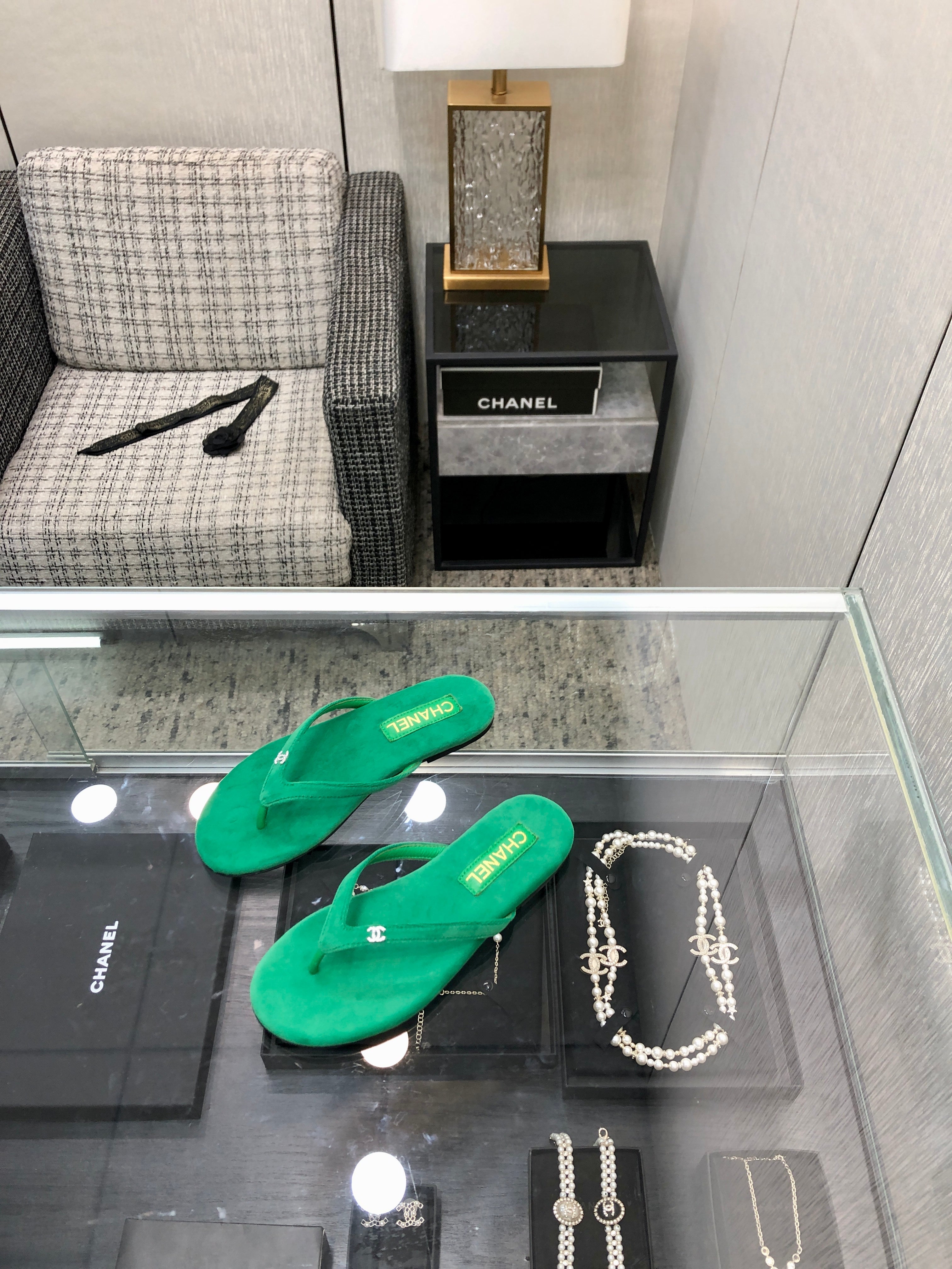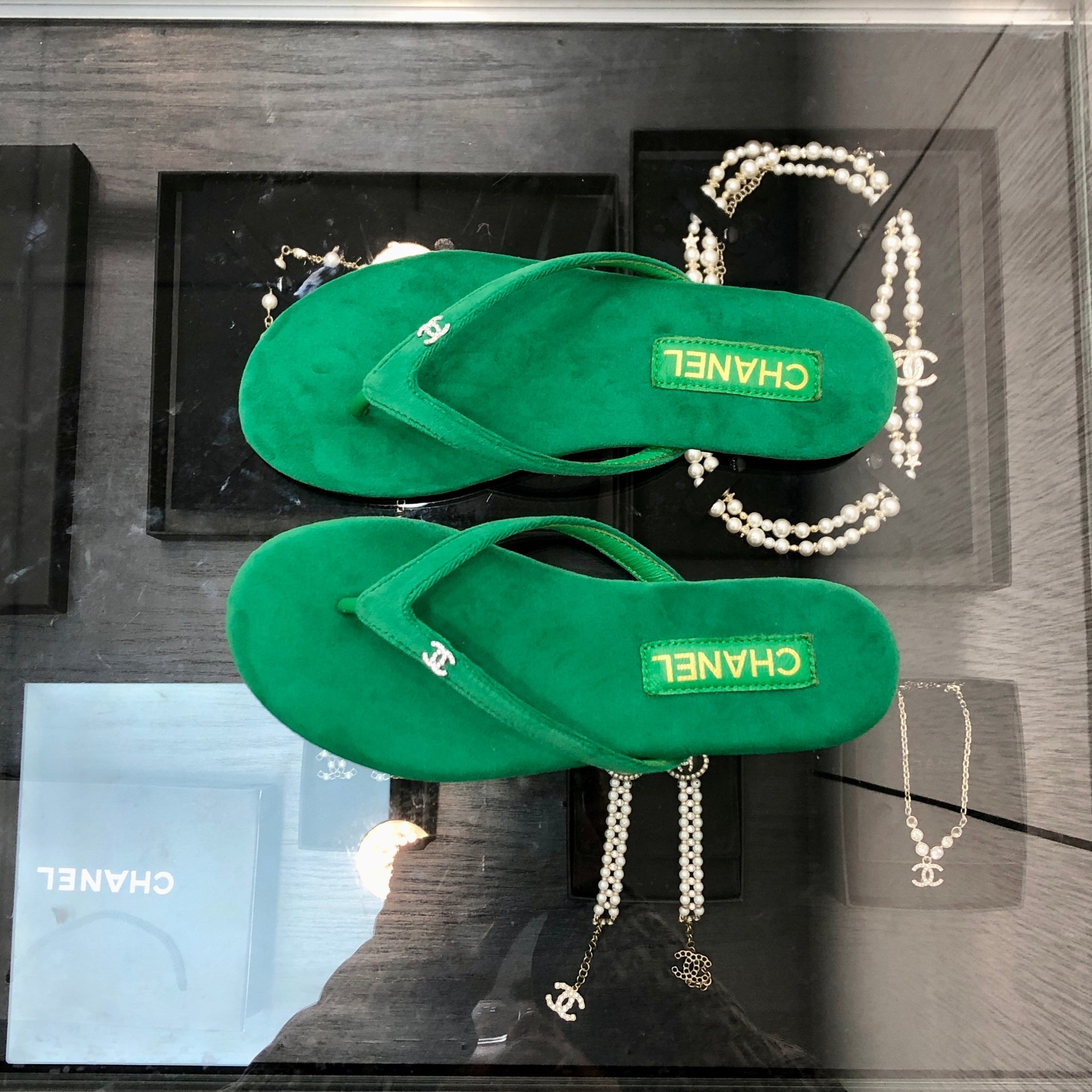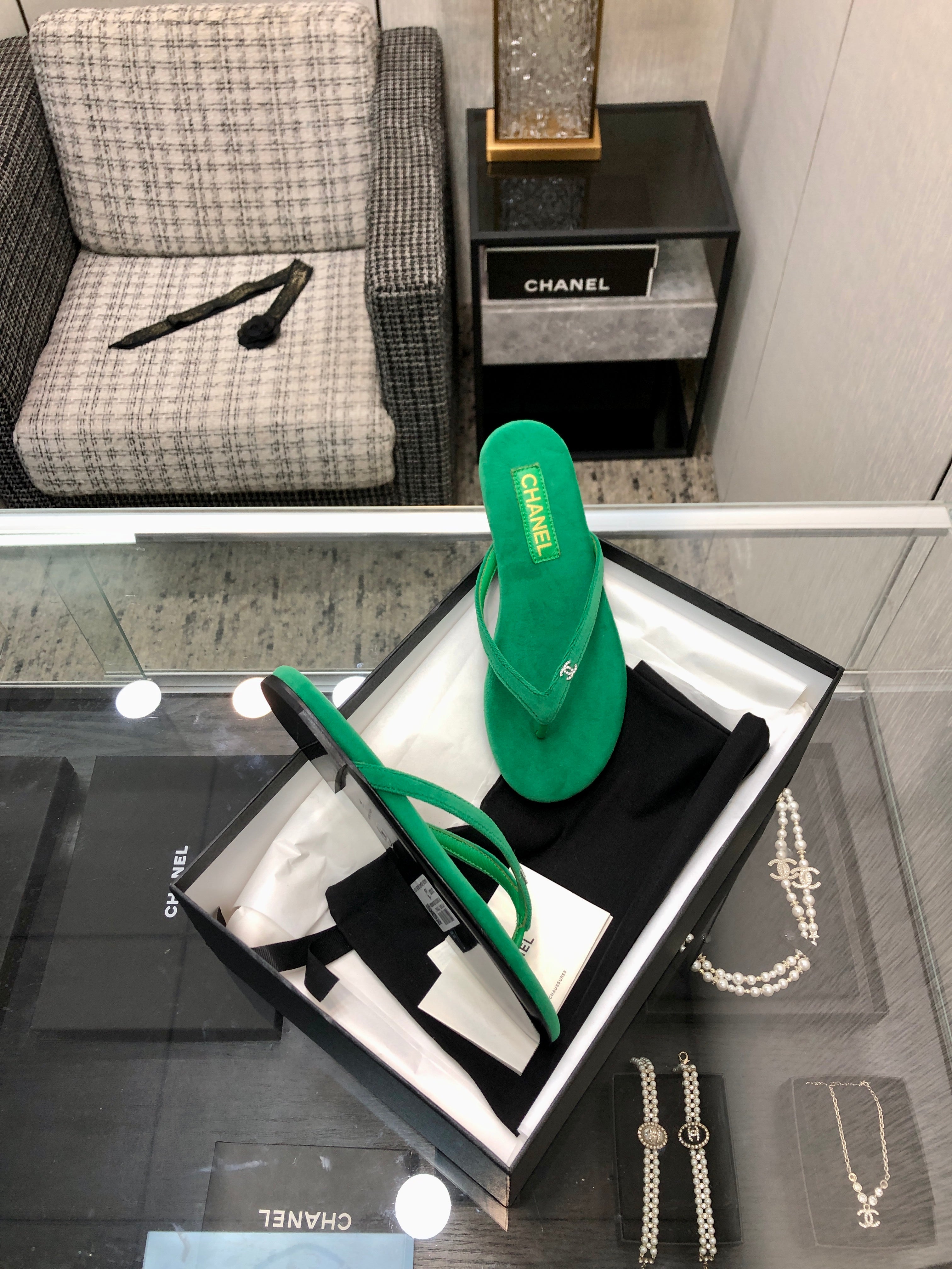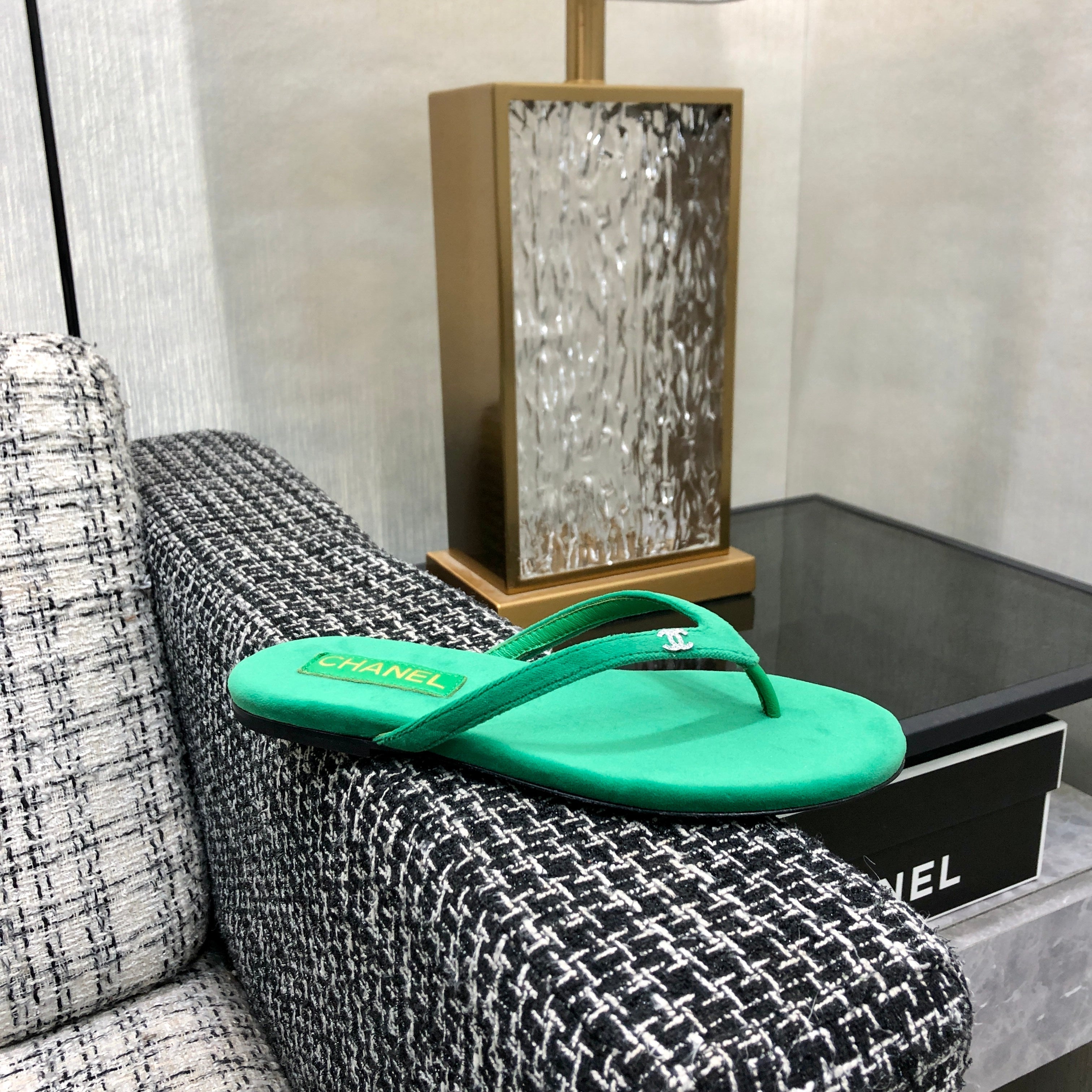 THONG SLIDE IN EMERALD GREEN SUEDE