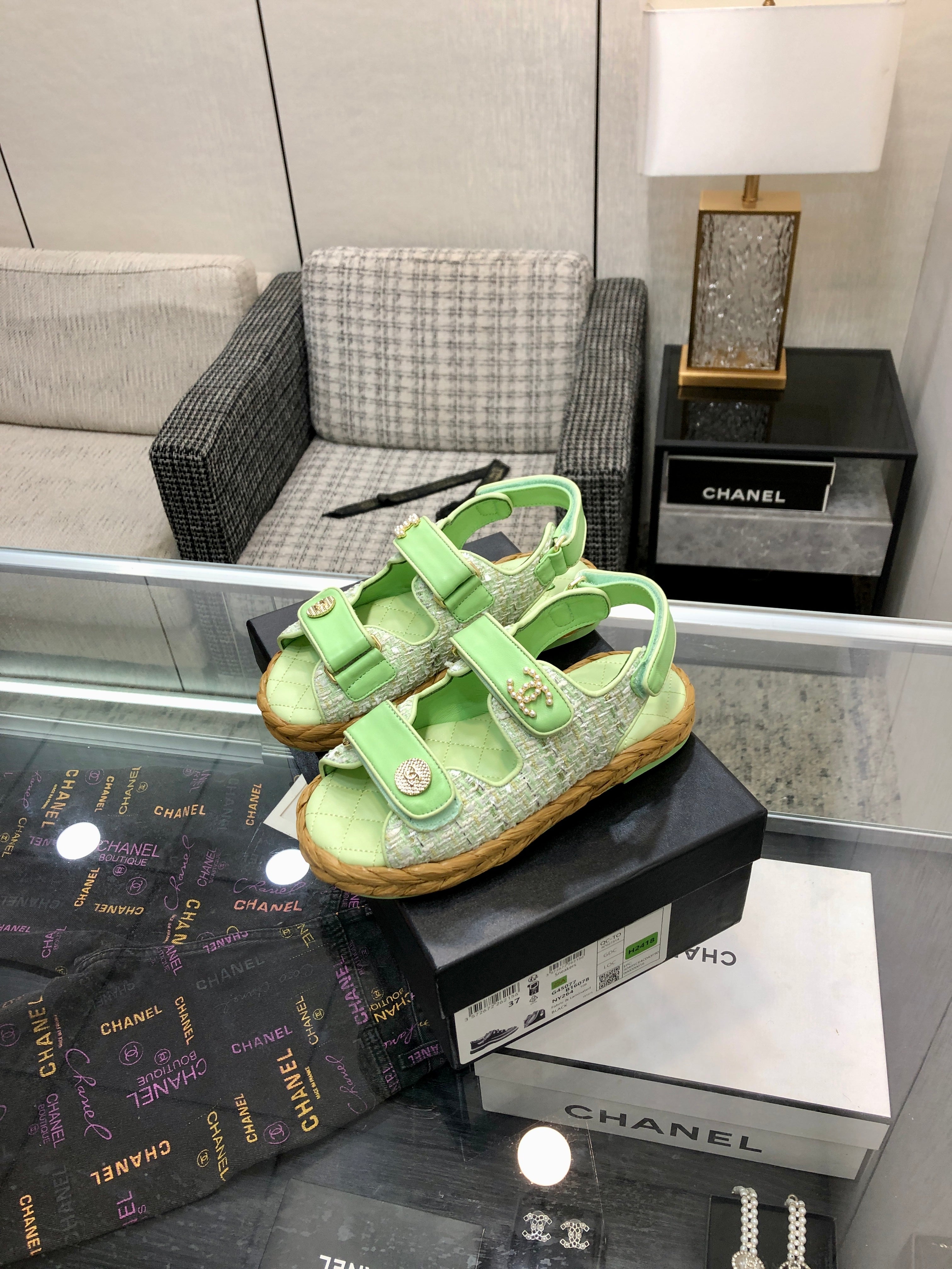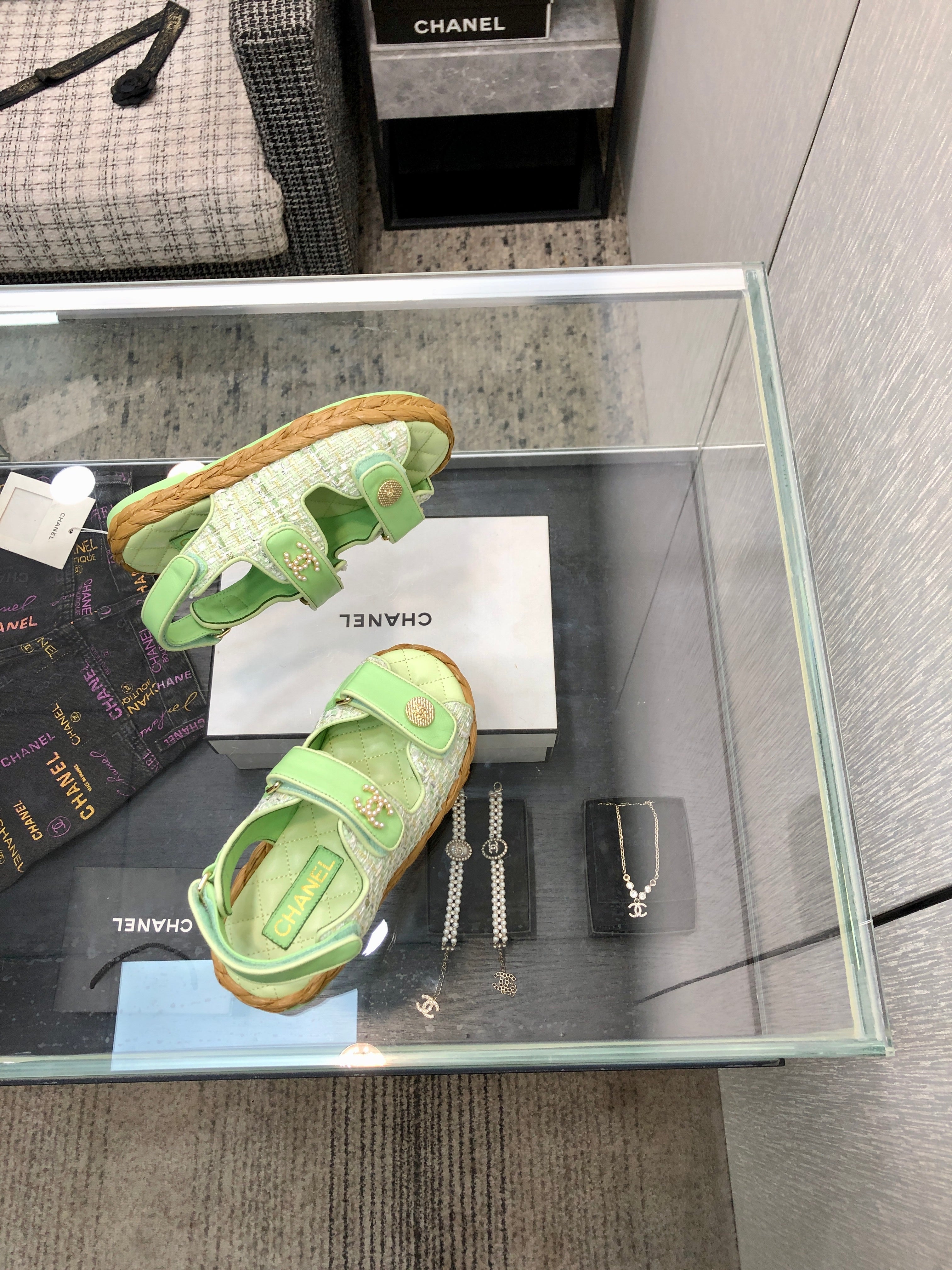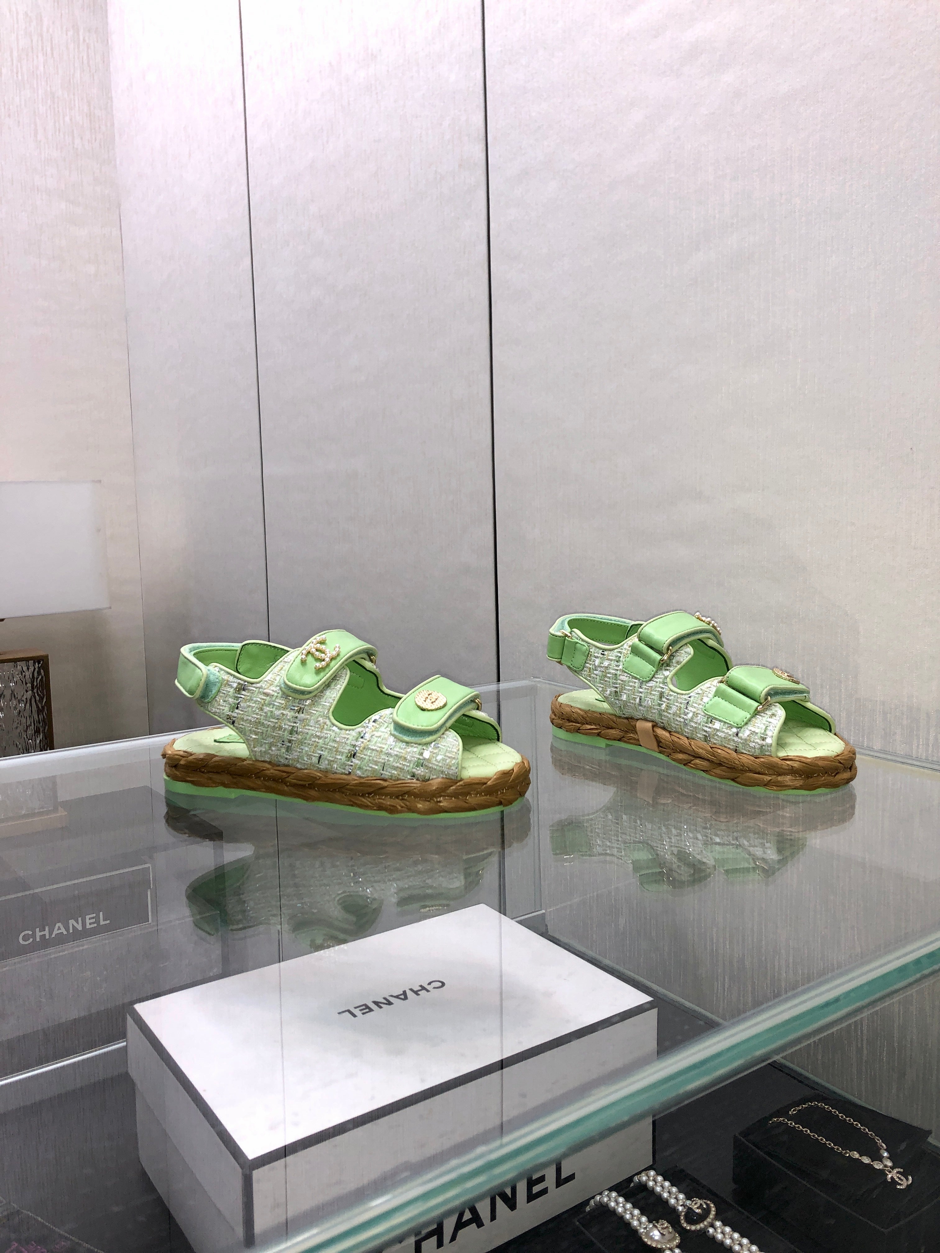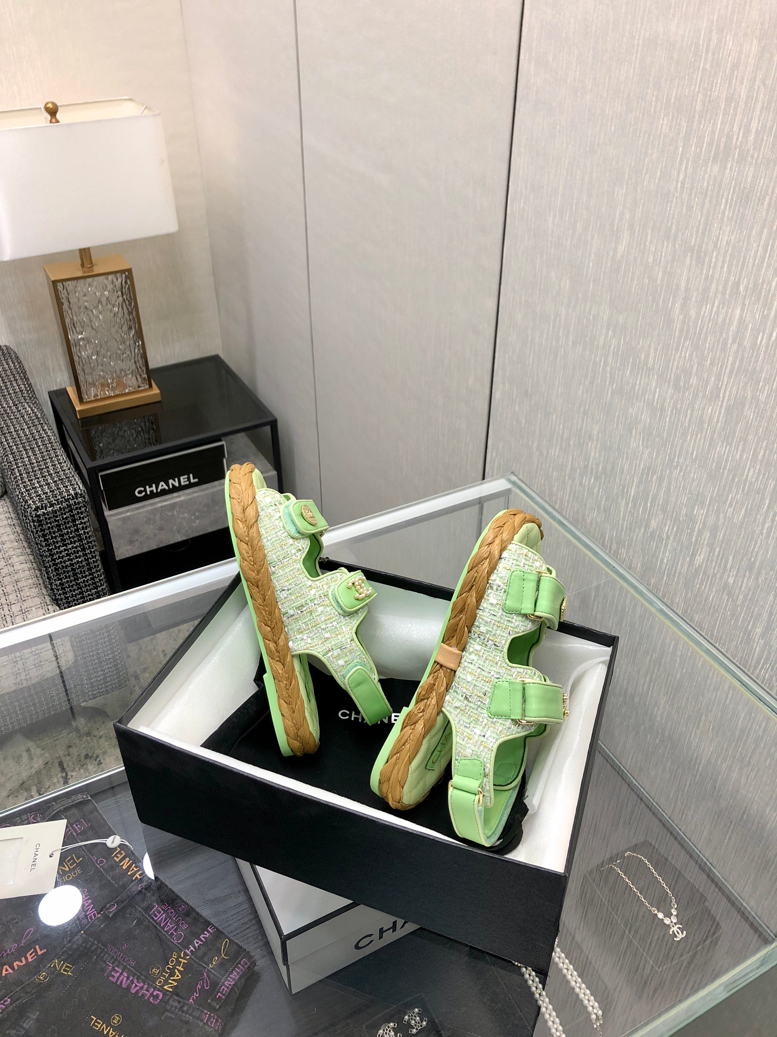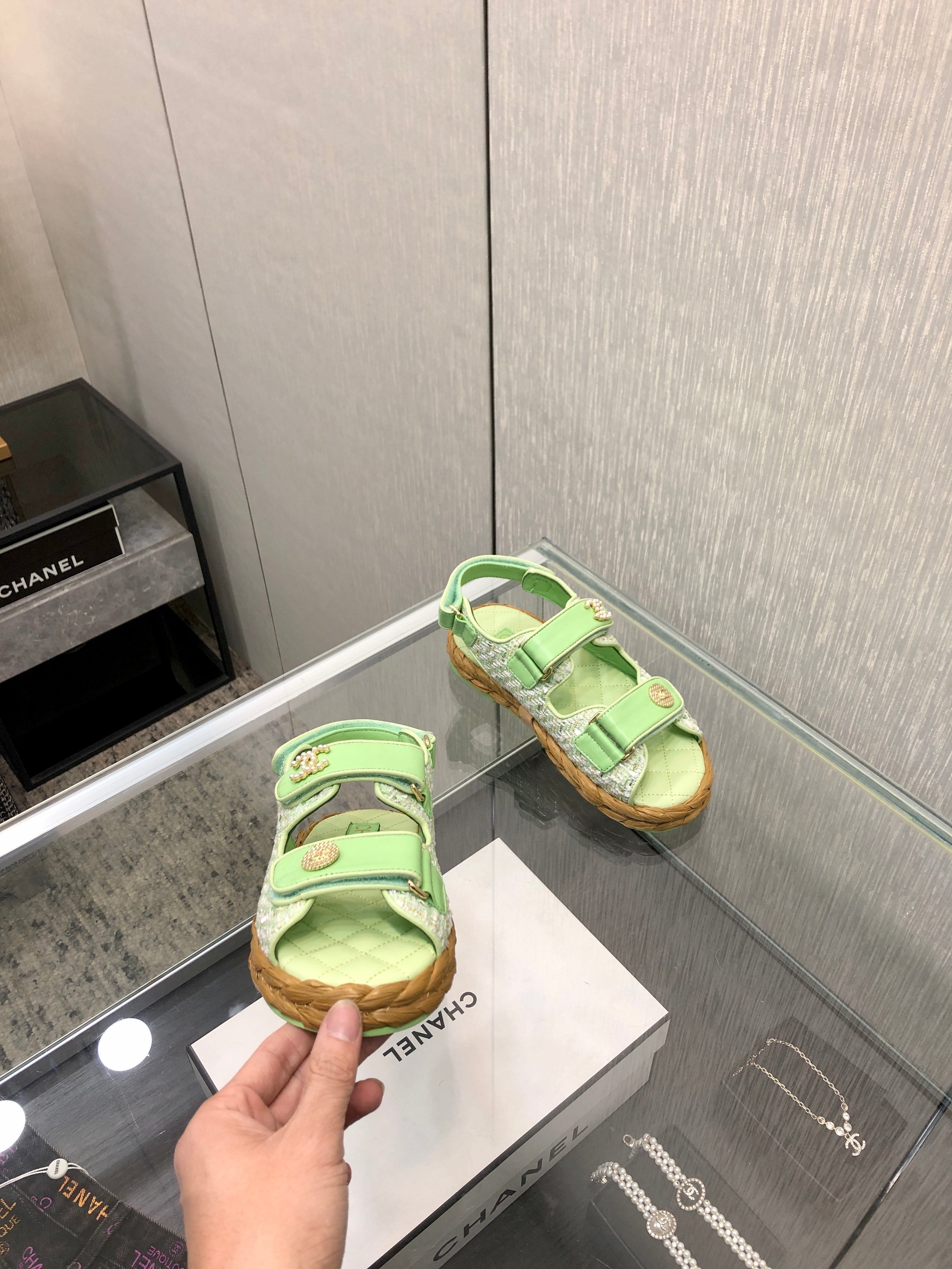 VELCRO SANDALS IN GREEN PASTEL LAMBSKIN AND TWEED FABRIC