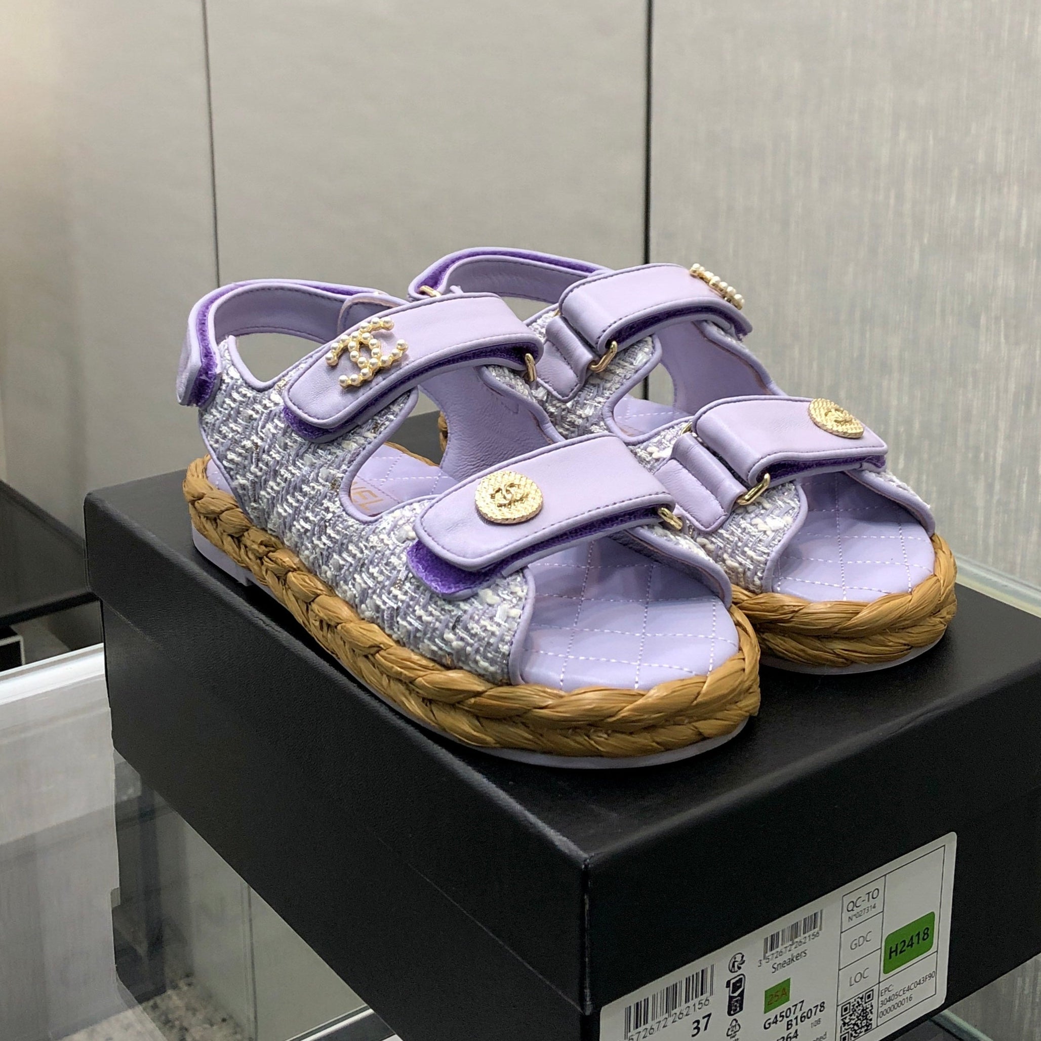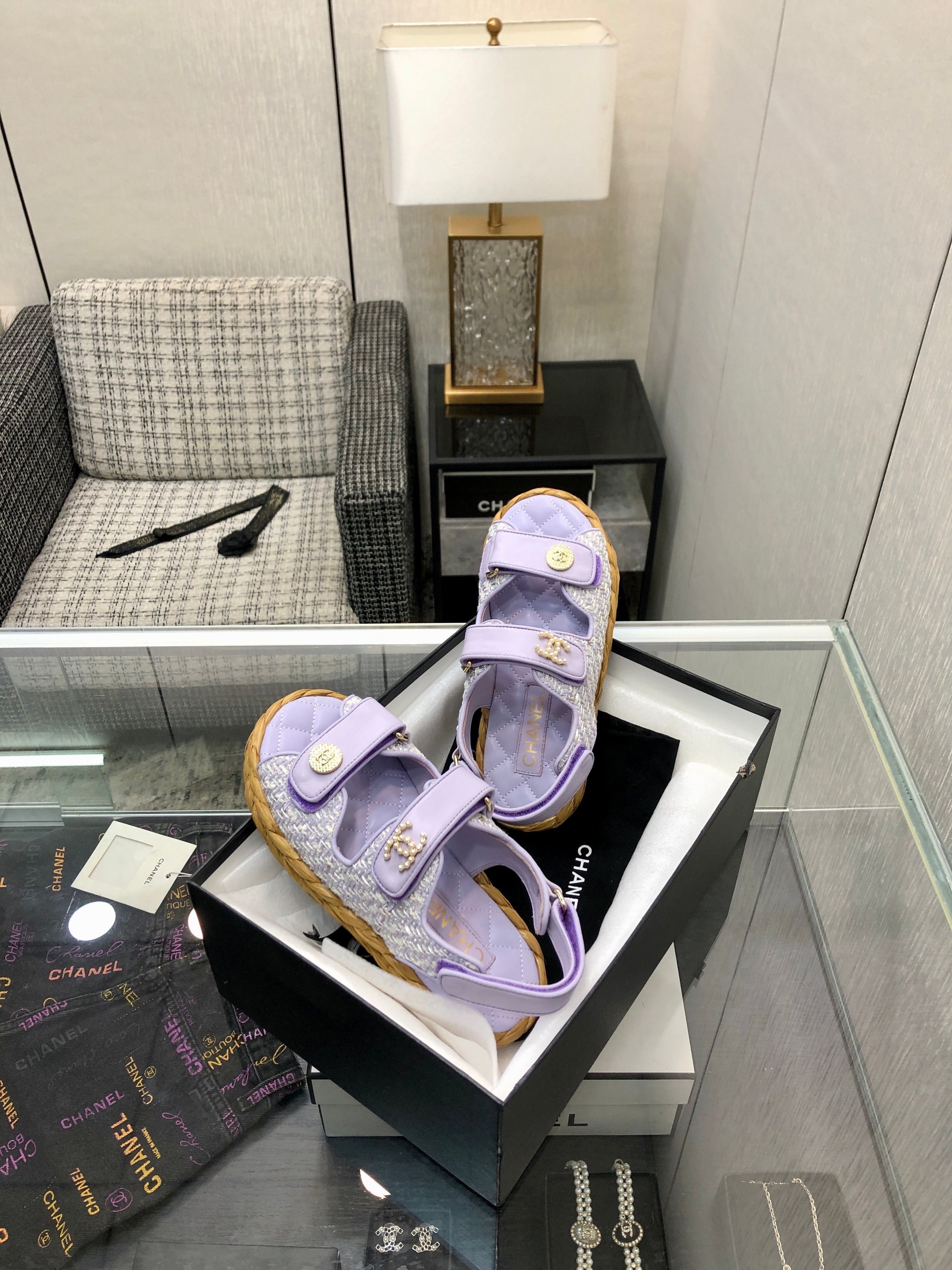 VELCRO SANDALS IN PALE PURPLE LAMBSKIN AND TWEED FABRIC