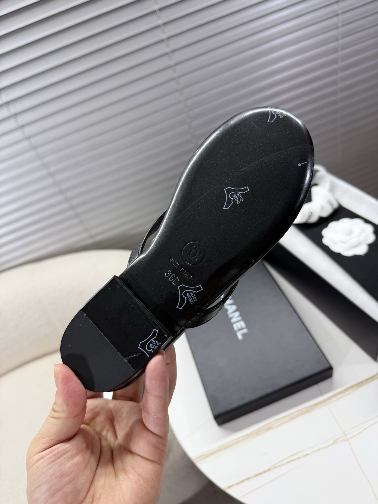 CC 25SS Sandals 5cm Three Straps Black Calfskin 338327