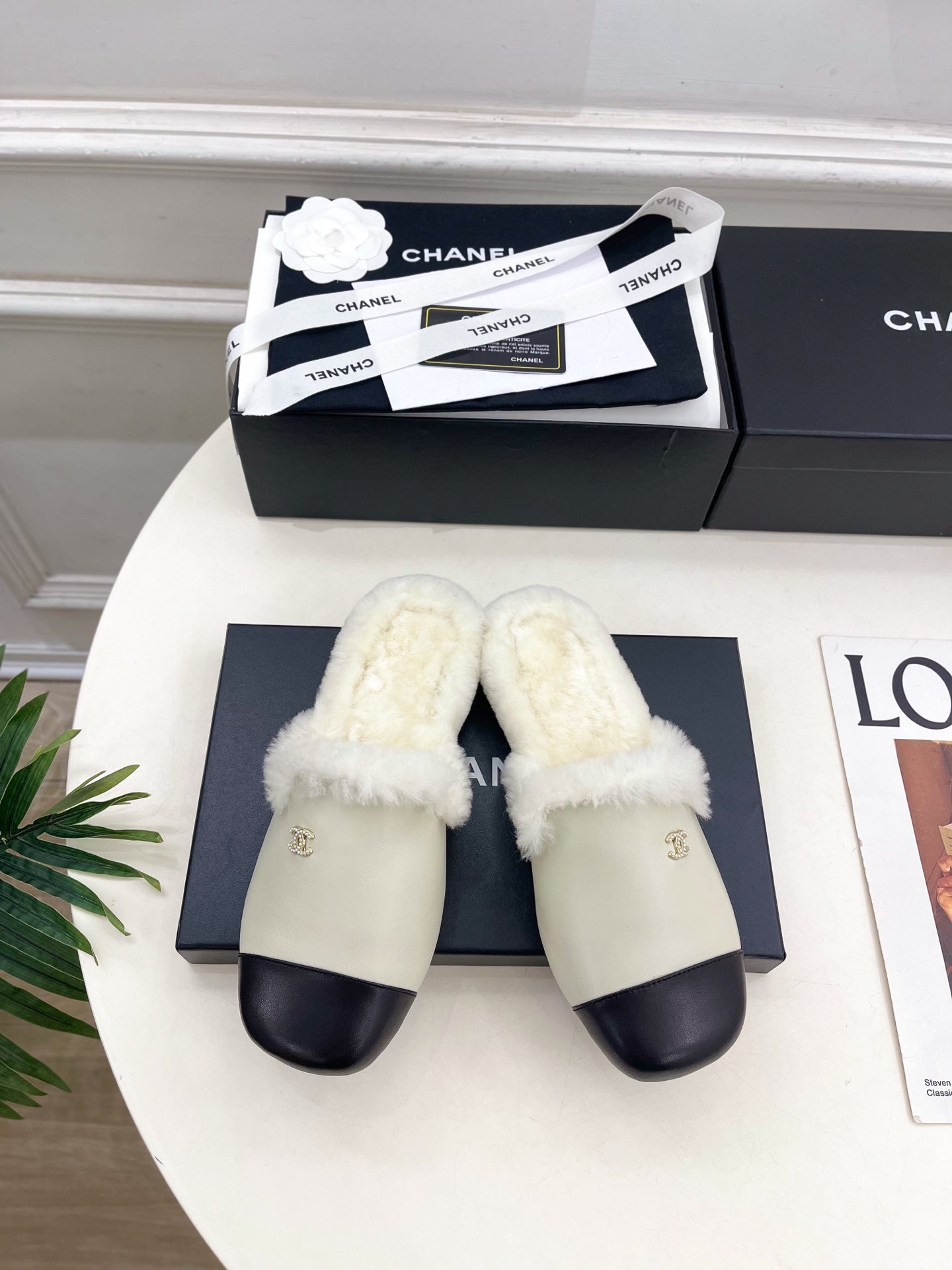 CC 26 Shearling Slip-on Loafer Black White Leather Wool 588719