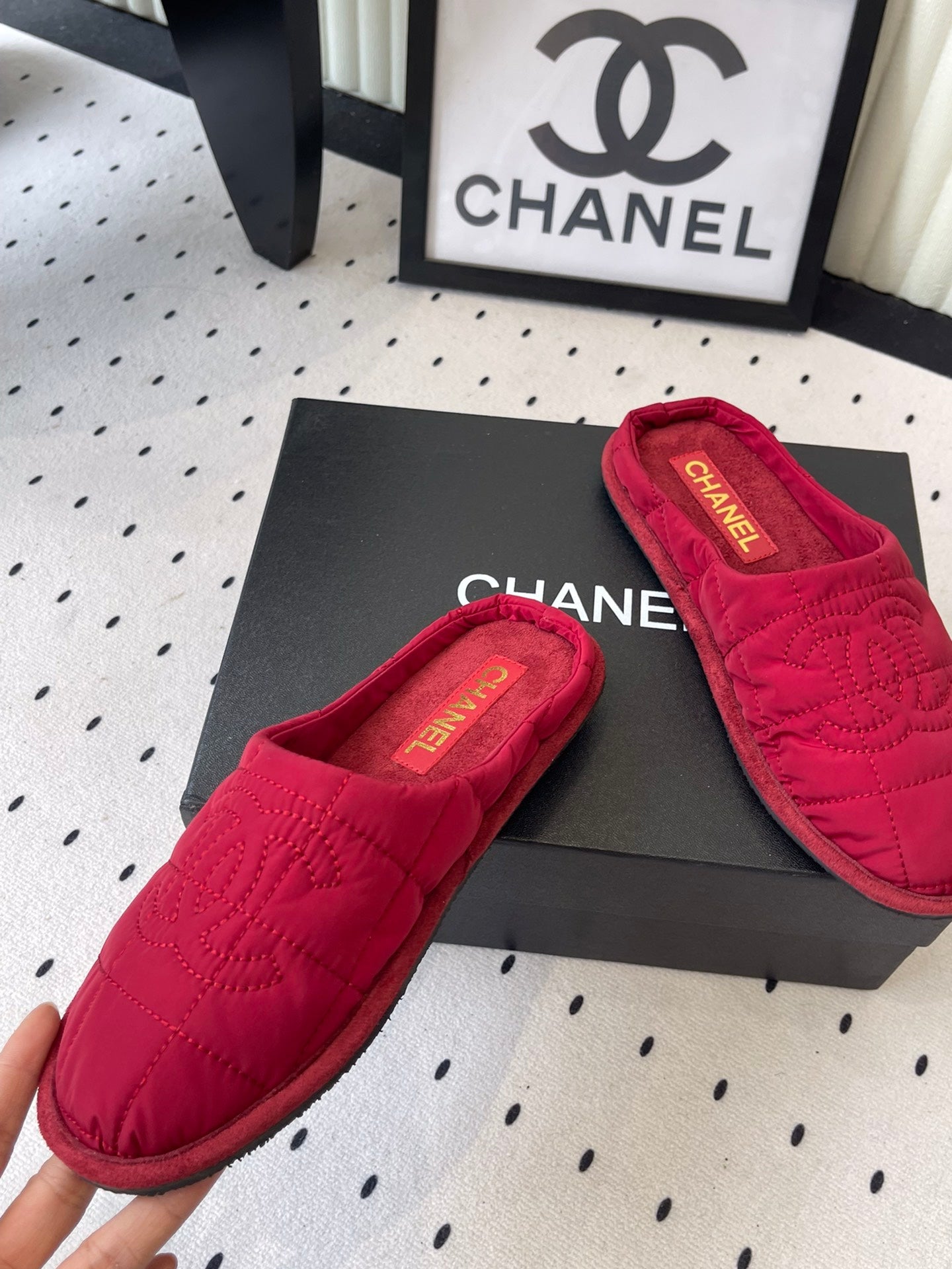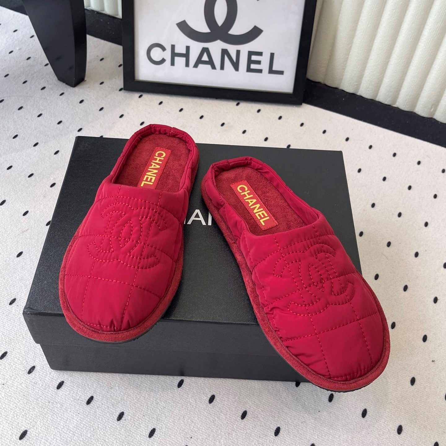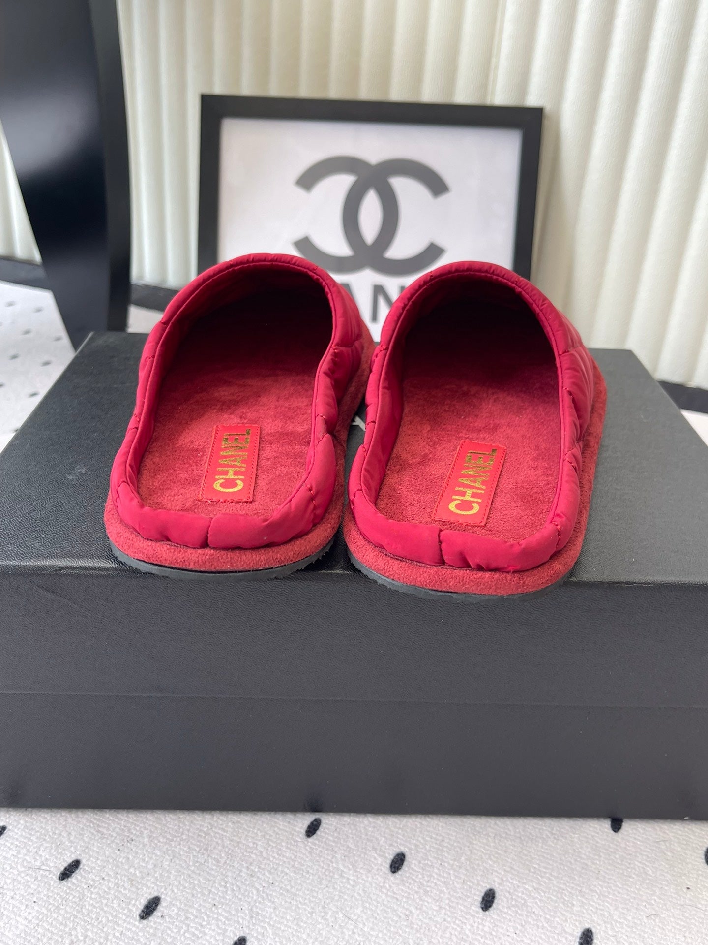 CC New Down-Filled Couple Slippers Red Technical Fabric