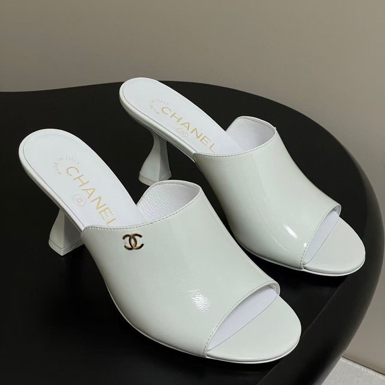 CC 26C Early Spring Camellia Slide White Patent Leather