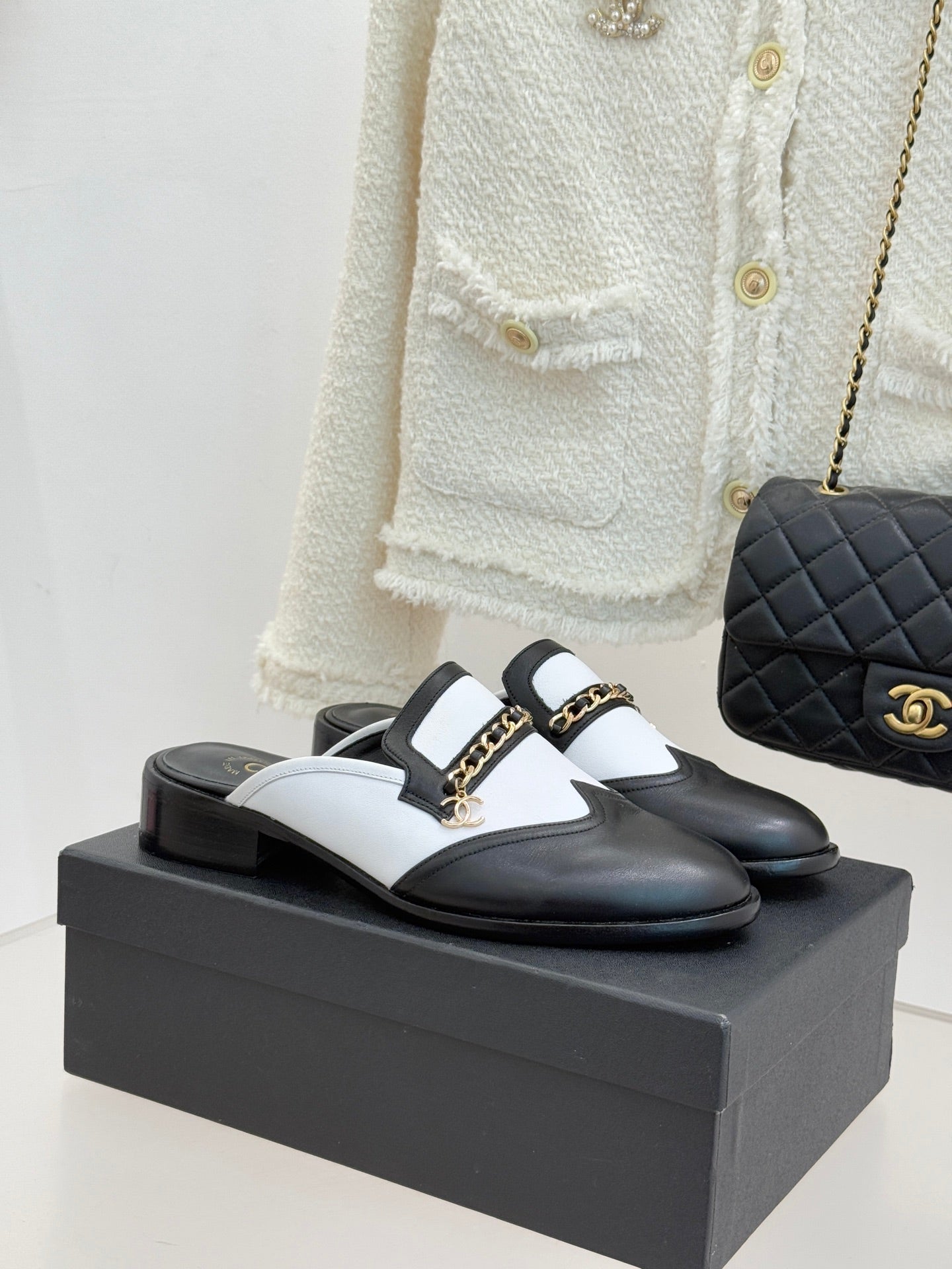 CC Cruise 2025/26 Mules Black Light Beige Calfskin 570316