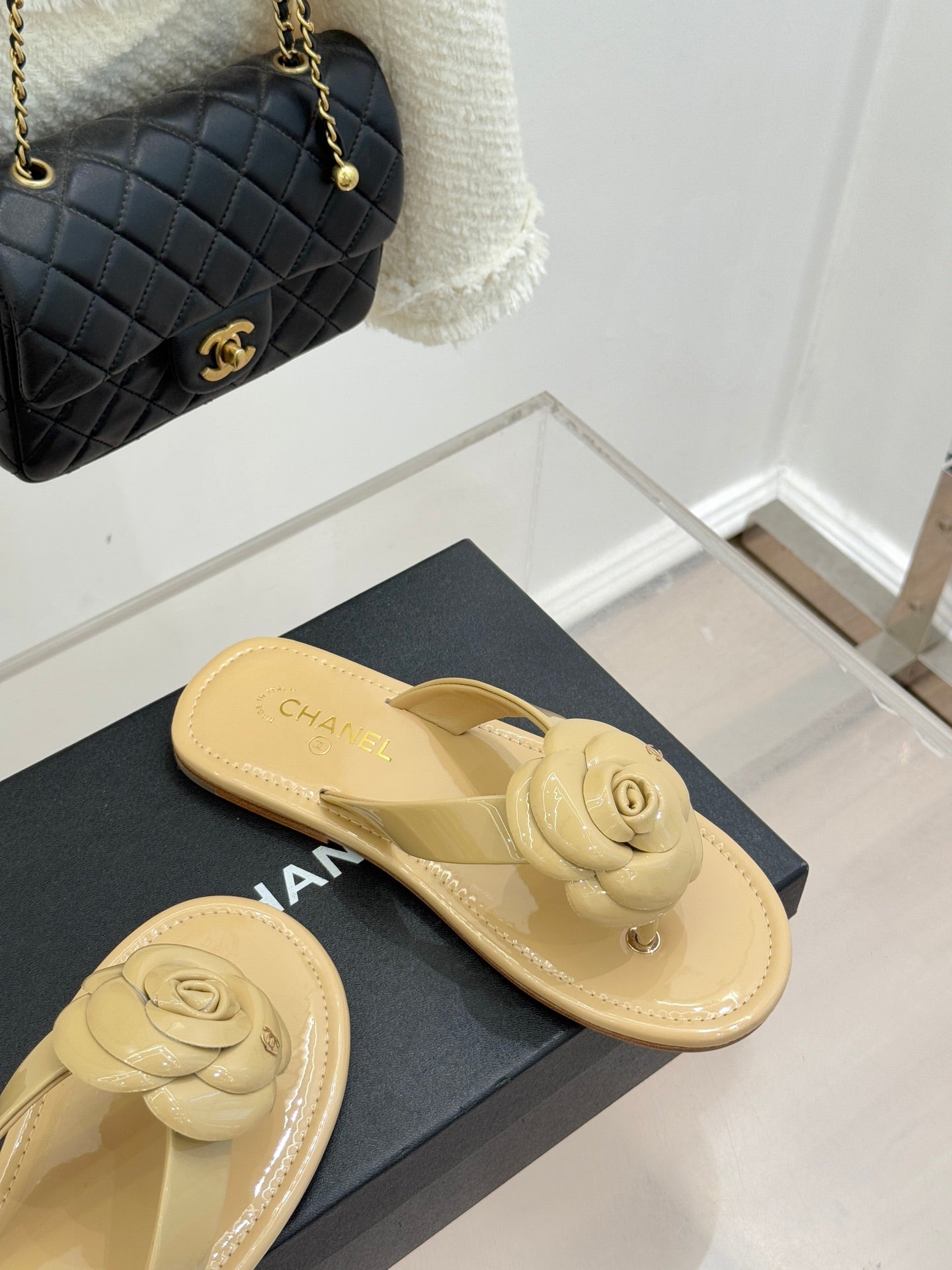 CC 26C Early Spring Camellia Slide Beige Patent Leather