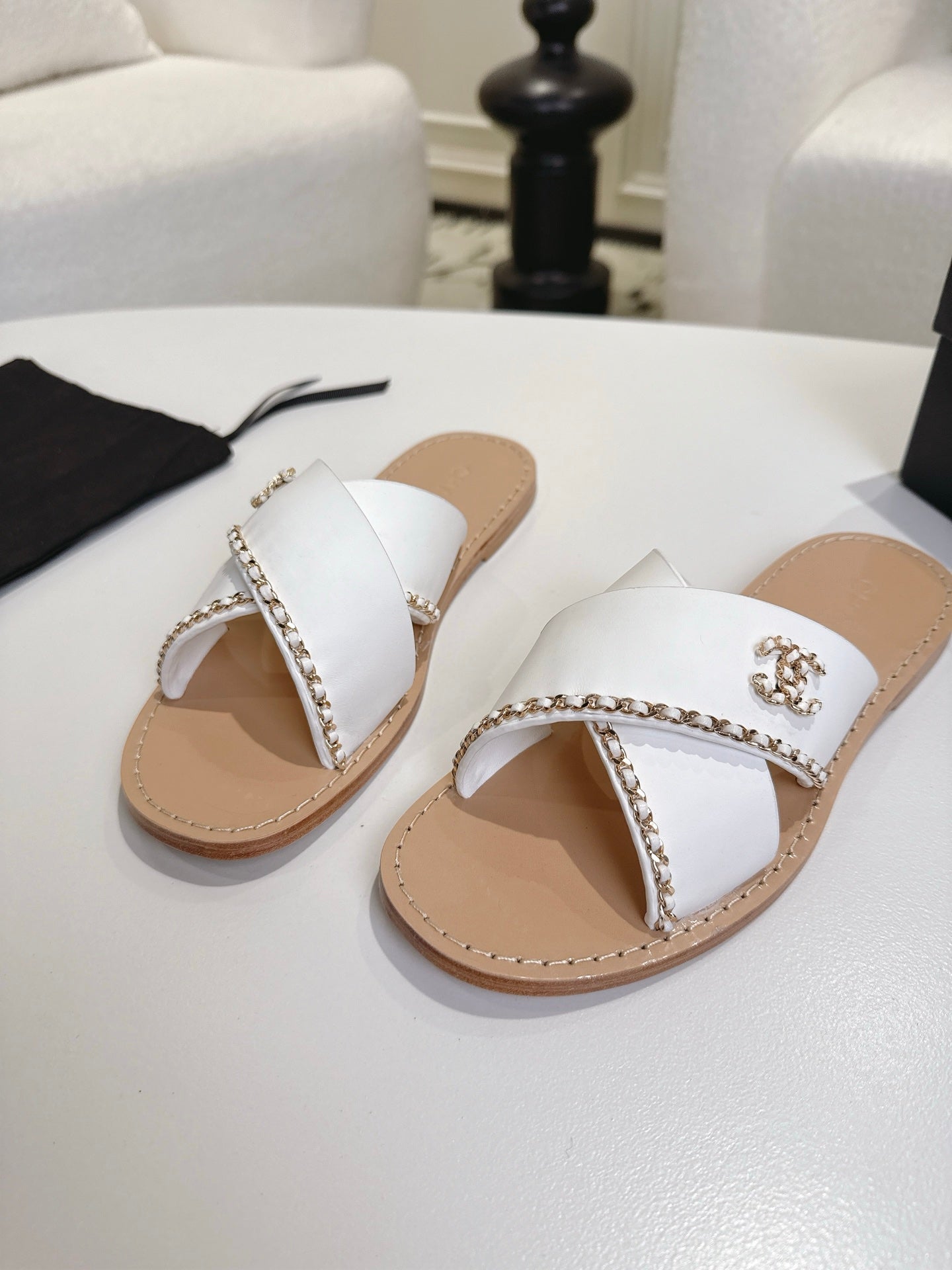 CC 25s Double C Buckle Half-Length Slippers White Calfskin 557700