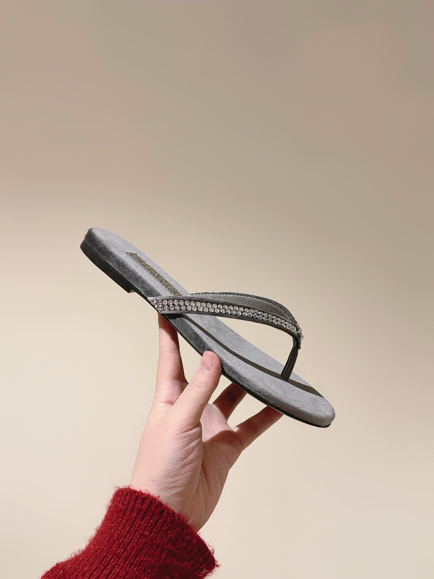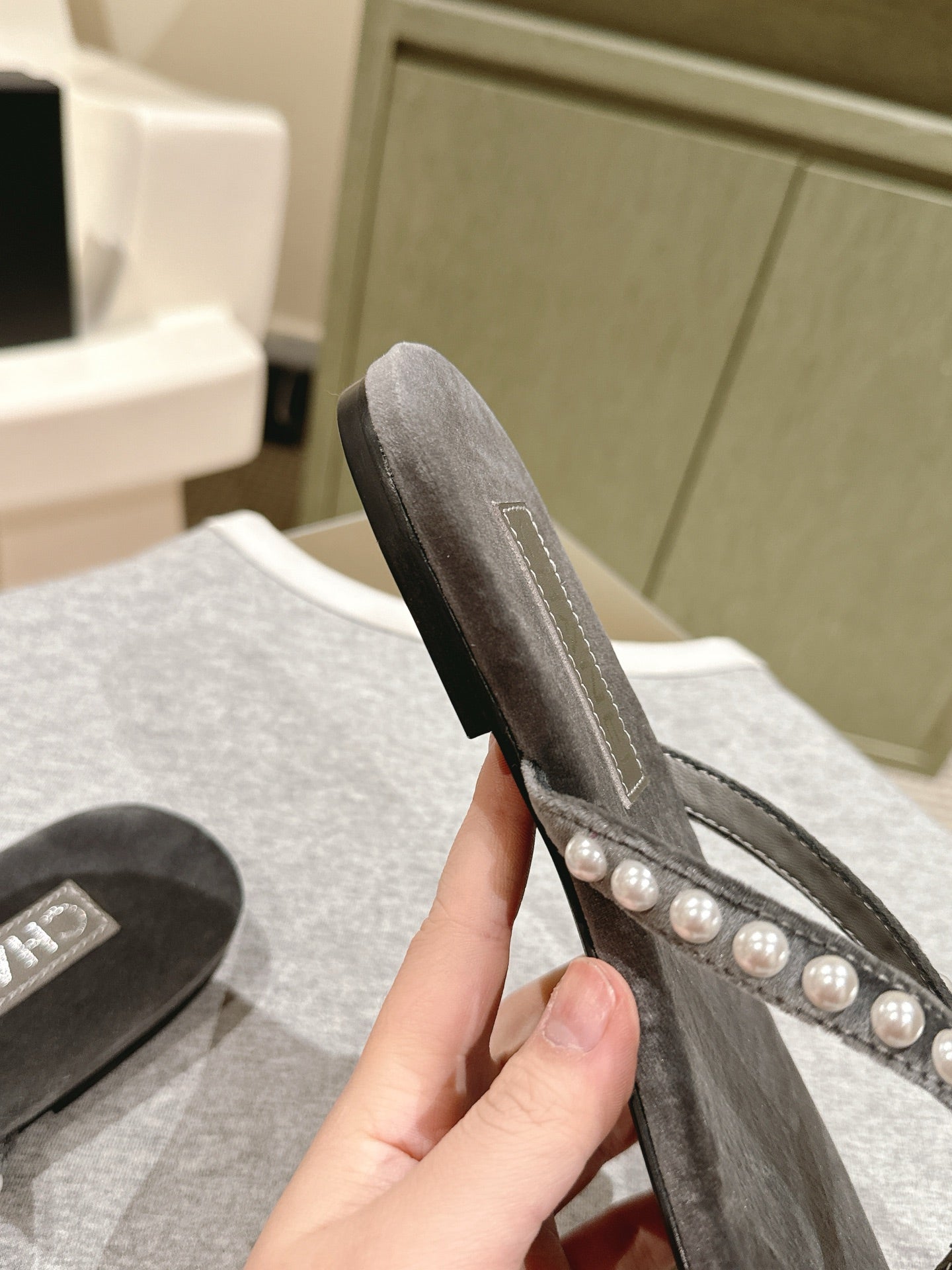 CC 25ss Pearl Thong Sandal Black Mix Grey Velvet 461640