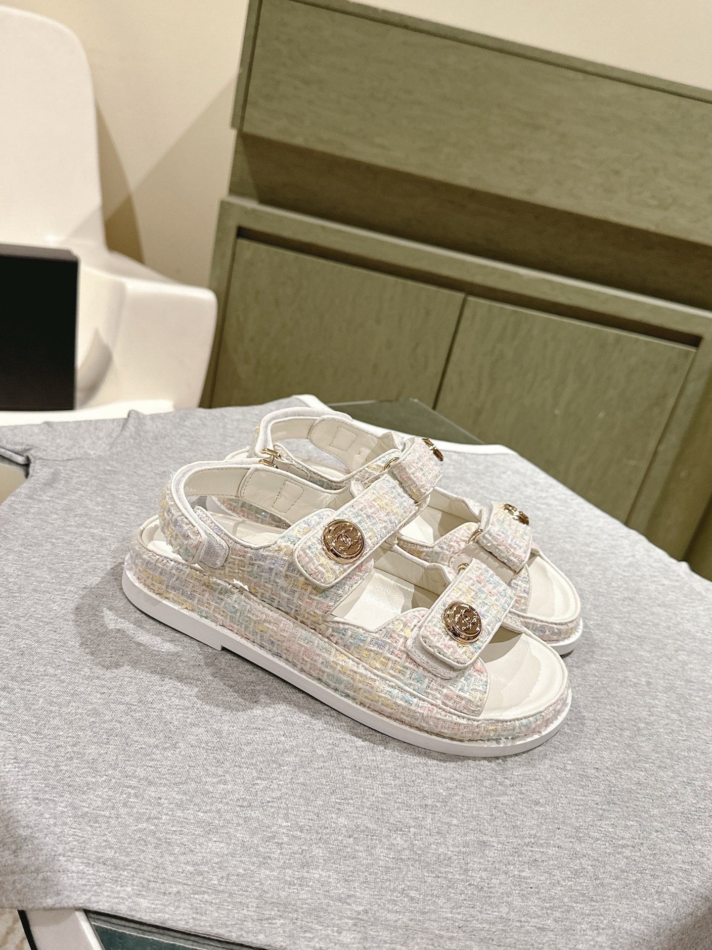 CC 25ss Espadrille Sandals 85mm Light Blue Colorful Tweed Cowhide 462244