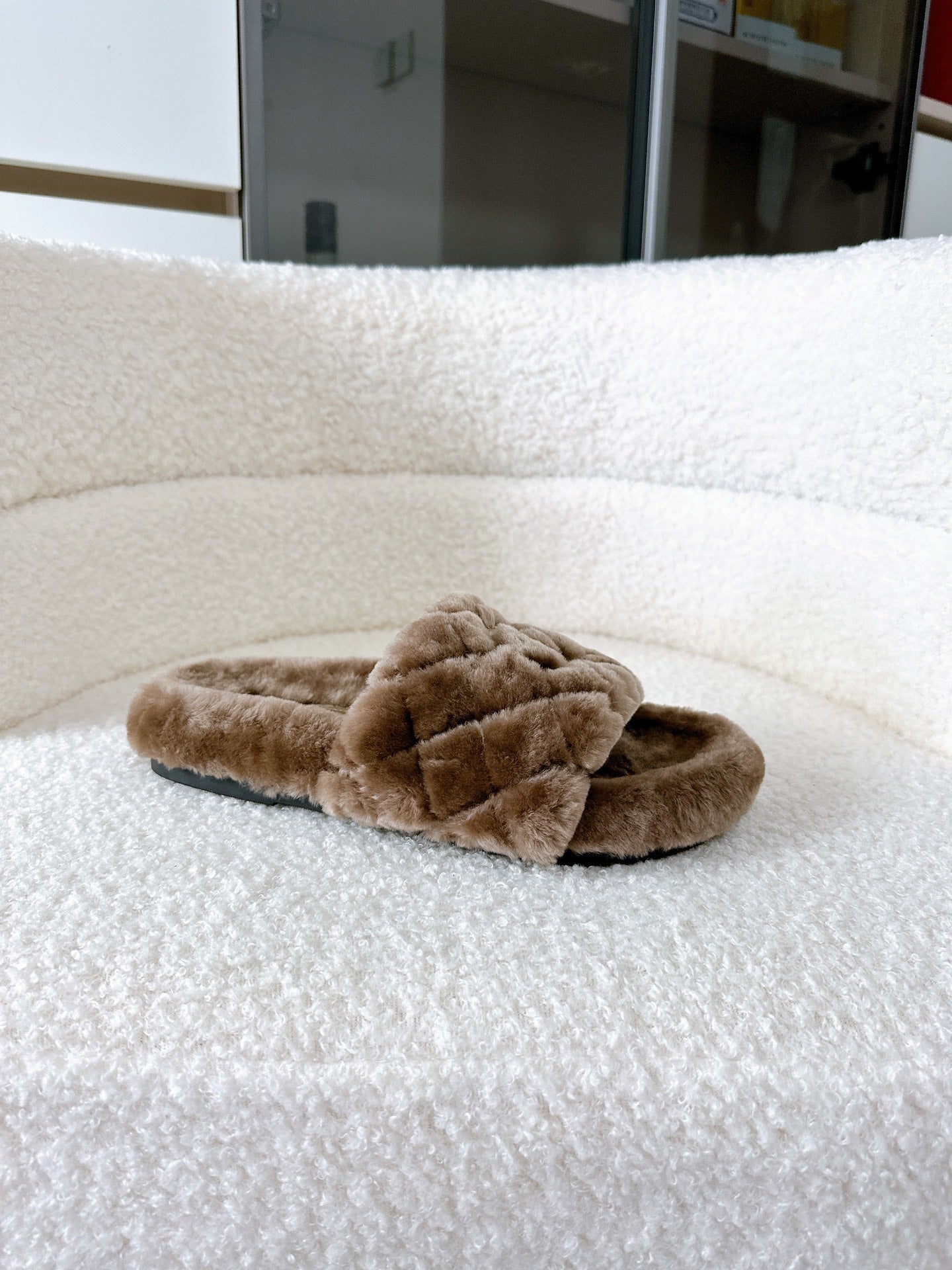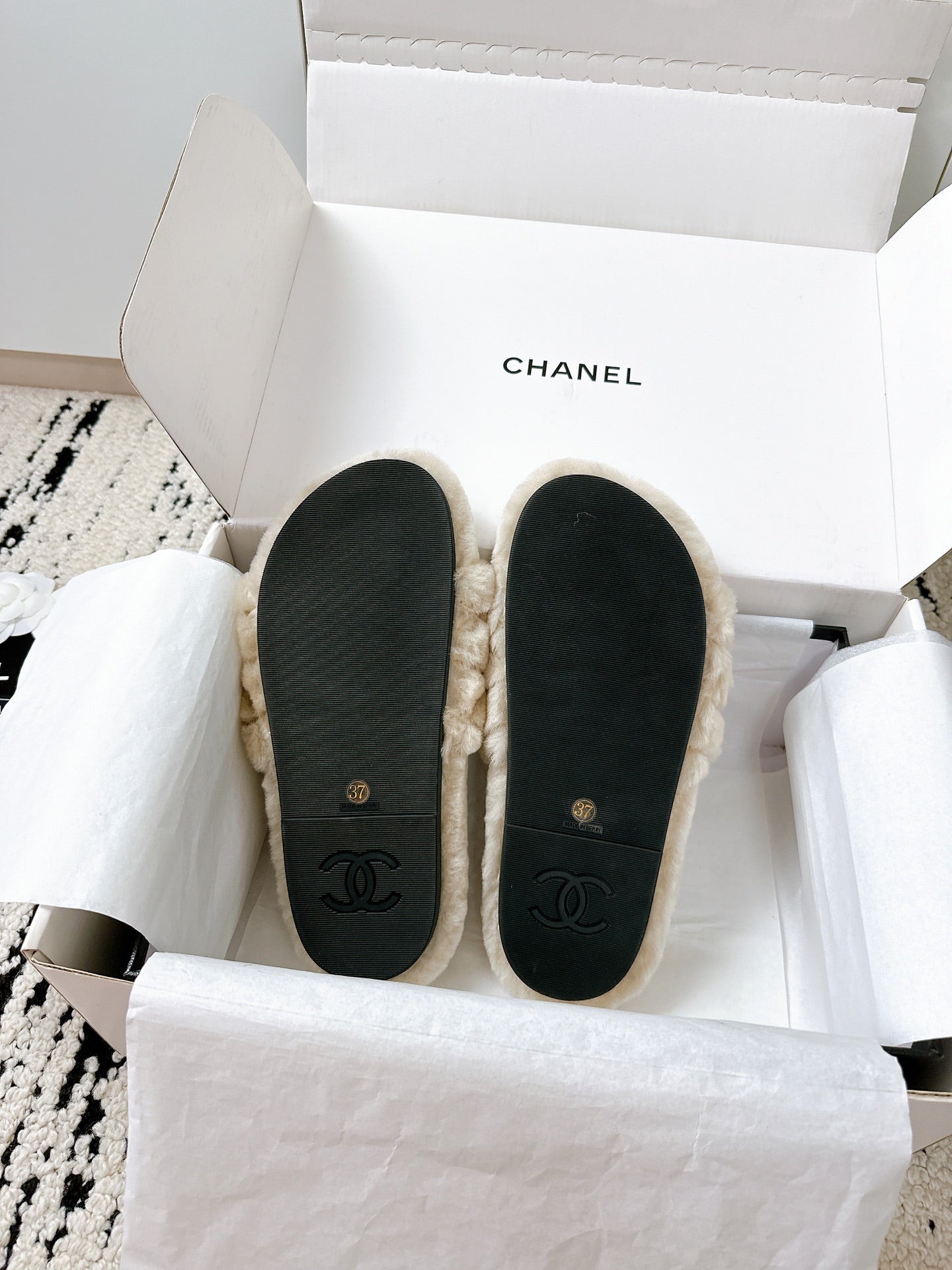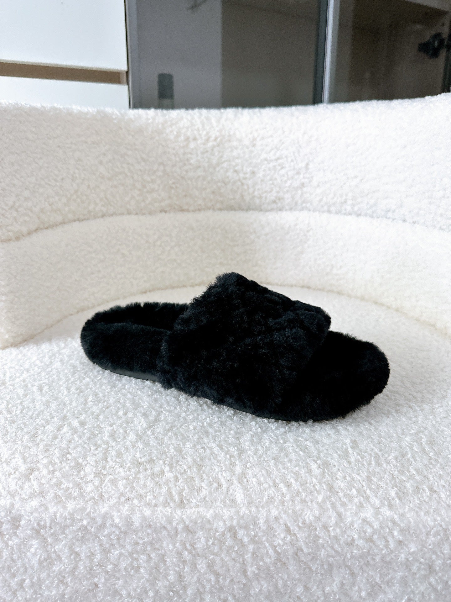 CC slipper double C rhinestone buckle white wool 512052