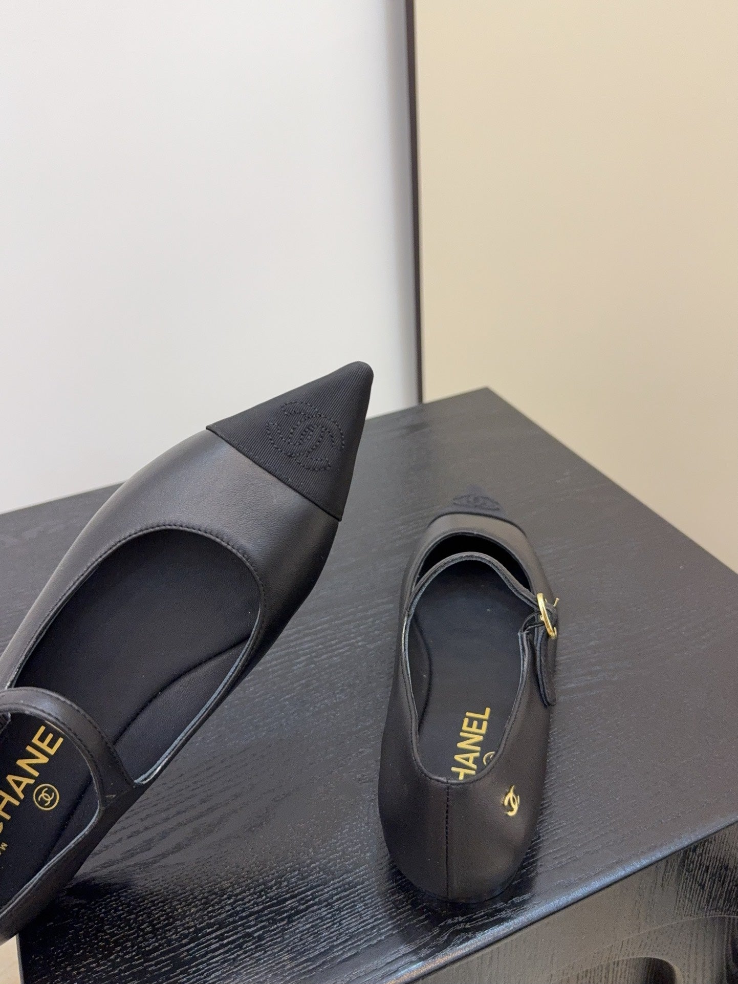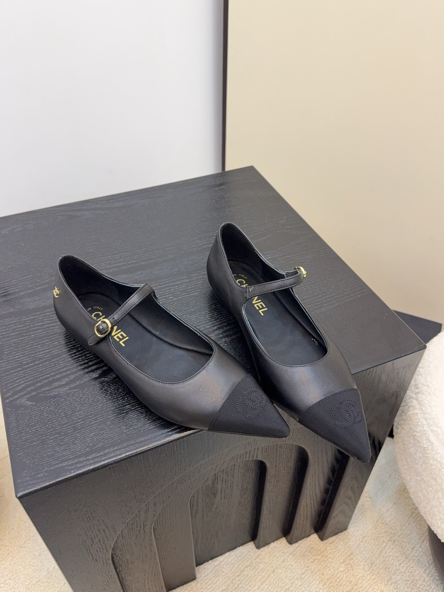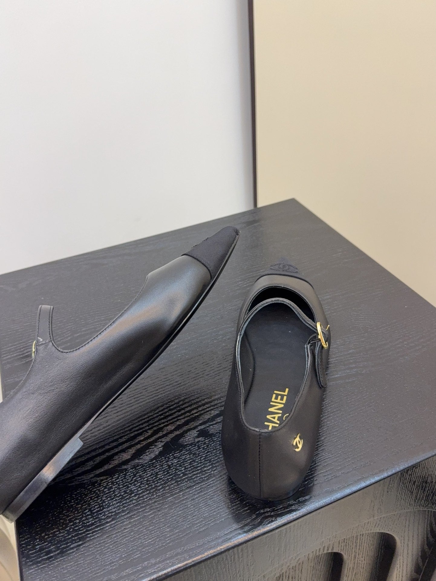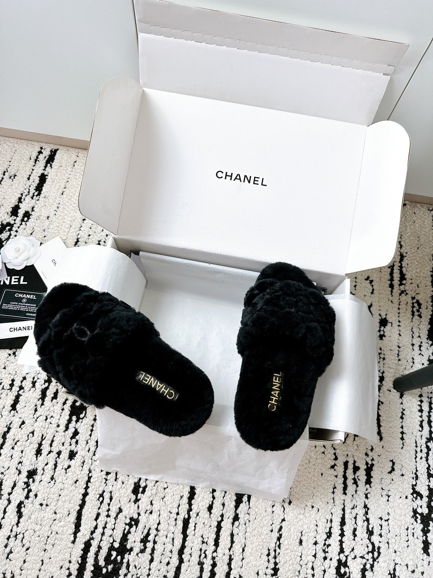 CC slipper double C rhinestone buckle black wool 512051