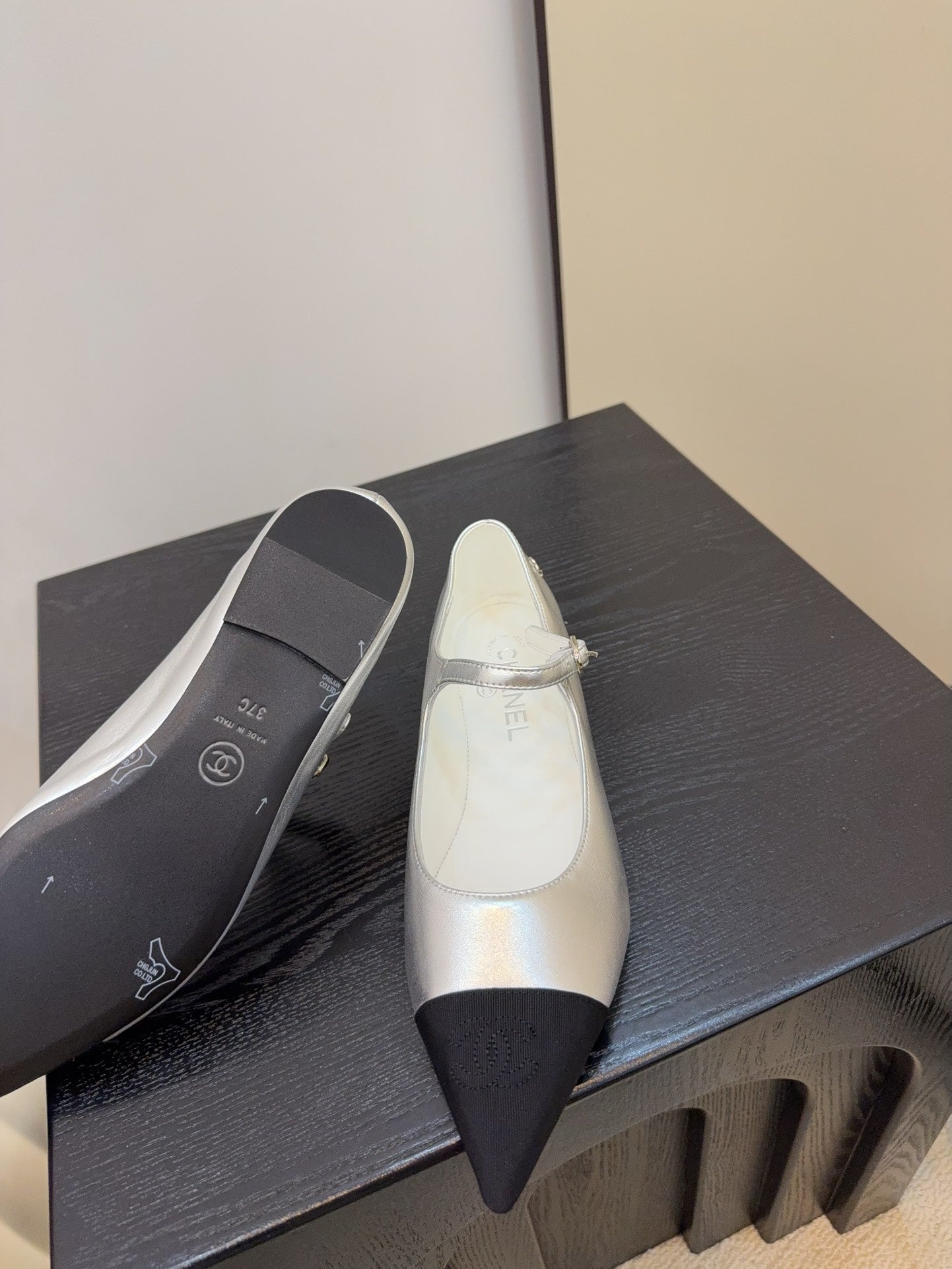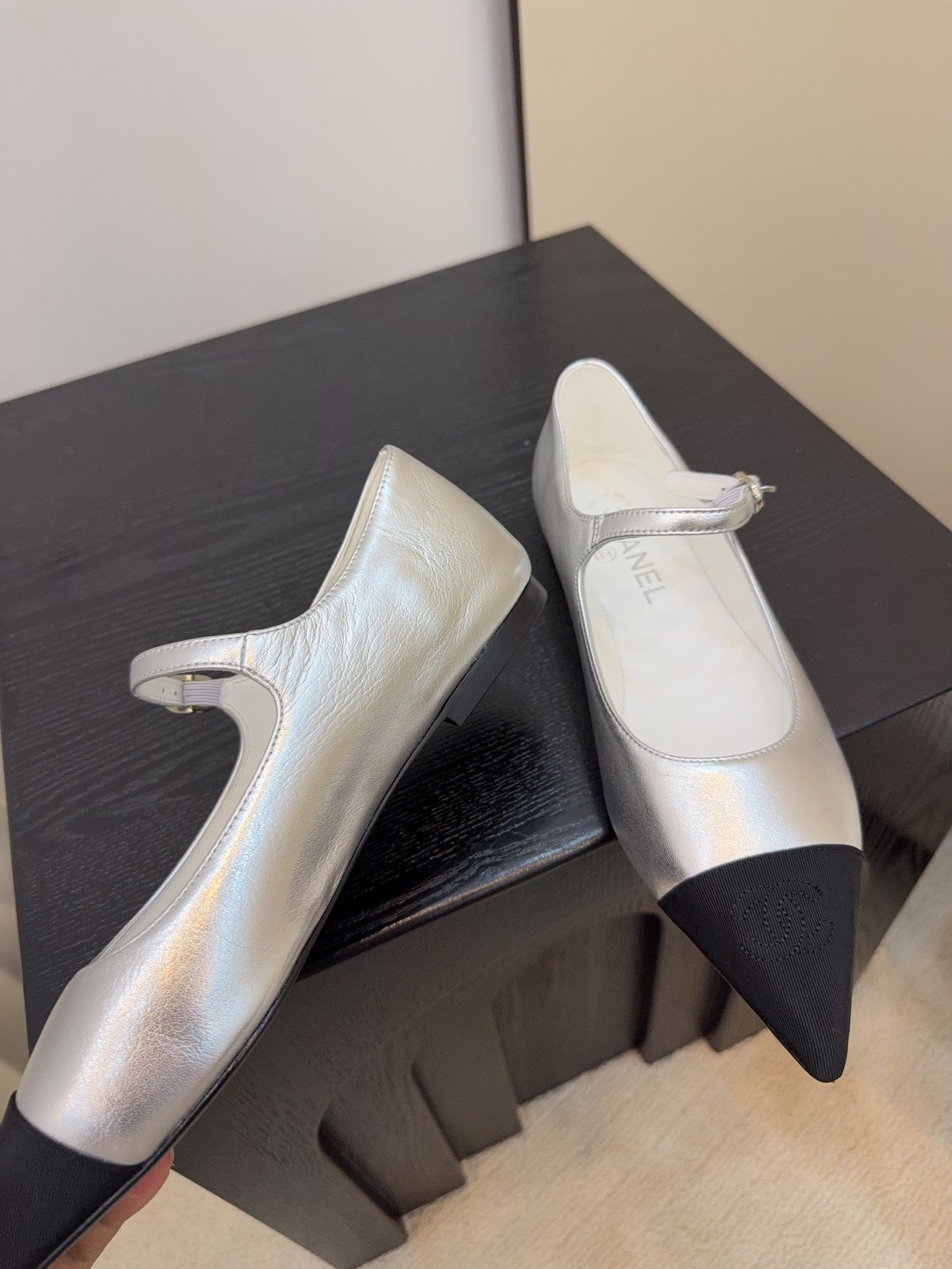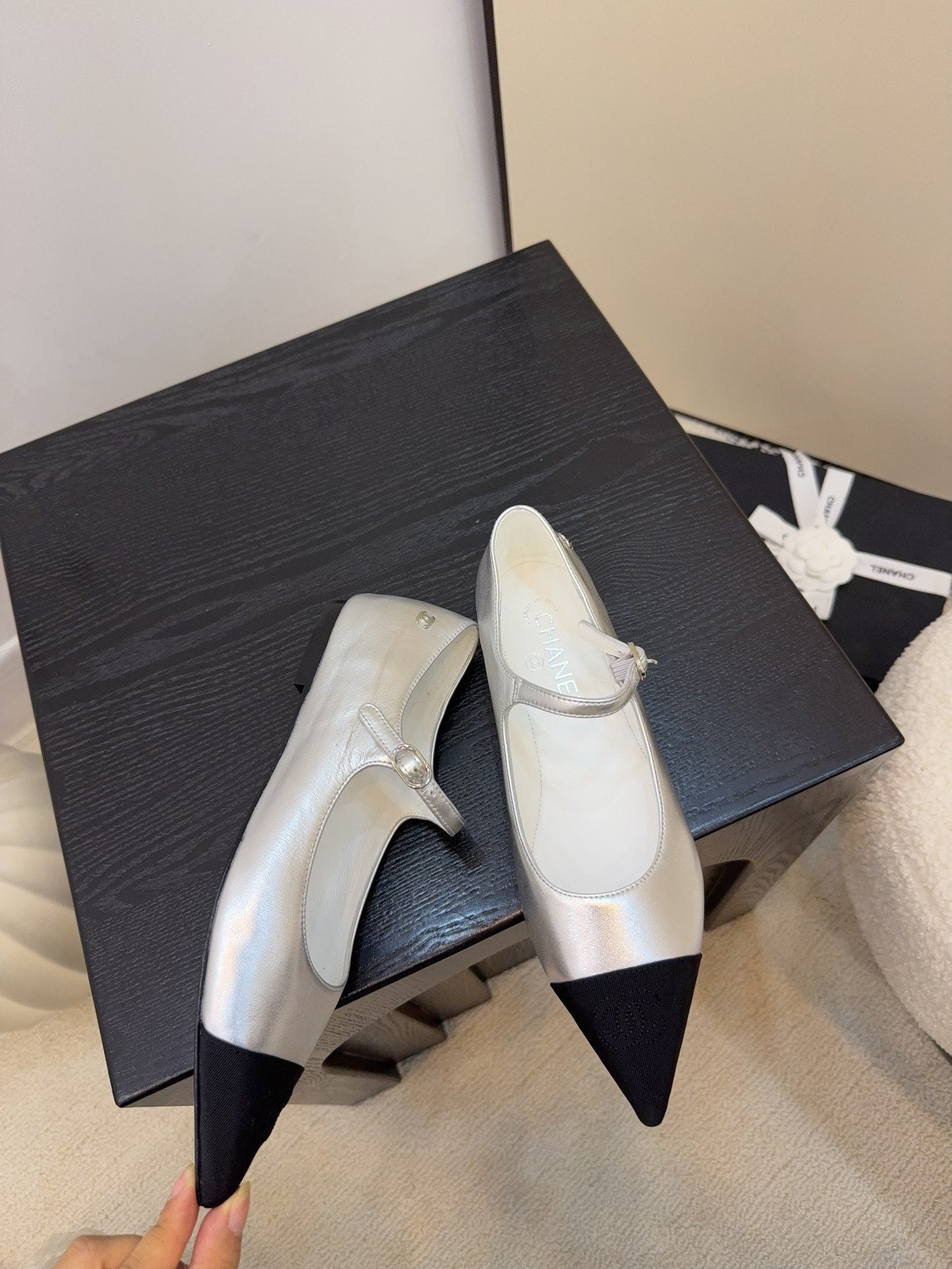 CD FW Mary Janes Sliver Metalic Lambskin & Grosgrain 505039