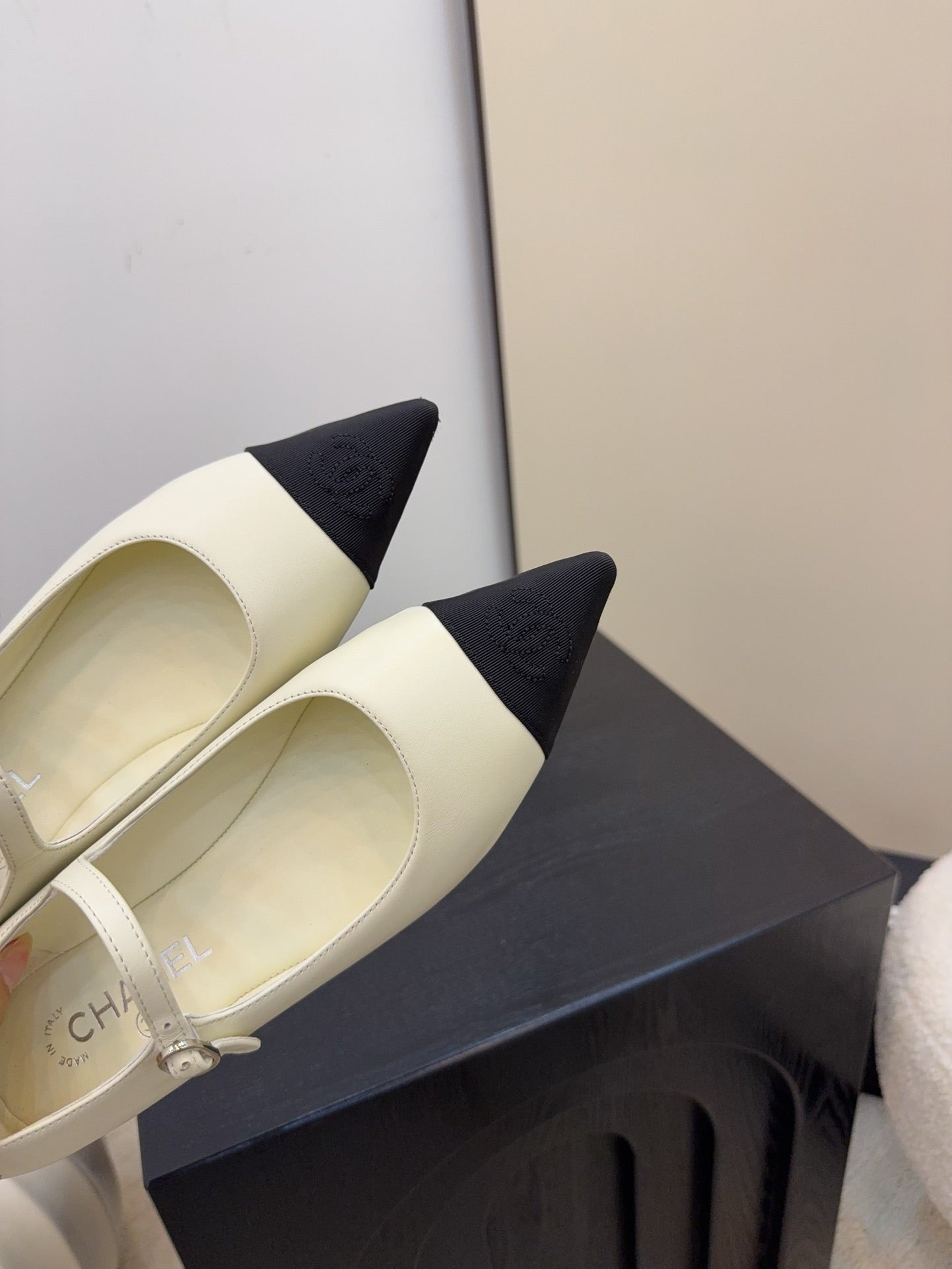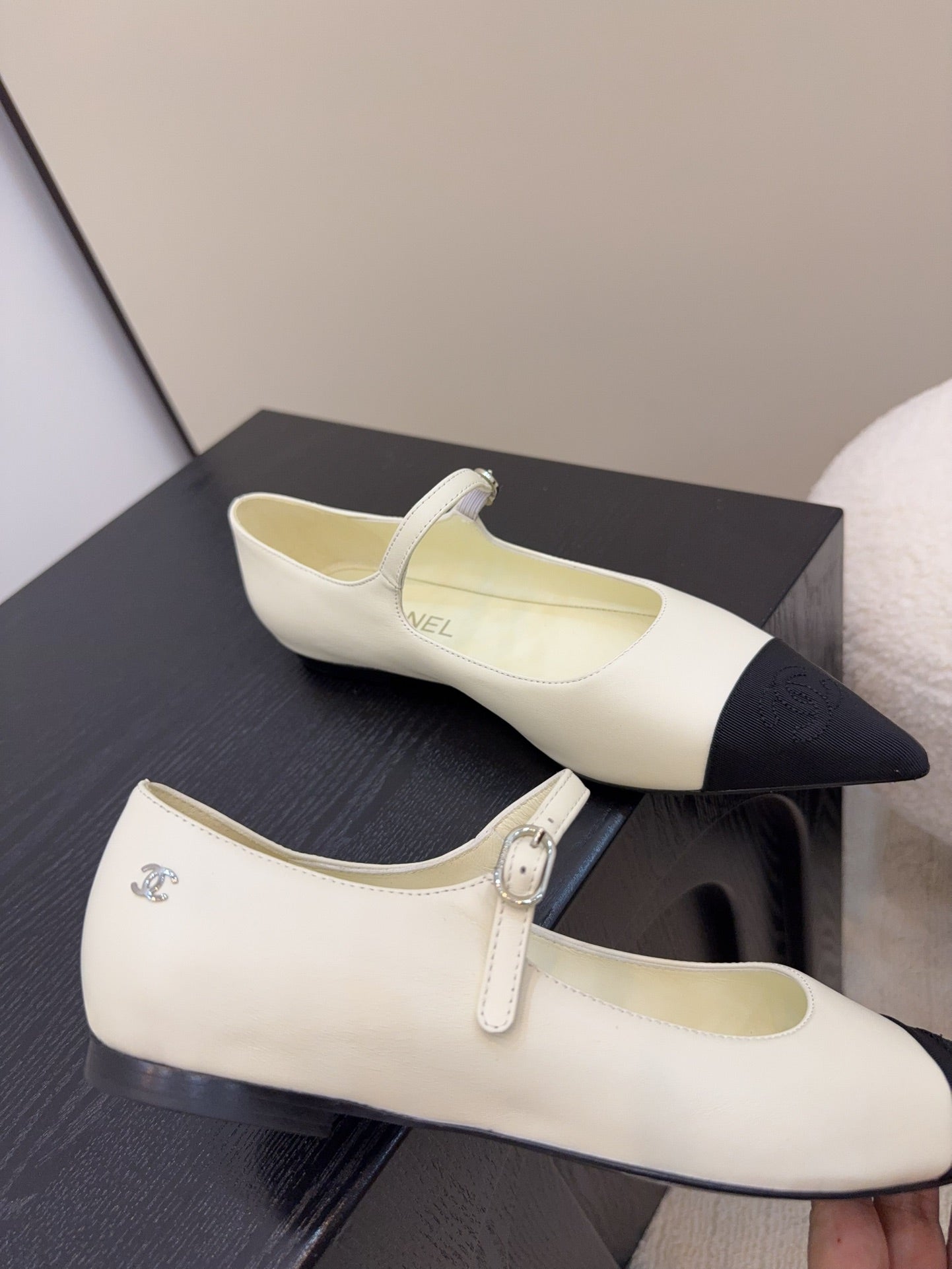 CD FW Mary Janes Light Beige Lambskin & Grosgrain 505040