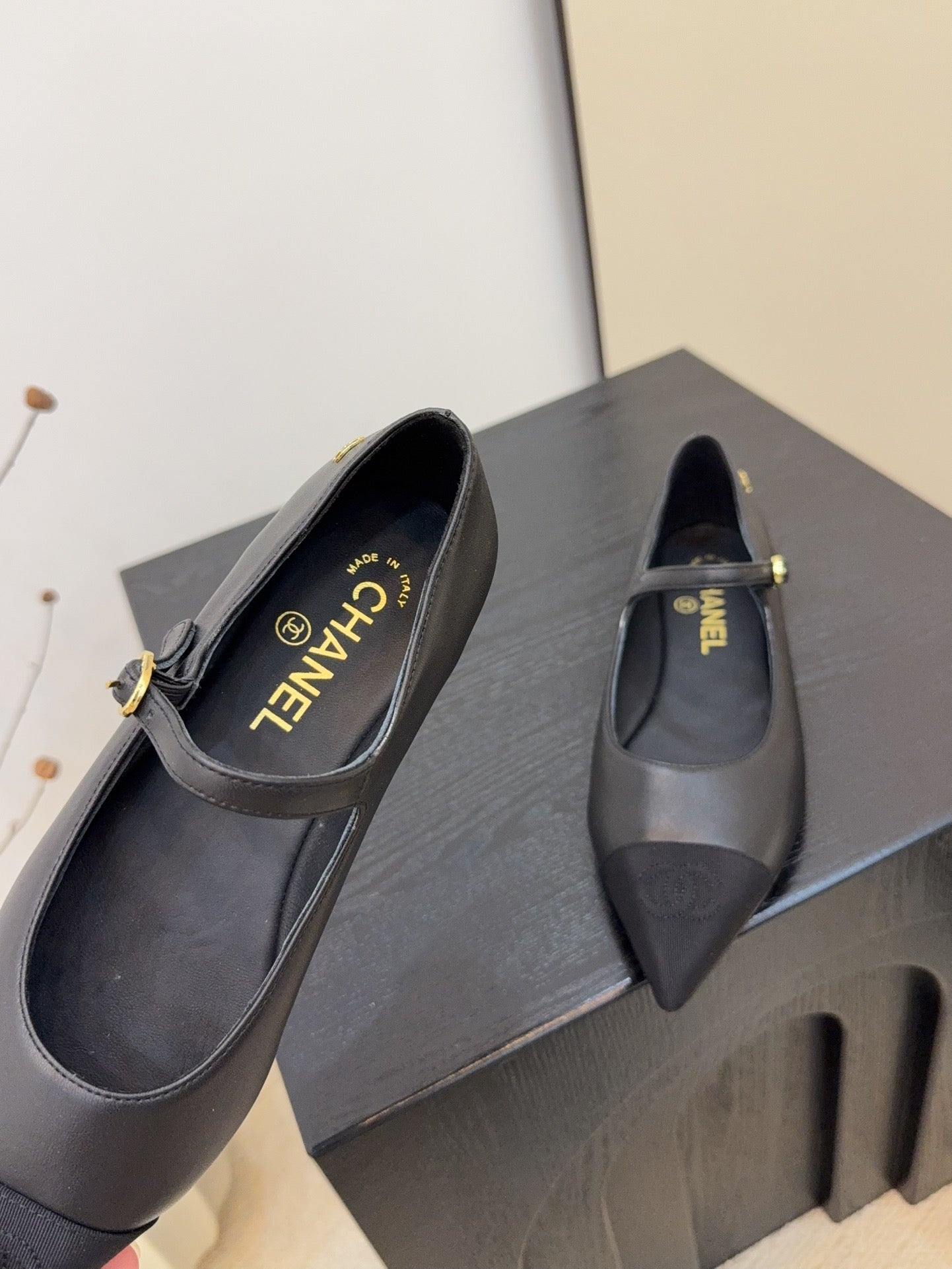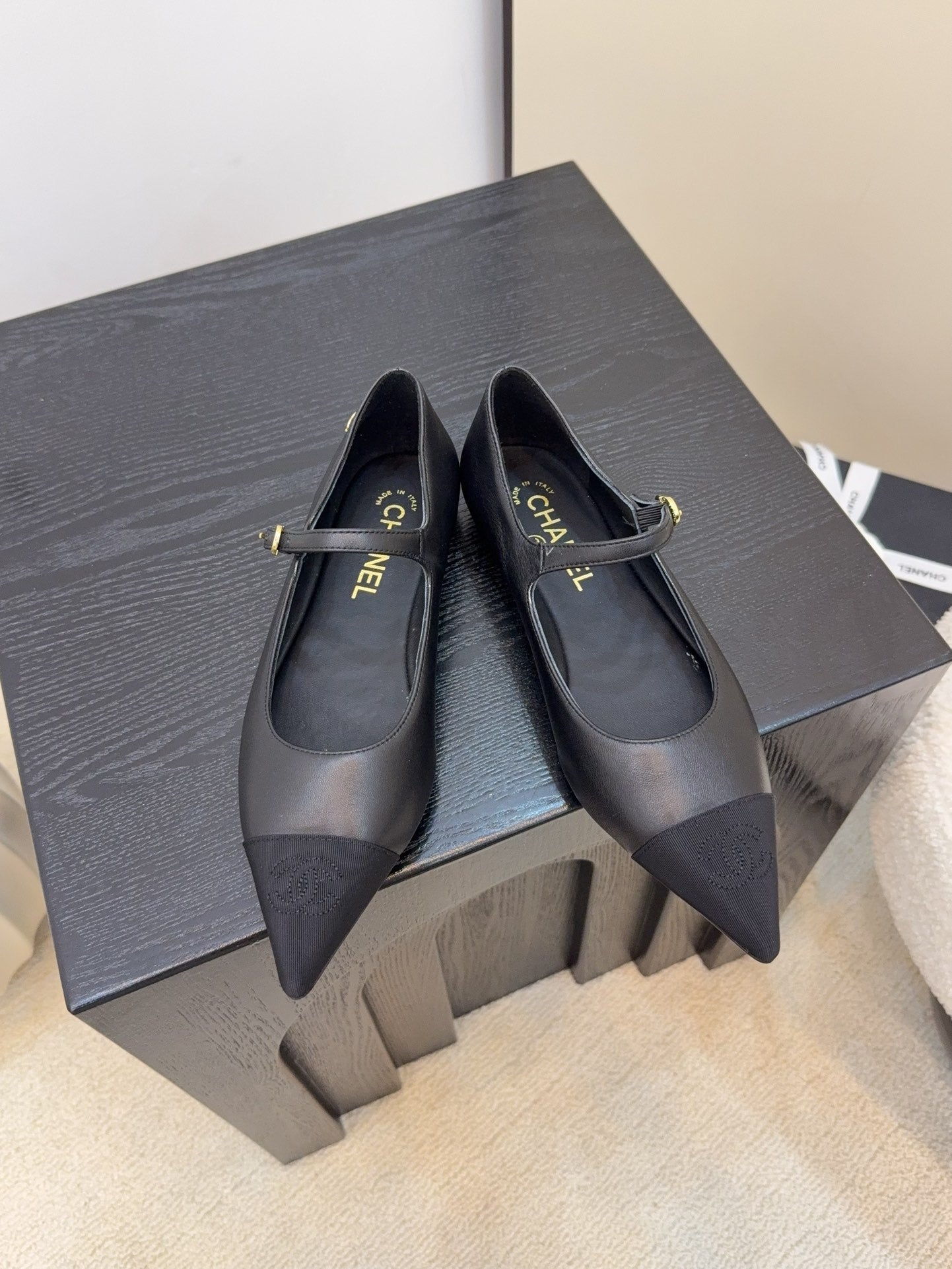 CD FW Mary Janes Black Lambskin & Grosgrain 505042
