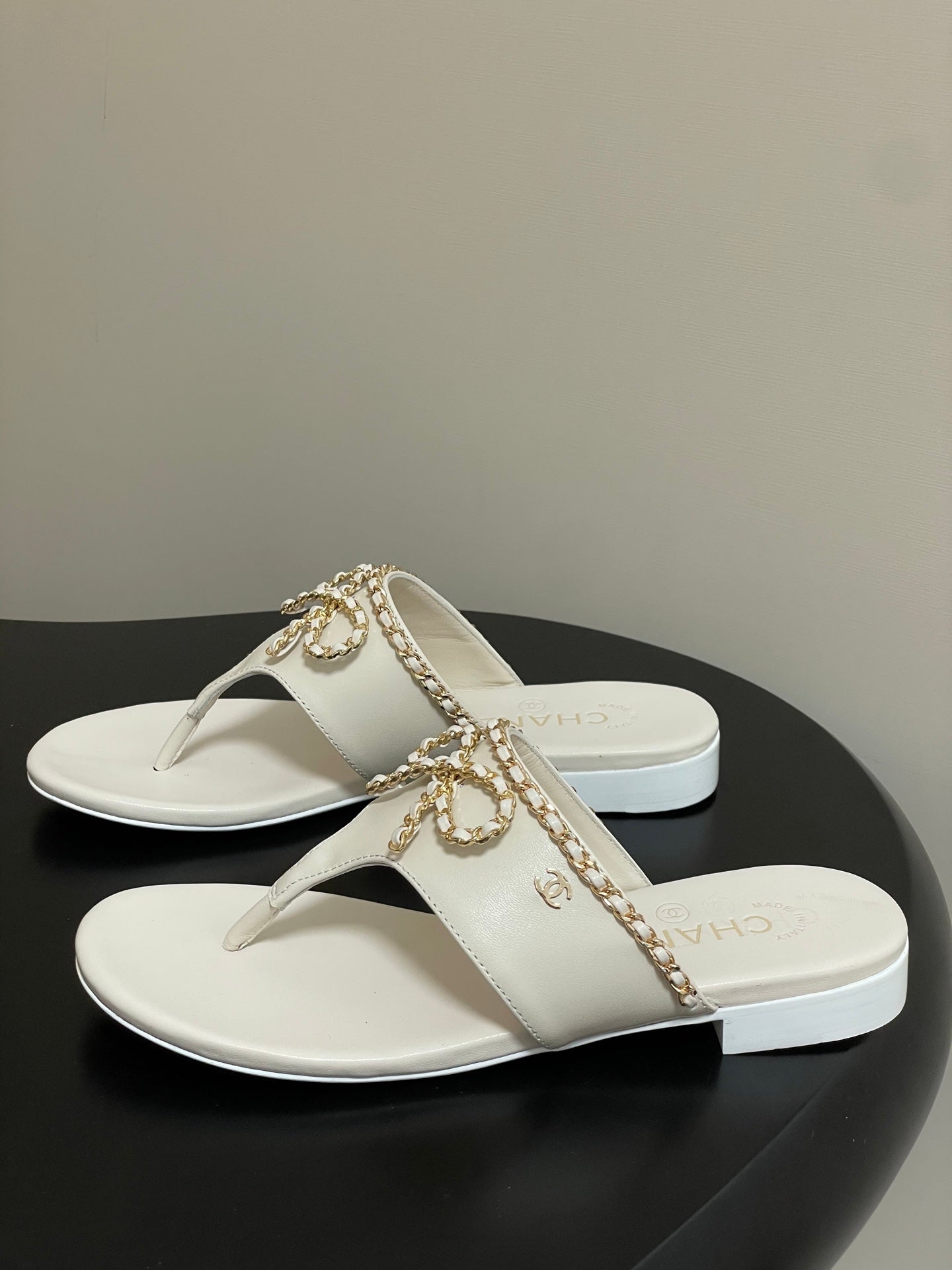 CC 25 Flip Flop Sandals Beige Calfskin Espadrilles