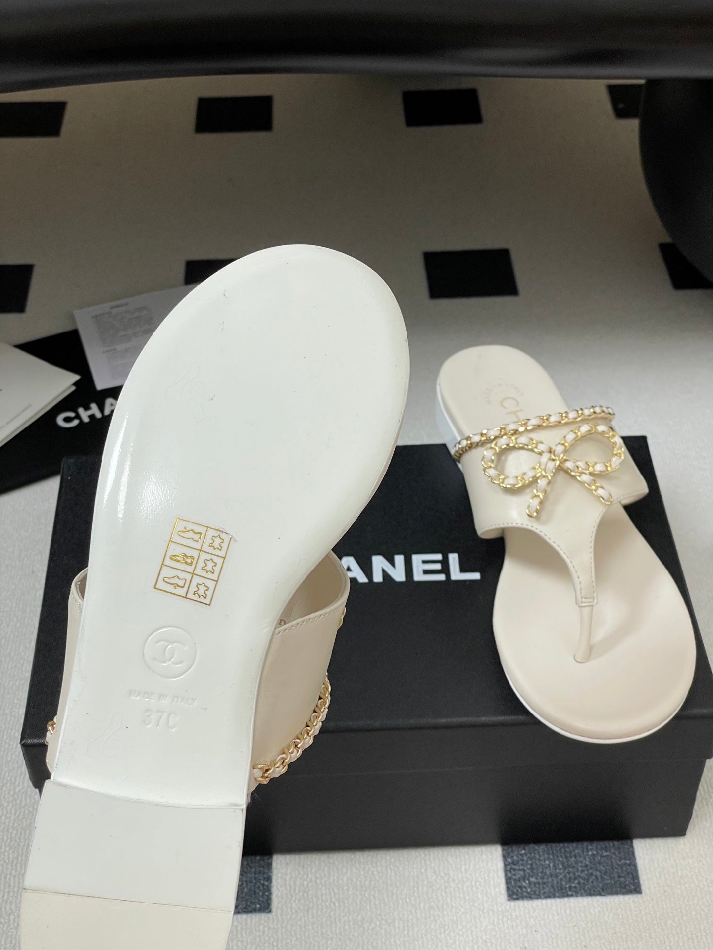 CC 25 Flip Flop Sandals White Calfskin Espadrilles