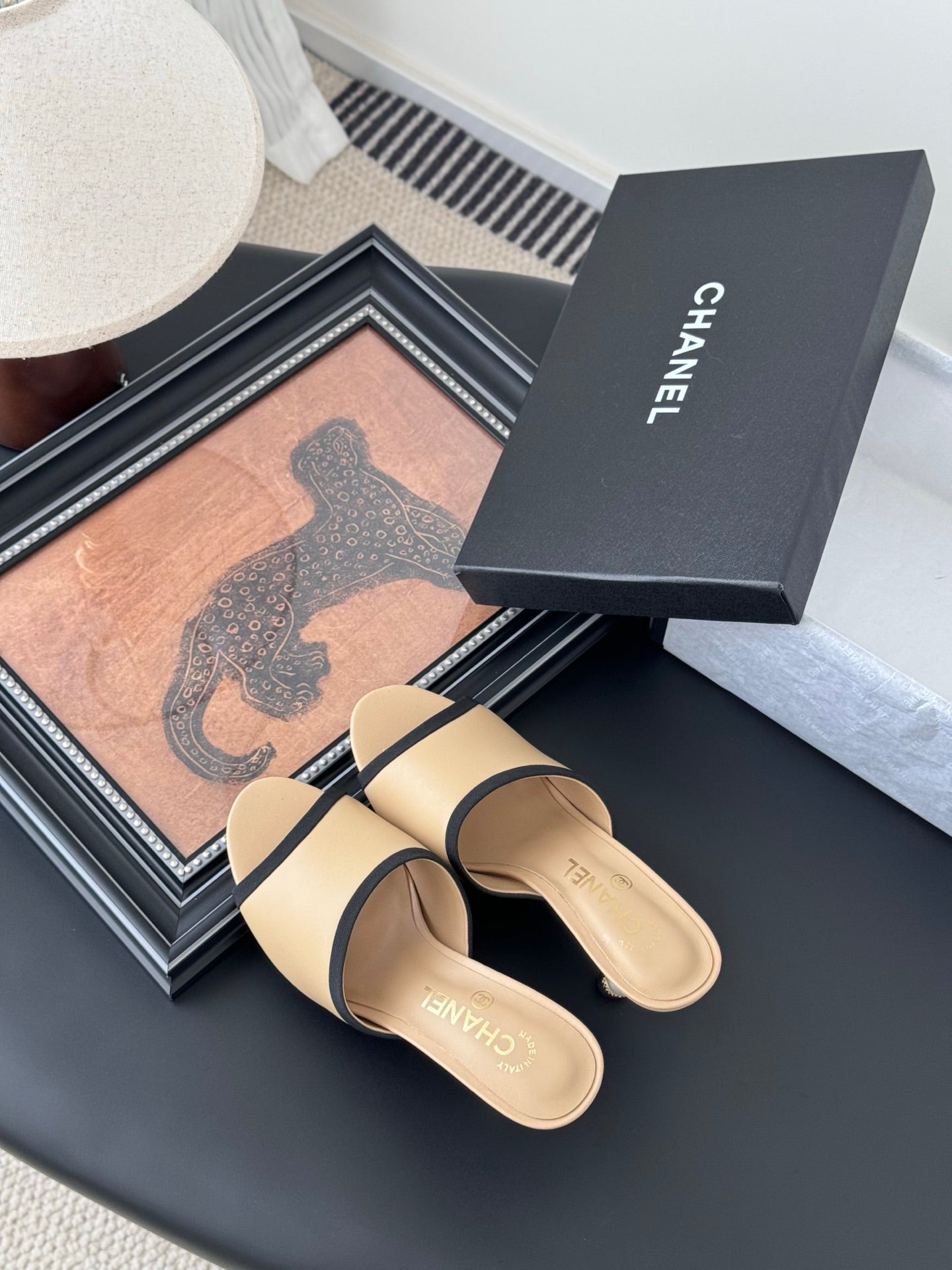 CC 25 Slippers Black Cowhide 305283