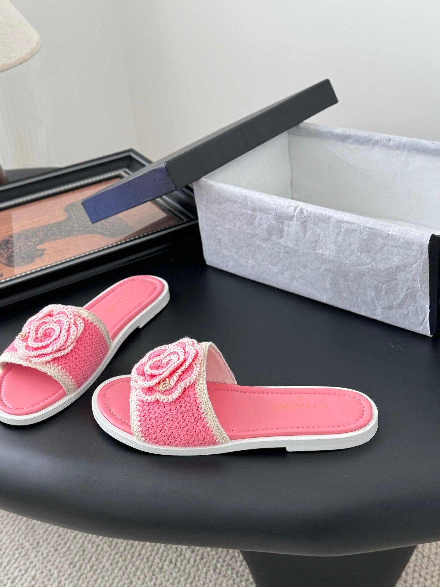CC 25 Flip Flop Sandals Black Suede Calfskin Espadrilles